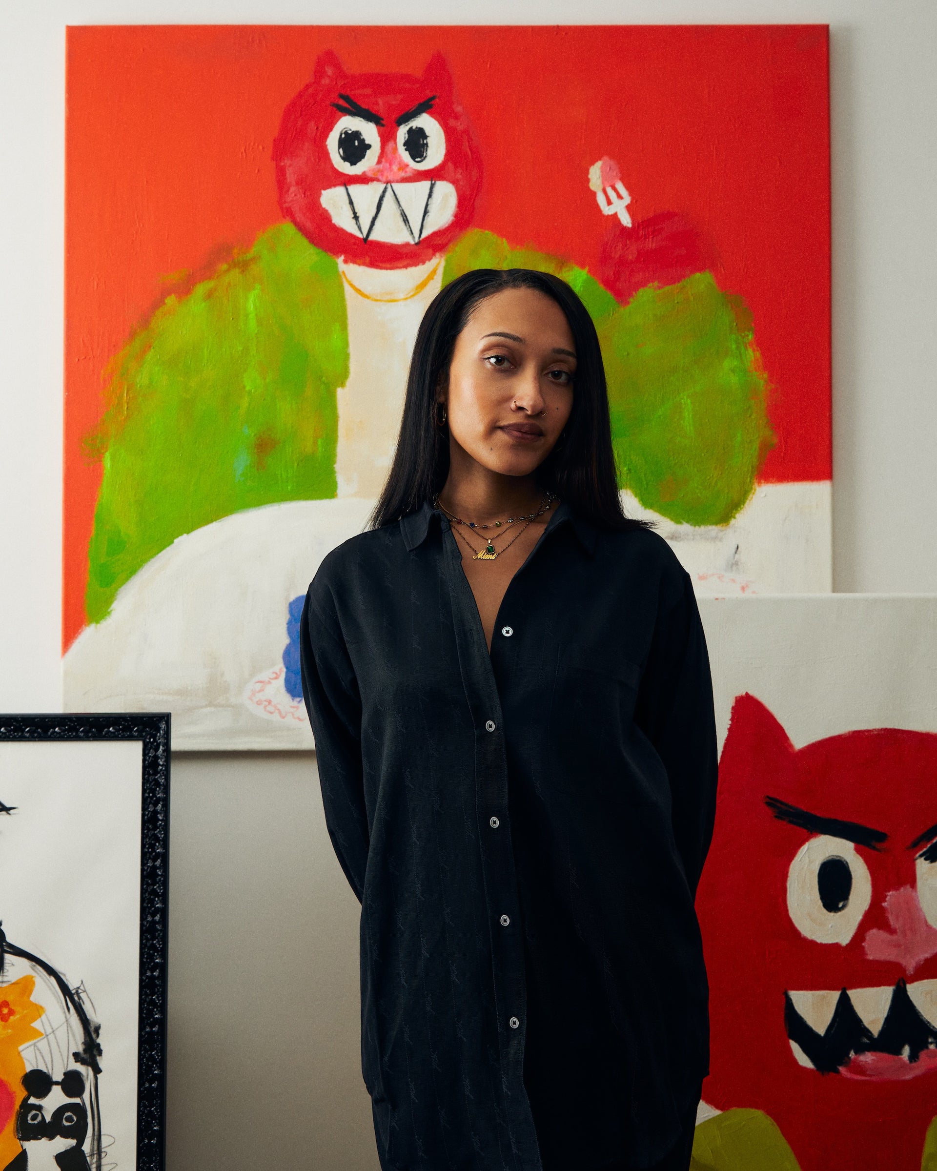 Mía Lee is a contemporary painter and textile designer that focuses on cartoonish figurative paintings. The work depicts familiar human experiences, the delicacies of relationships, and embracing the emotional states of femininity.