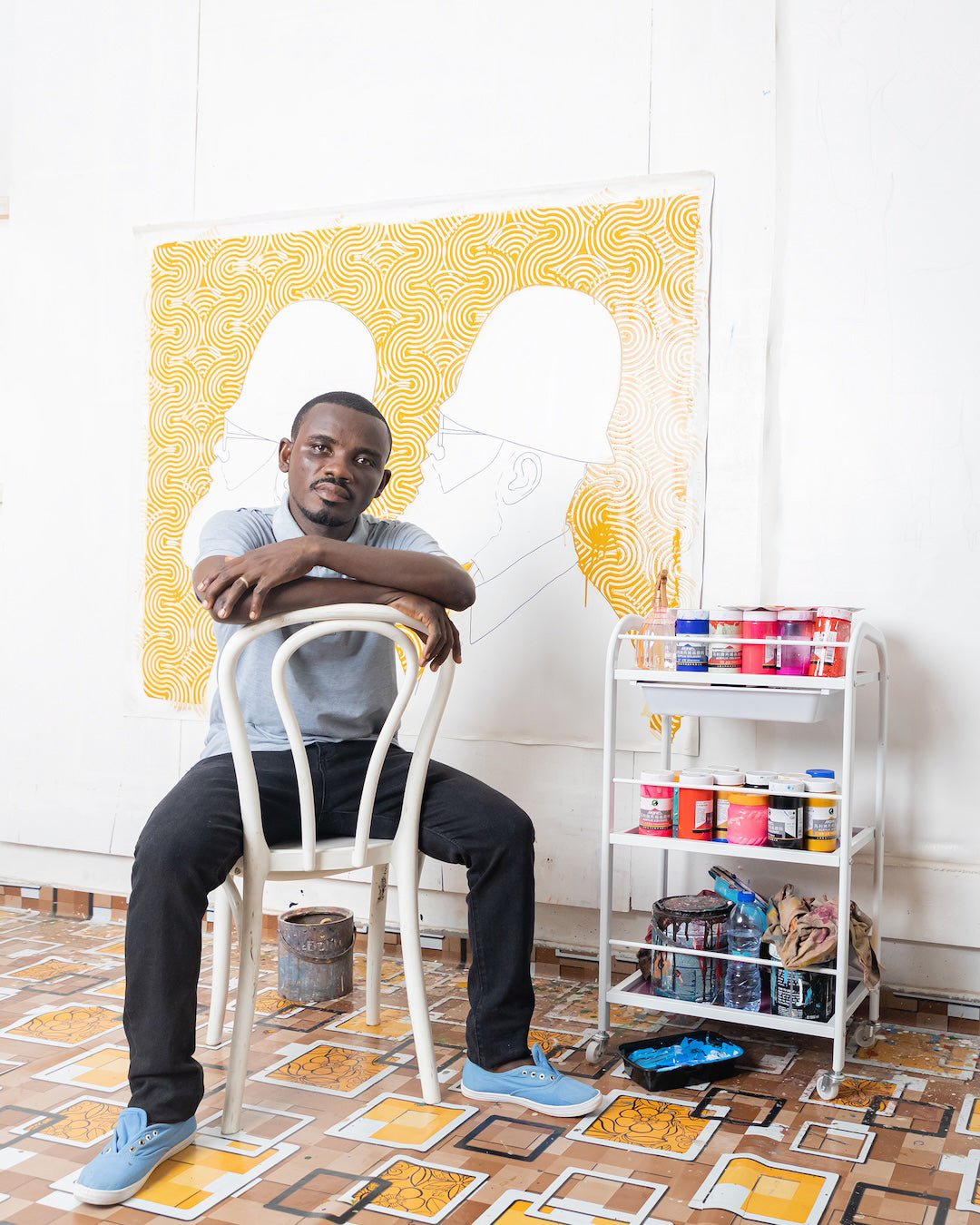 Foster Sakyiamah is an emerging contemporary artist that celebrates the soul of Ghanaian life and culture through vibrant hues and intricate patterns. Sakyiamah’s portraits display psychology through the facial expressions of his figures, their fashion styles and body language.