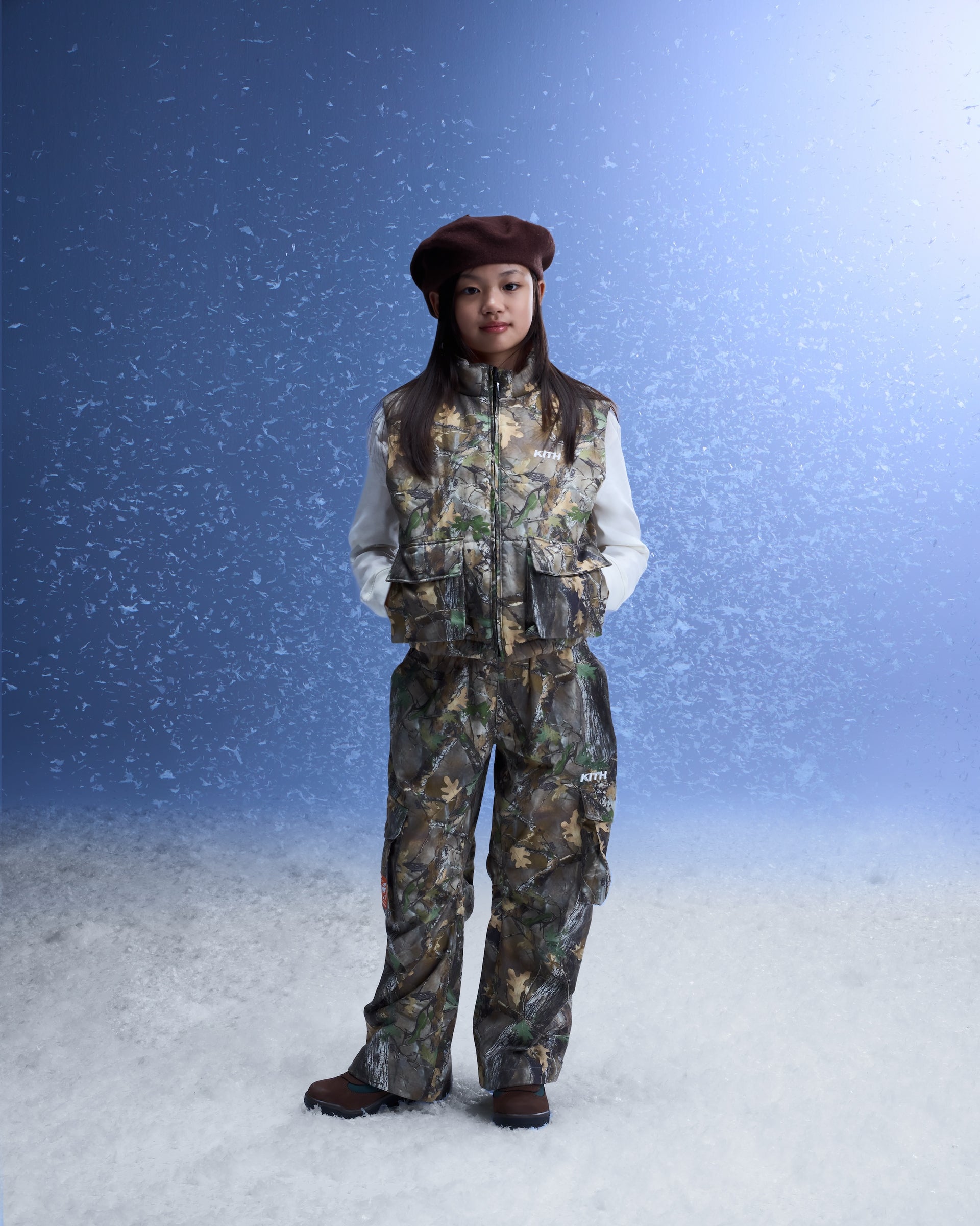 The Kith Kids Winter Classics 2025 collection is defined by updated Kith branding throughout, including new wordmarks such as holographic artwork, tech-inspired and color-blocked novelty logos, and jacquard techniques. This season sees the introduction of the Nelson in Snap-Front and Hoodie styles to Kith Kids, alongside the Long Sleeve Mulberry Tee, Quinn Tee, and the Puck Tee for optimal layering during colder months. This assortment also features outerwear like the Classic Midi Puffer, the Reflective Midi Puffer, and the Corey Puffer, inspired by Kith silhouettes. Additional subcollections include a workwear inspired capsule with an all-over camo print and contrast Orange accents, track sets, and classic shirting.