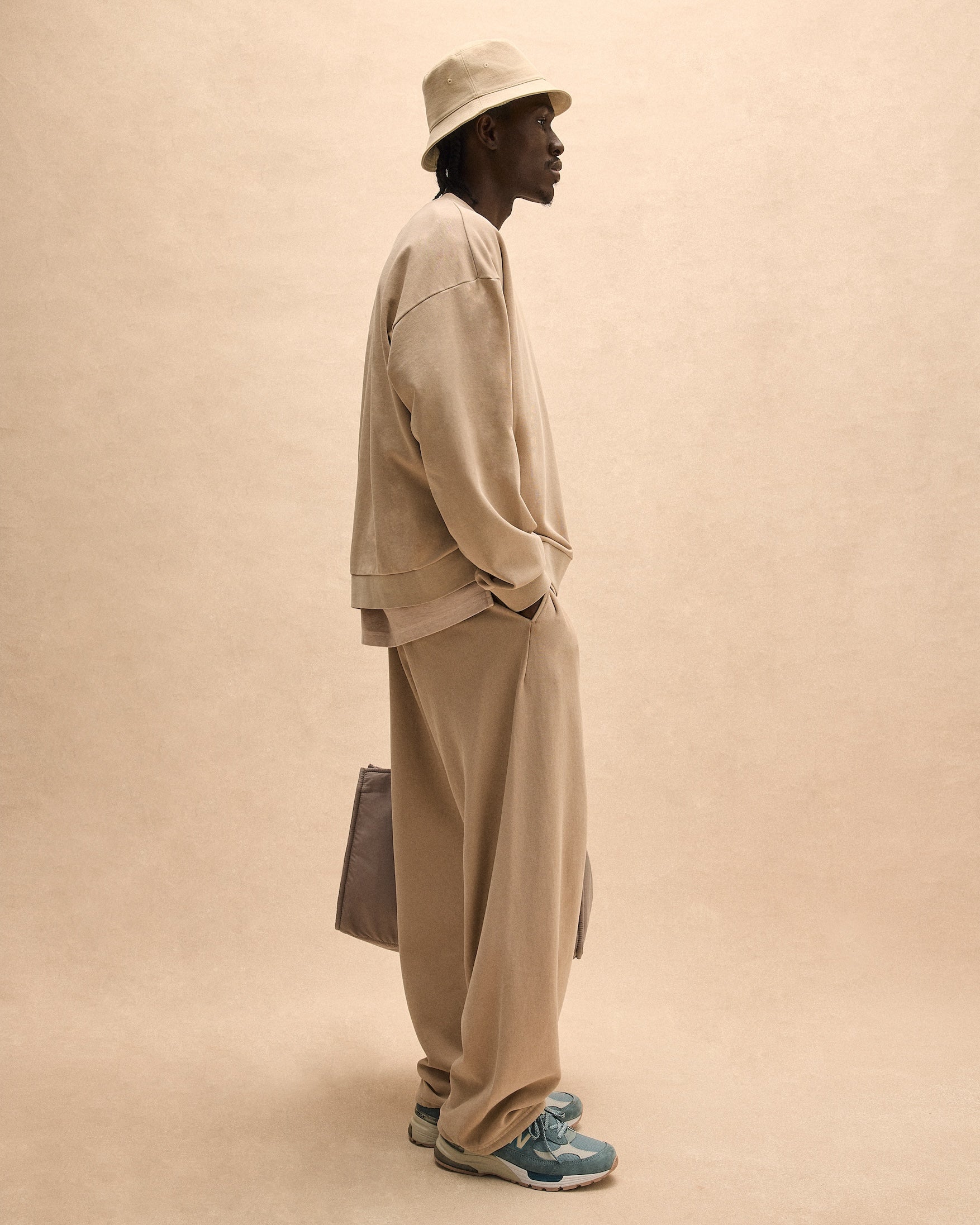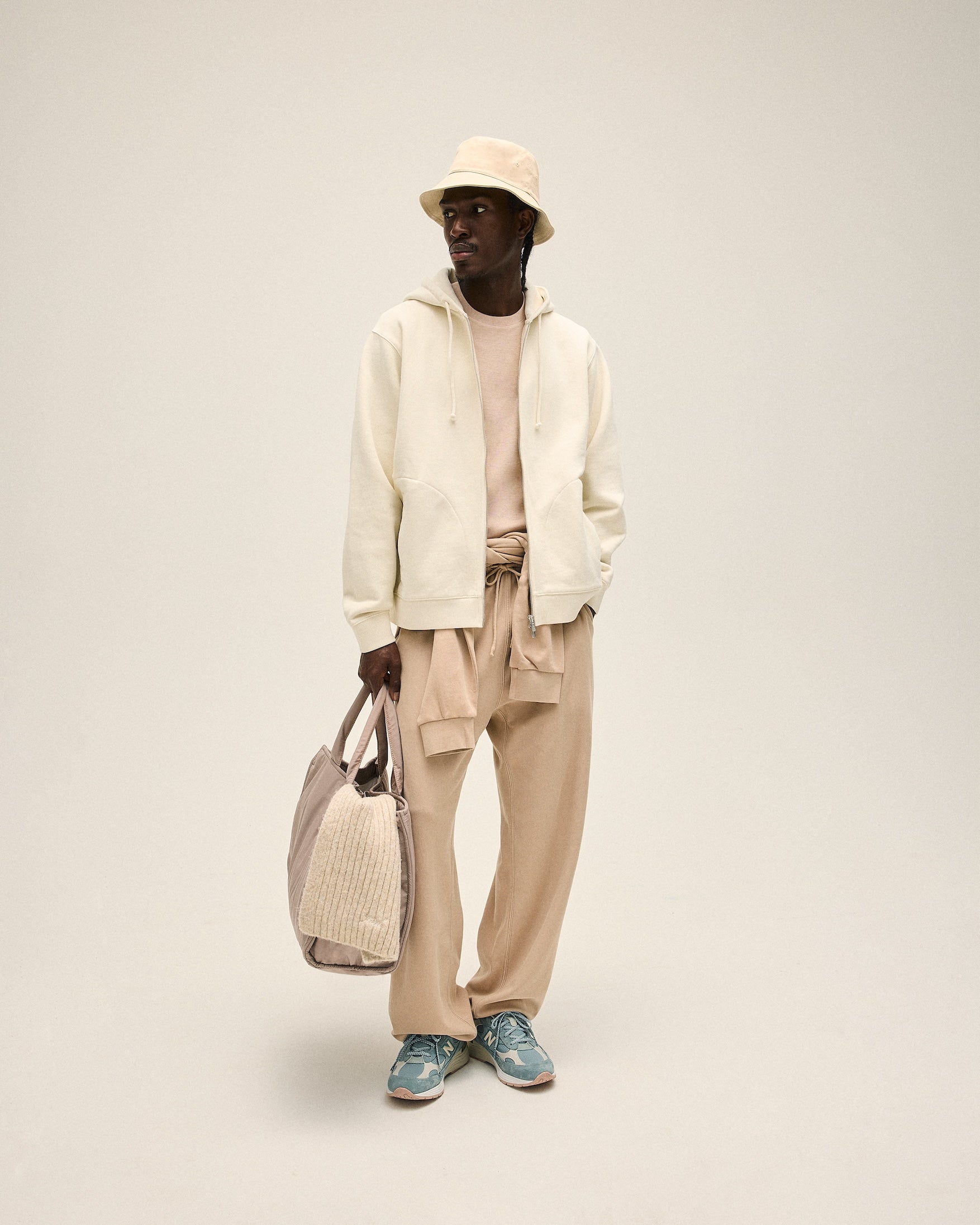 This ongoing seasonal program comprises staple hoodies, crewnecks, tees, sweatpants and shorts. Each style focuses on a premium fit and feel—crafted from lofty fleece, micro terry, plush back fleece, cotton jersey and sueded jersey. Custom, monochromatic hues from the Spring 2025 Palette elevate every silhouette: featuring colors like Article cream, Quilt brown, Reef blue, Nightfall charcoal and more.