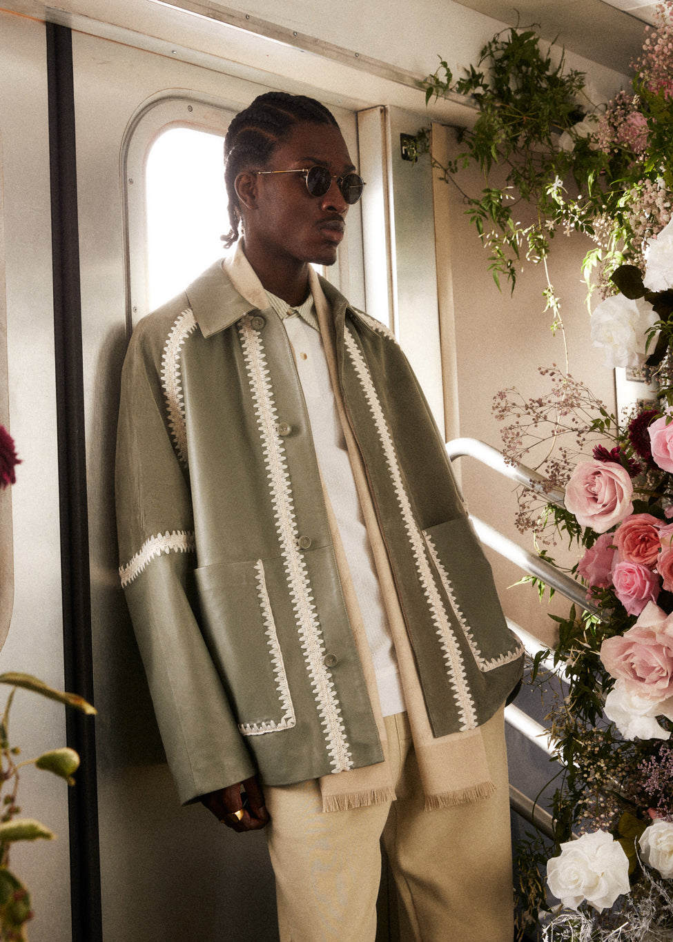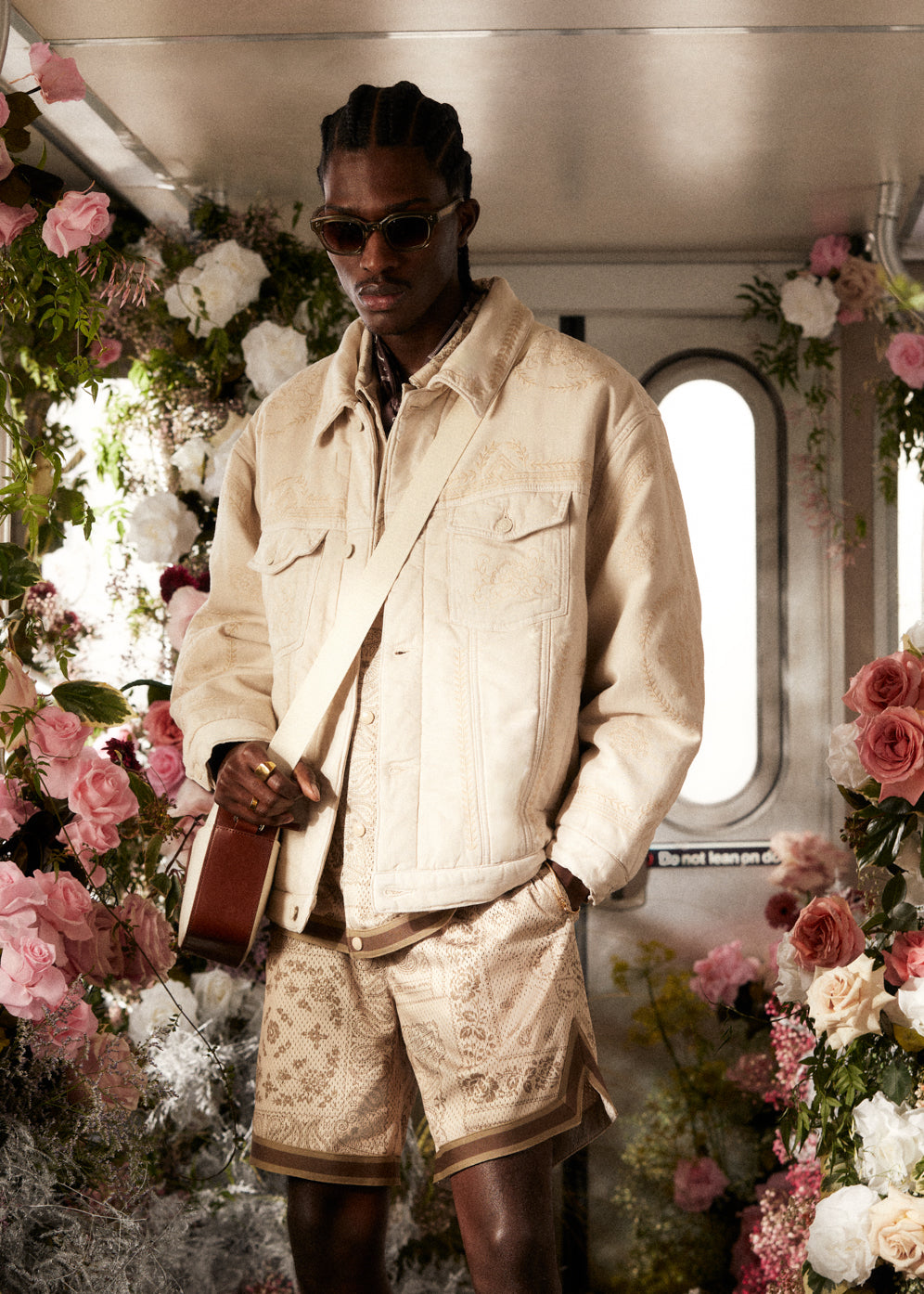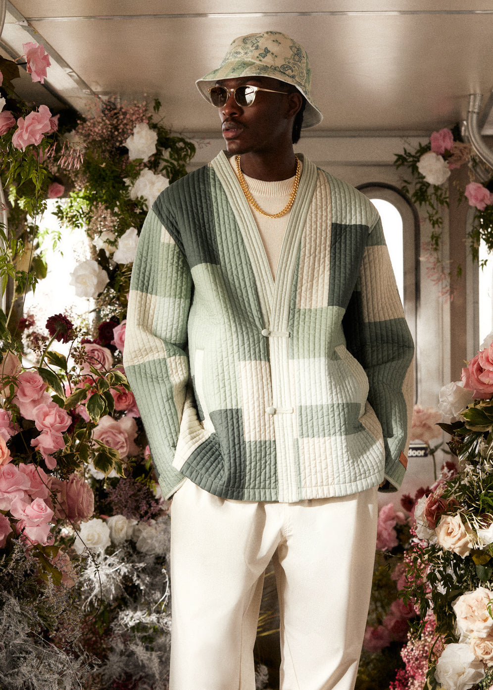 Standouts in the collection include the Suede Combo Micah Coat, Puffed Suede Jaysen Hoodie, Puffed Jase Denim Jacket, and Raw Hem Denim Apollo Shirt. The Suede Combo Micah Coat, a sophisticated new silhouette, is crafted of premium lambskin Nappa suede, providing a silky hand-feel. It has decorative crochet stitch detailing at the paneled composition, patch pockets, a covered-button placket, and is fully satin-lined. Another debut style for Spring 2024 is the Puffed Suede Jaysen Hoodie, a comfortable yet elevated piece crafted from premium lambskin silky-suede fabric. The focal point of the hoodie is a debossed Kith & Kin logo. The Puffed Jase Denim Jacket, offered in three exclusive colorways, highlights all-over custom embroidered artwork and is constructed with lightly-filled cotton denim fabric. The style is finished with a leather patch on the back featuring Kith-branded embossing. The Raw Hem Denim Apollo Shirt is crafted of premium denim fabric, featuring all-over custom embroidery and a raw hem. Details include button closures at the front placket, sleeve cuffs, and pockets on the chest.