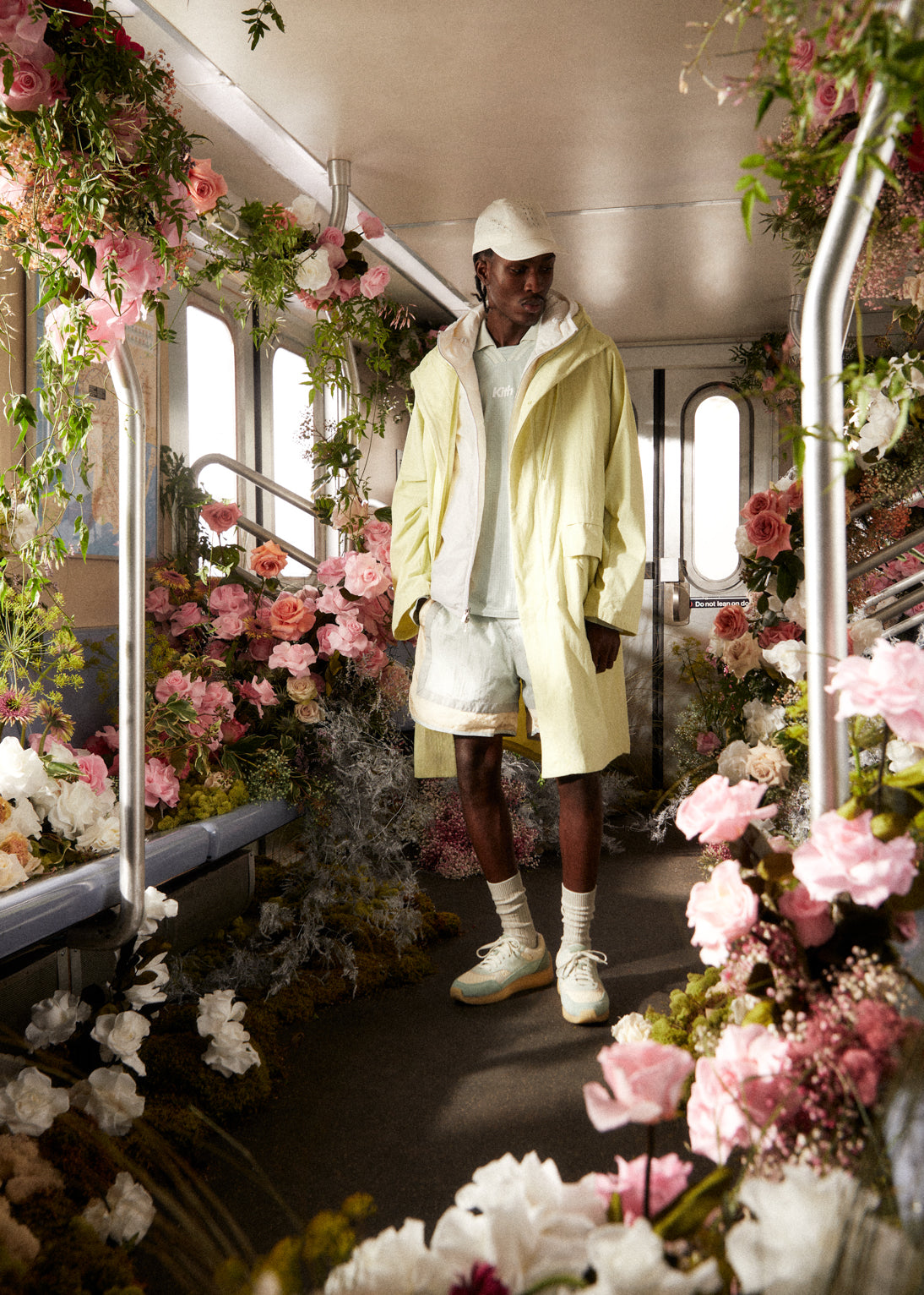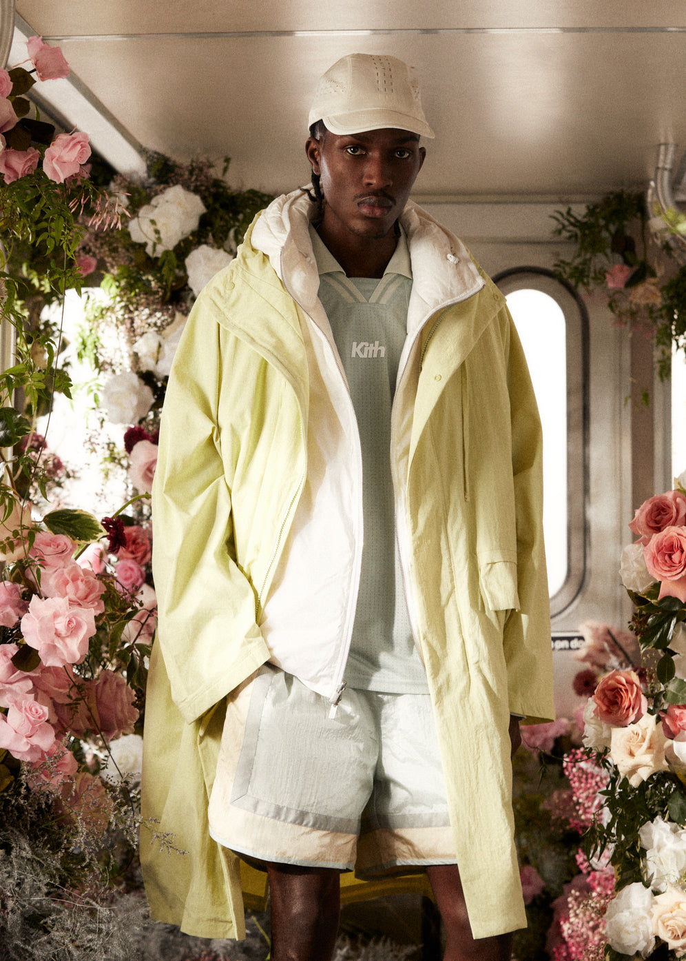This collection spreads across outerwear, shirting, knitwear, activewear, and accessories—promoting versatility for the season. Premium fabrics elevate the collection throughout, including Nappa Lamb leather, silky suede, Italian slub bouclé, and washed silky bomber. Each piece is uplifted by the seasonal Kith Palette: muted pastels grounded in Kith Foundational colors like Black, Navy, Olive and Royal. The hues evoke a feeling of airiness and freshness.