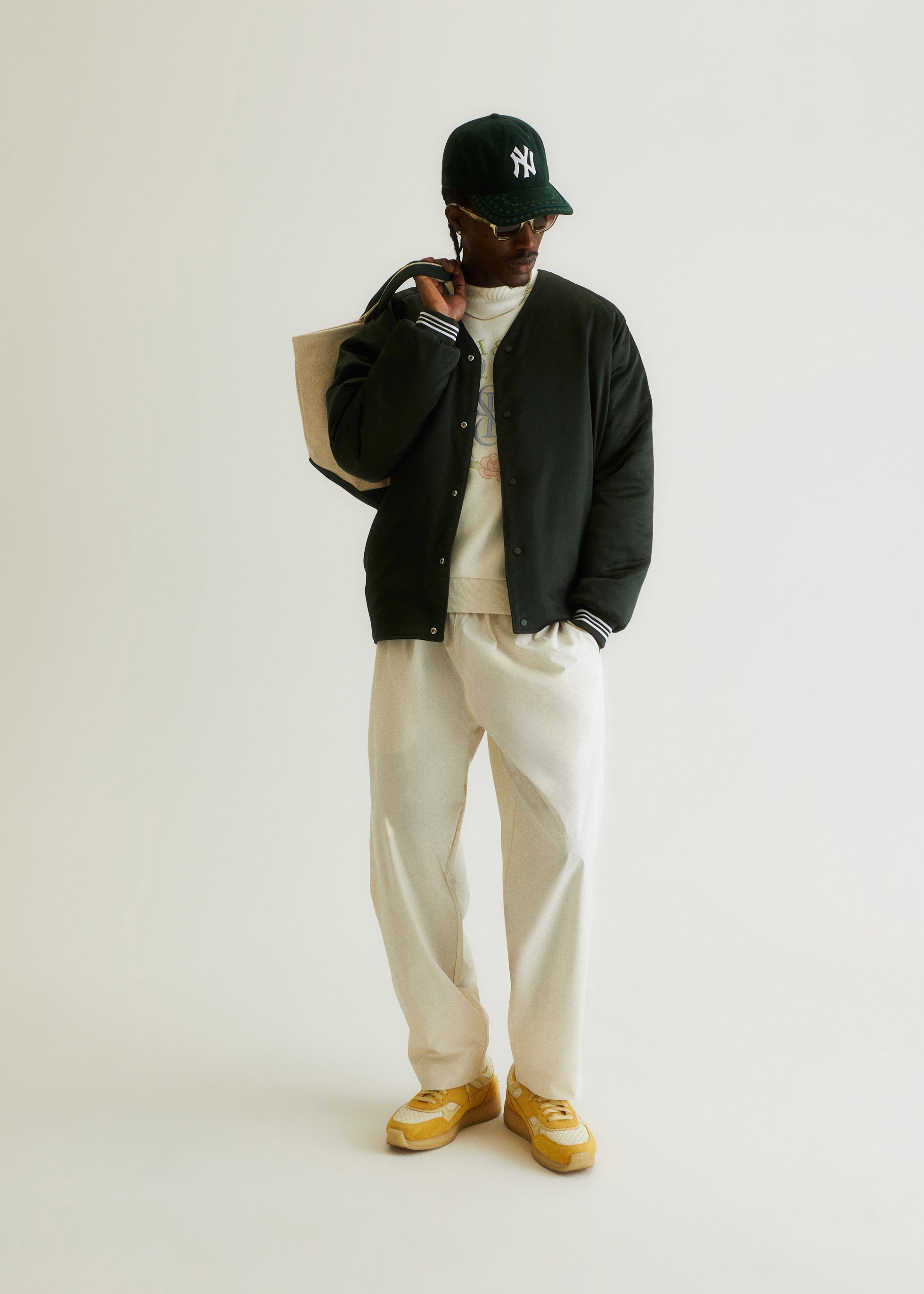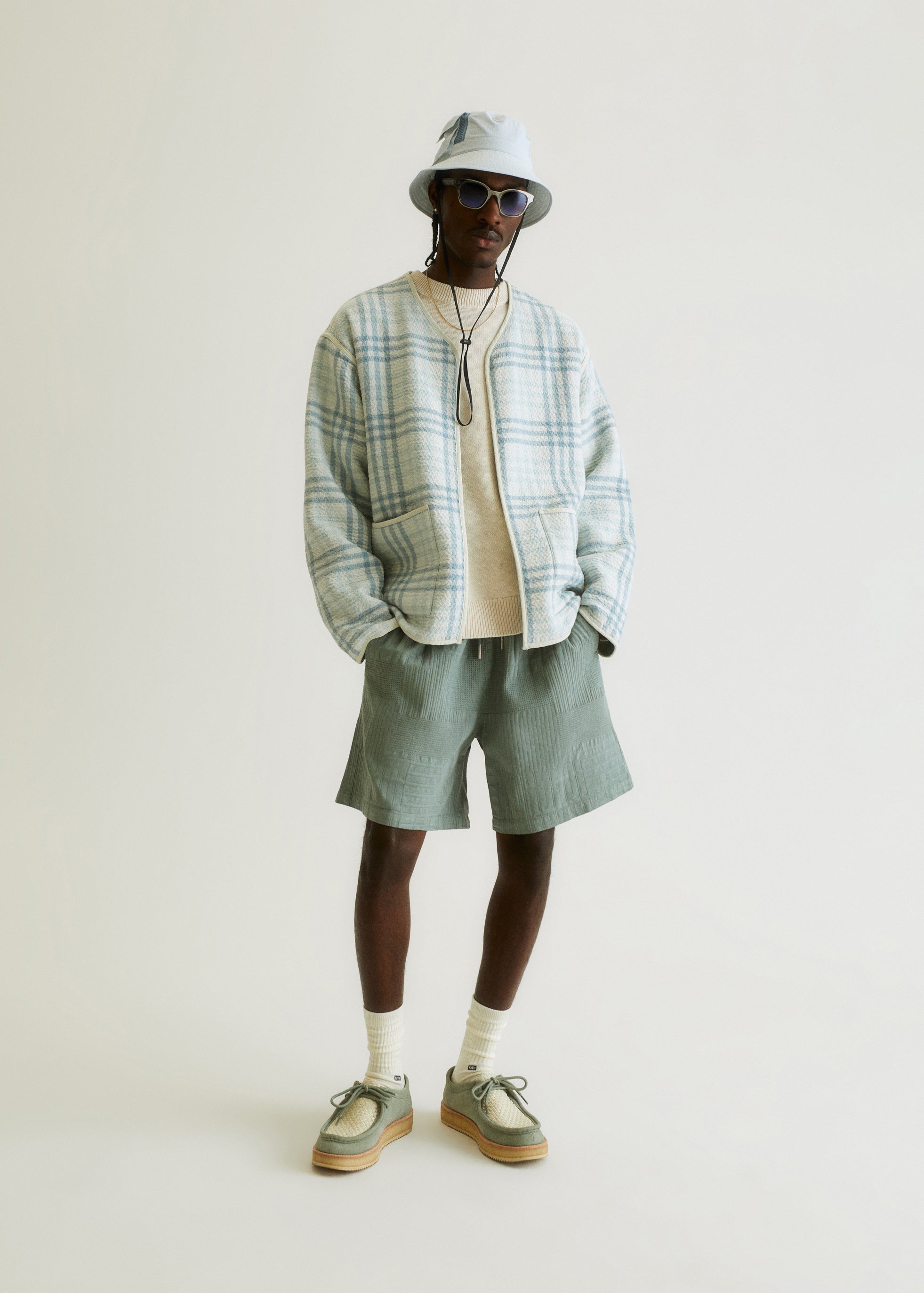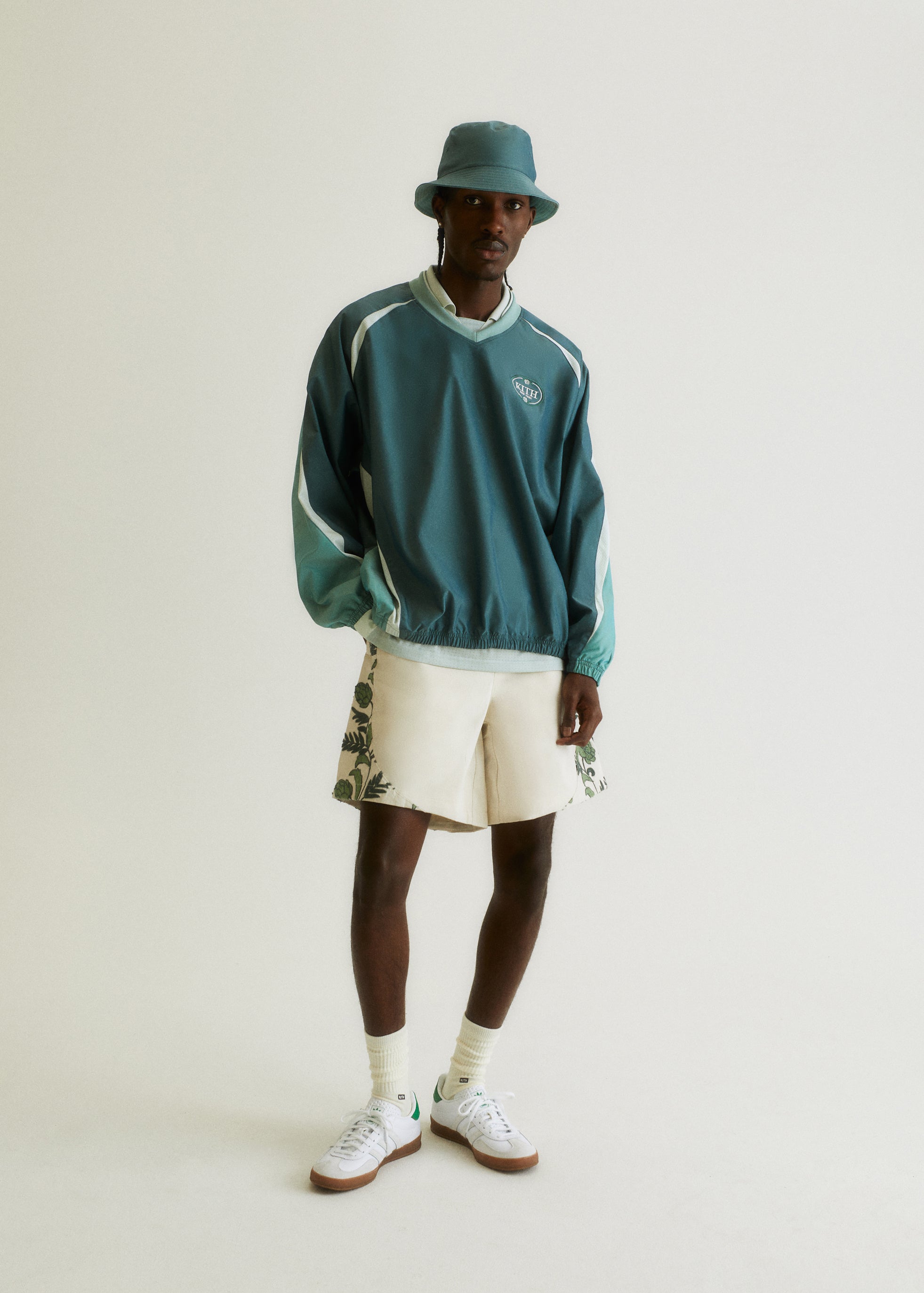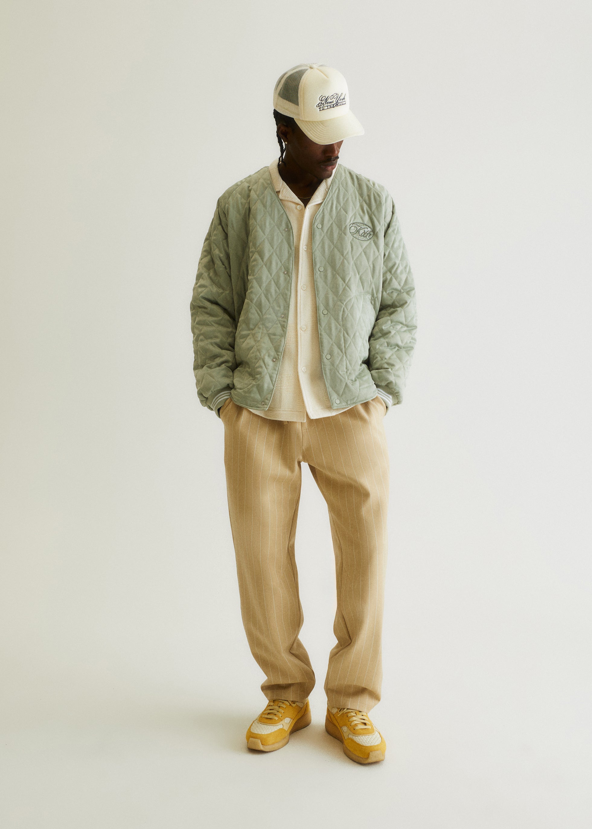 This collection spreads across outerwear, shirting, knitwear and accessories — promoting versatility for the season. Transitional fabrics are seen throughout the collection, including nylon, polyester, cotton fleece, Italian slub bouclé and satin. Each piece is uplifted by the seasonal Kith Palette with transitional colors like Veil, Rhythm, Skill, and Reverie.