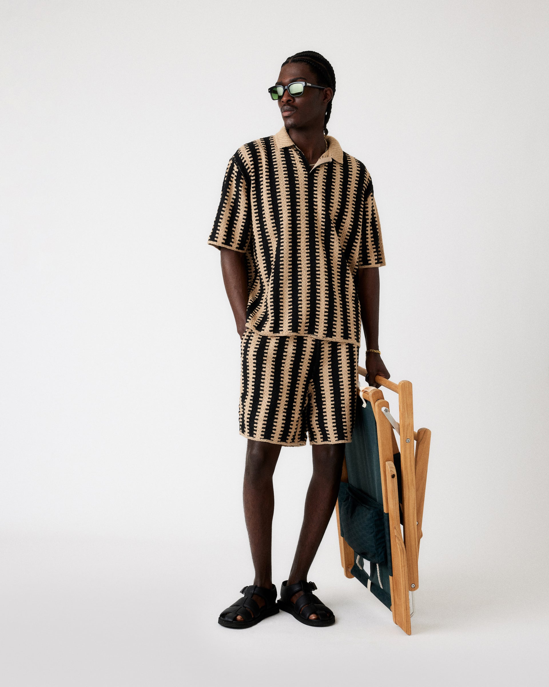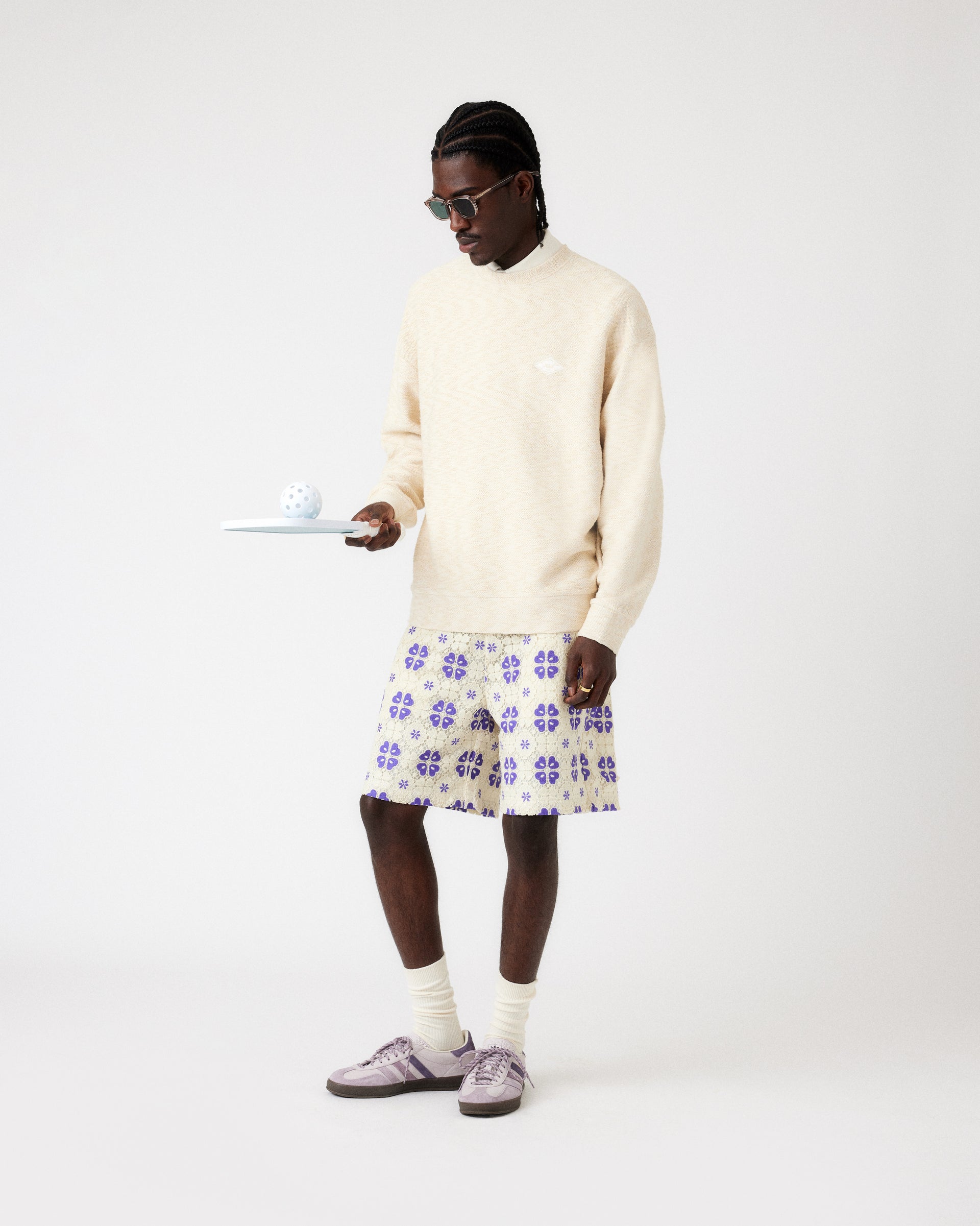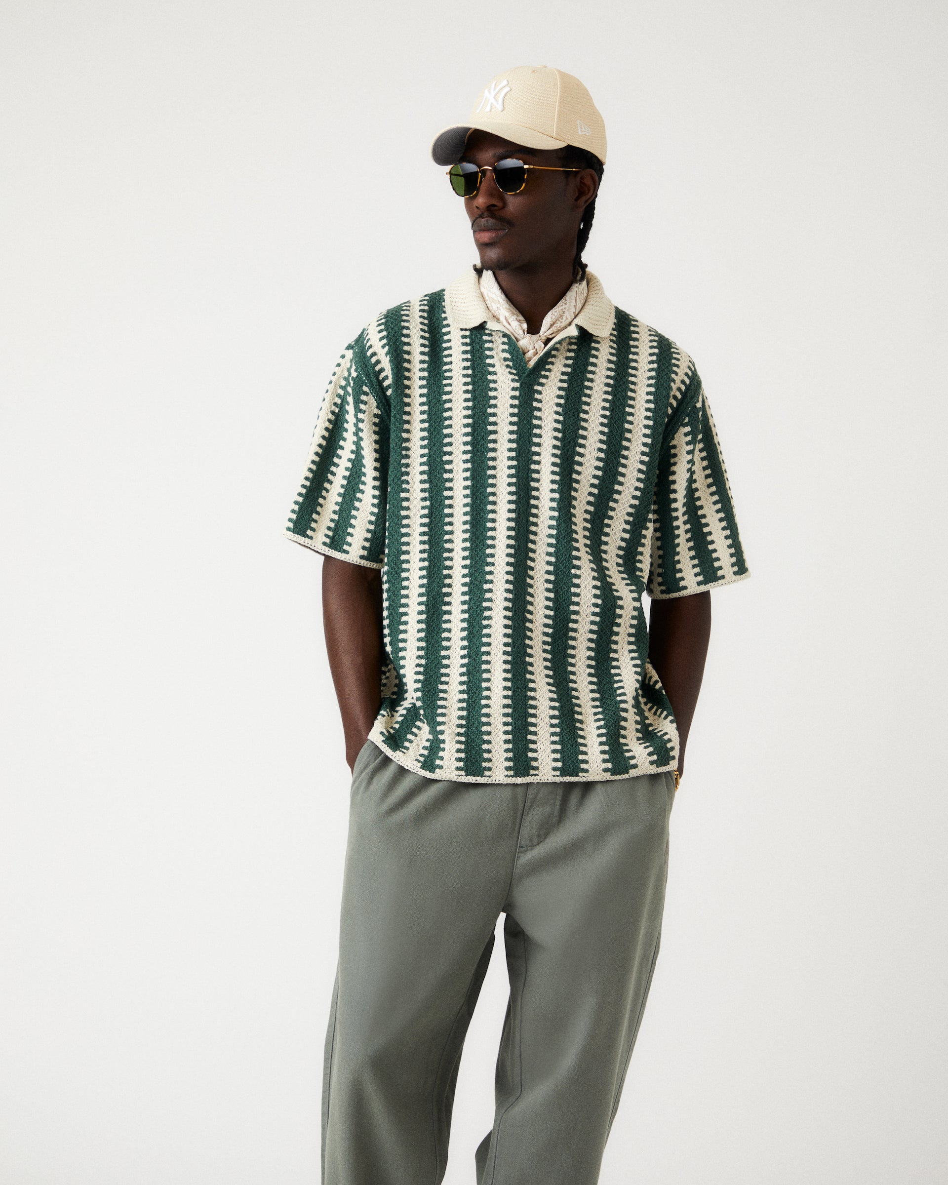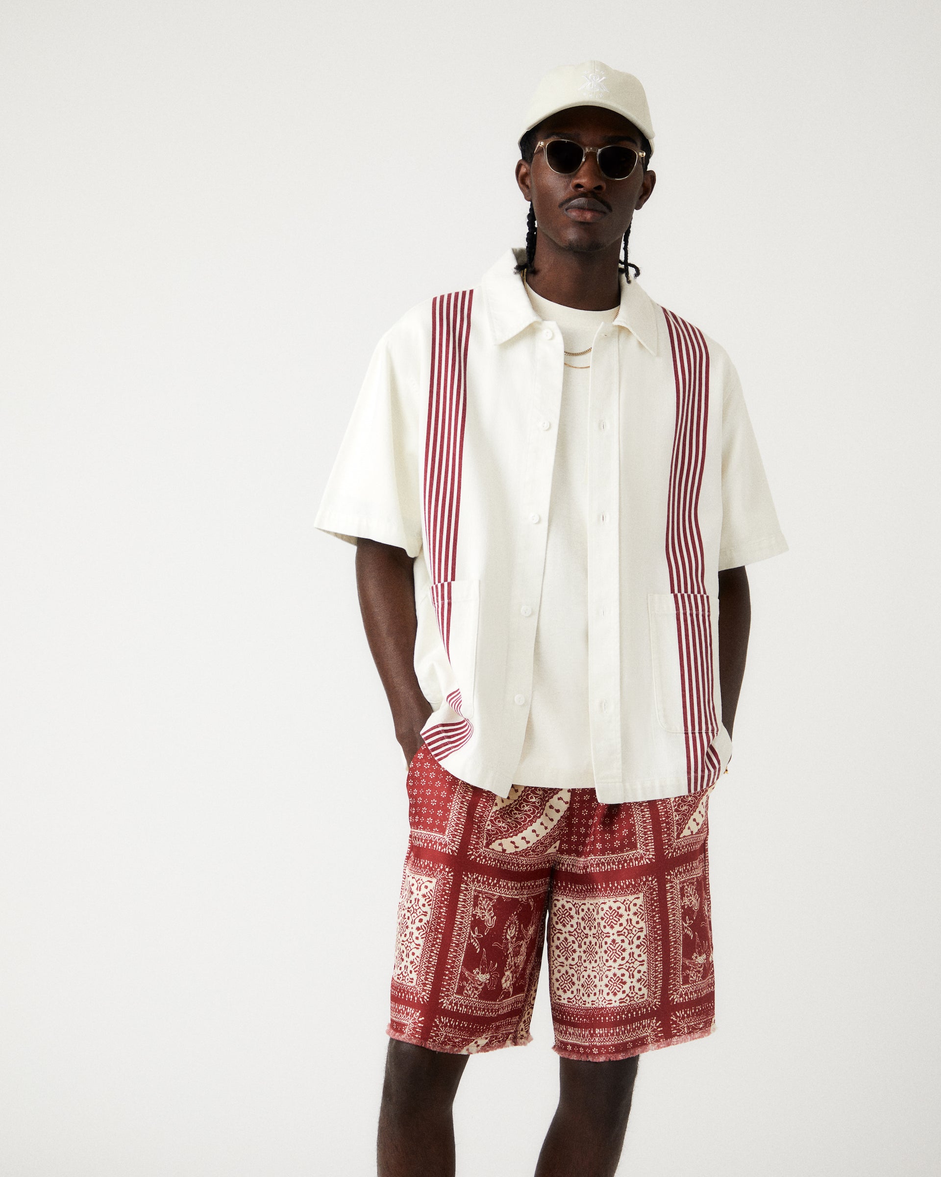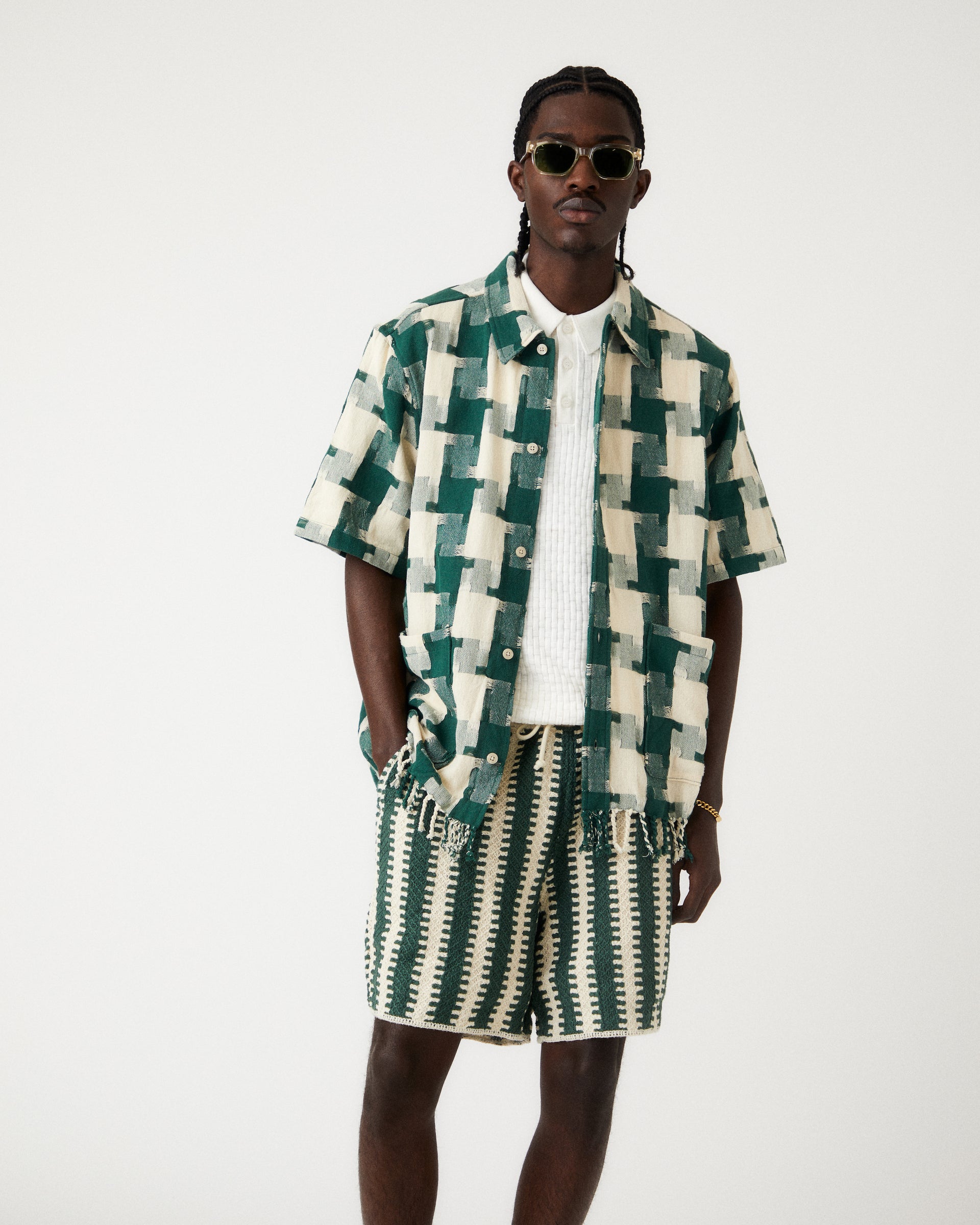 Standouts in the collection include the Talan Suit–a linen two-piece silhouette designed with meticulous craftsmanship–complete with details like a detachable silk scarf, double pleats, and intentional creaselines, as well as the Keyon Short Sleeve Crochet Pullovers, and the Textured Stitch Reid Gi–made for seasonal layering. Like many of the summer knits in this assortment, the Keyon’s crochet composition creates an all-over print, designed in the Shea and Feld colorways. The Textured Stitch Reid Gi is crafted of pick-stitch cotton dobby fabric, also featuring an exclusive Kith Summer 2024 print, also demonstrating a play on texture which is seen across many silhouettes.