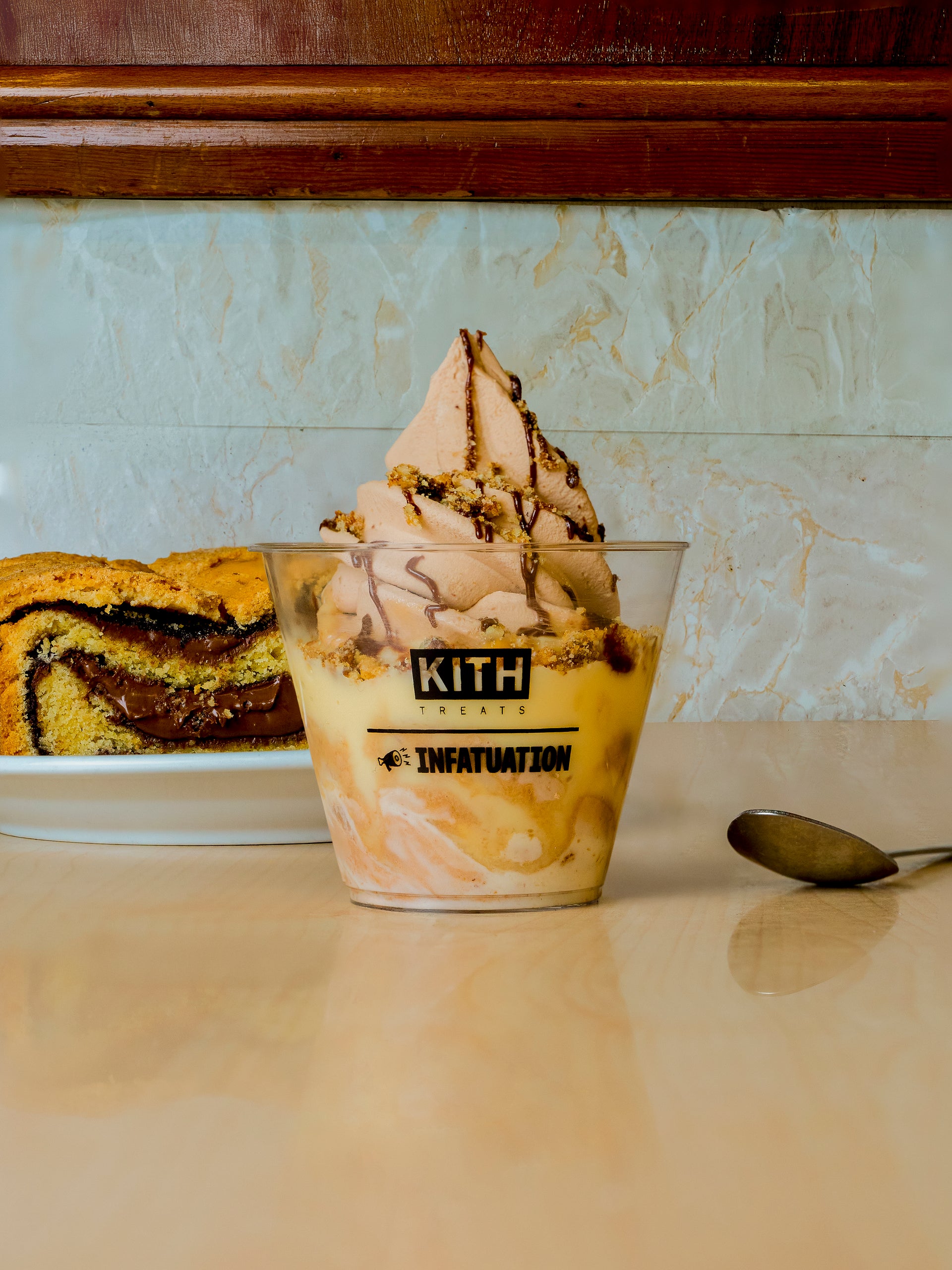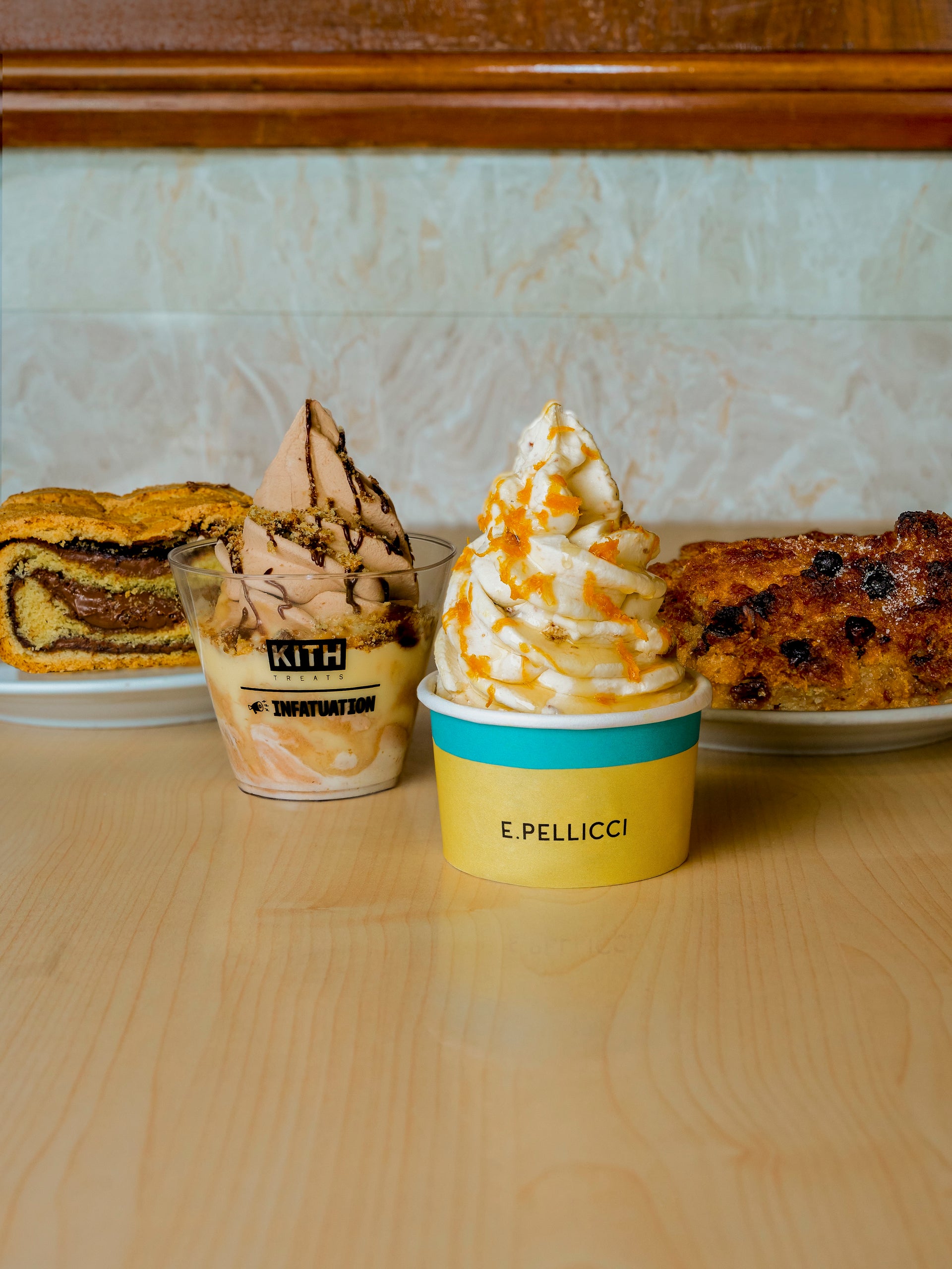 To honor the grand opening of Kith Treats’ latest London flagship, the confectionery has teamed up with the East London trattoria to create two limited-edition ice cream specials inspired by their famous Chocolate Roly Poly and classic Bread Pudding. Each dessert highlights the Italian & British influences found throughout E. Pellicci’s menu, bridging over 125 years of E. Pellici’s storied history with Kith Treats’ decade-long journey of culinary creativity.