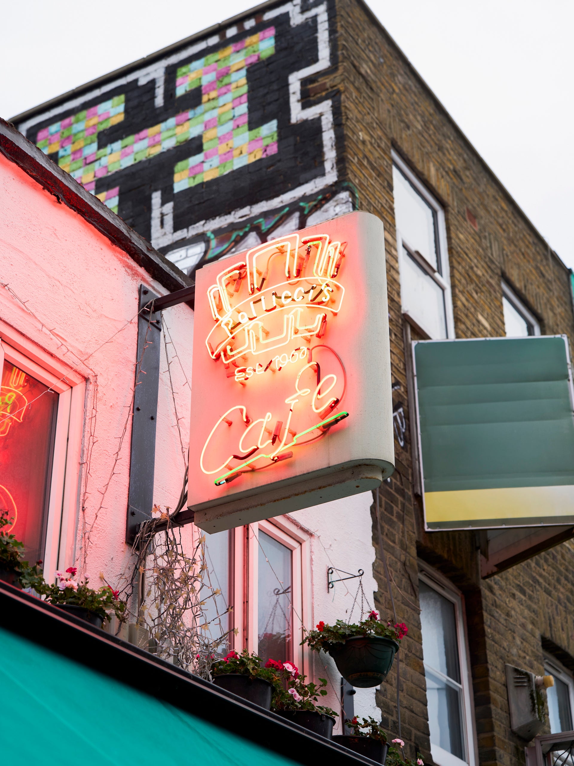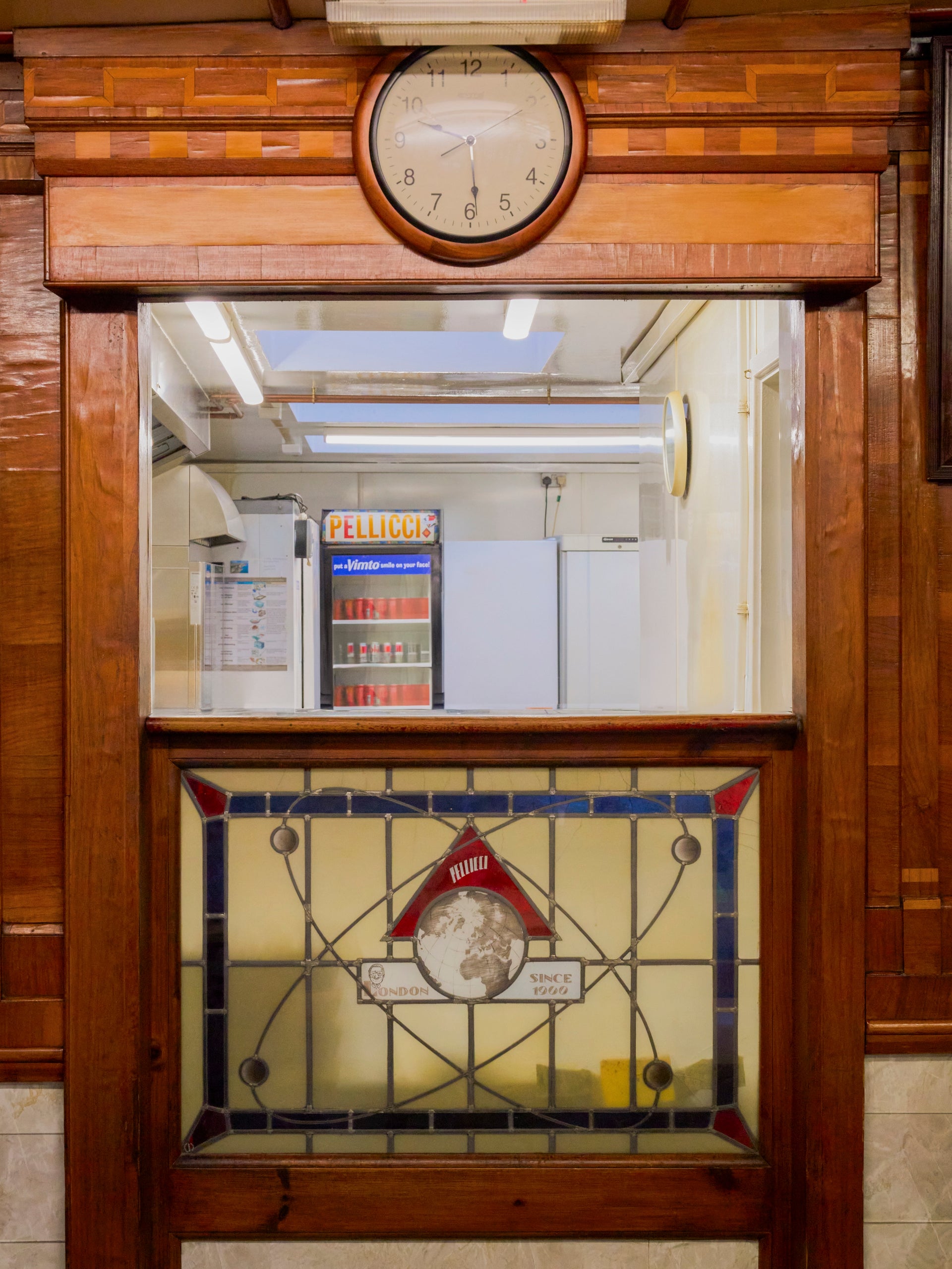 The quaint Italian-British café is known for its warm, bustling atmosphere with friendly and often humorous staff members. The historic eatery feels like a second home to its countless daily visitors, who cherish its traditional English breakfasts and home-cooked Italian plates. E. Pellicci’s unchanged Art Deco interior boasts an ornate panelled wooden decor, carved by regular customer and carpenter Achille Capocci in 1946. Due to the unique nature of this intricately crafted interior, E. Pellicci was awarded Grade II listed status by English Heritage, designating it as a preserved historical landmark.
