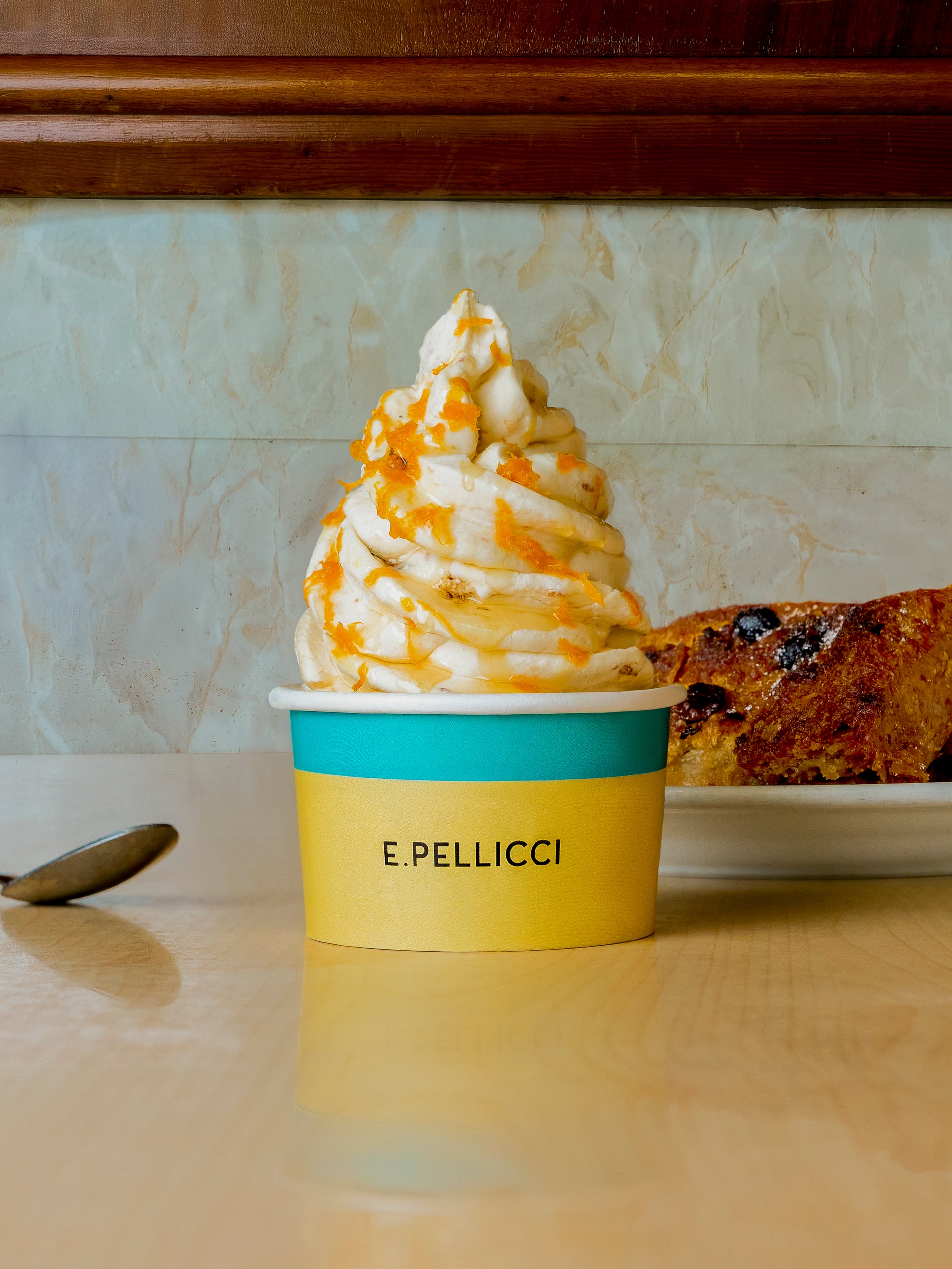 Vanilla ice cream infused with E. Pellicci’s famous Bread Pudding & Corn Flakes, topped with Honey Drizzle & Orange Zest