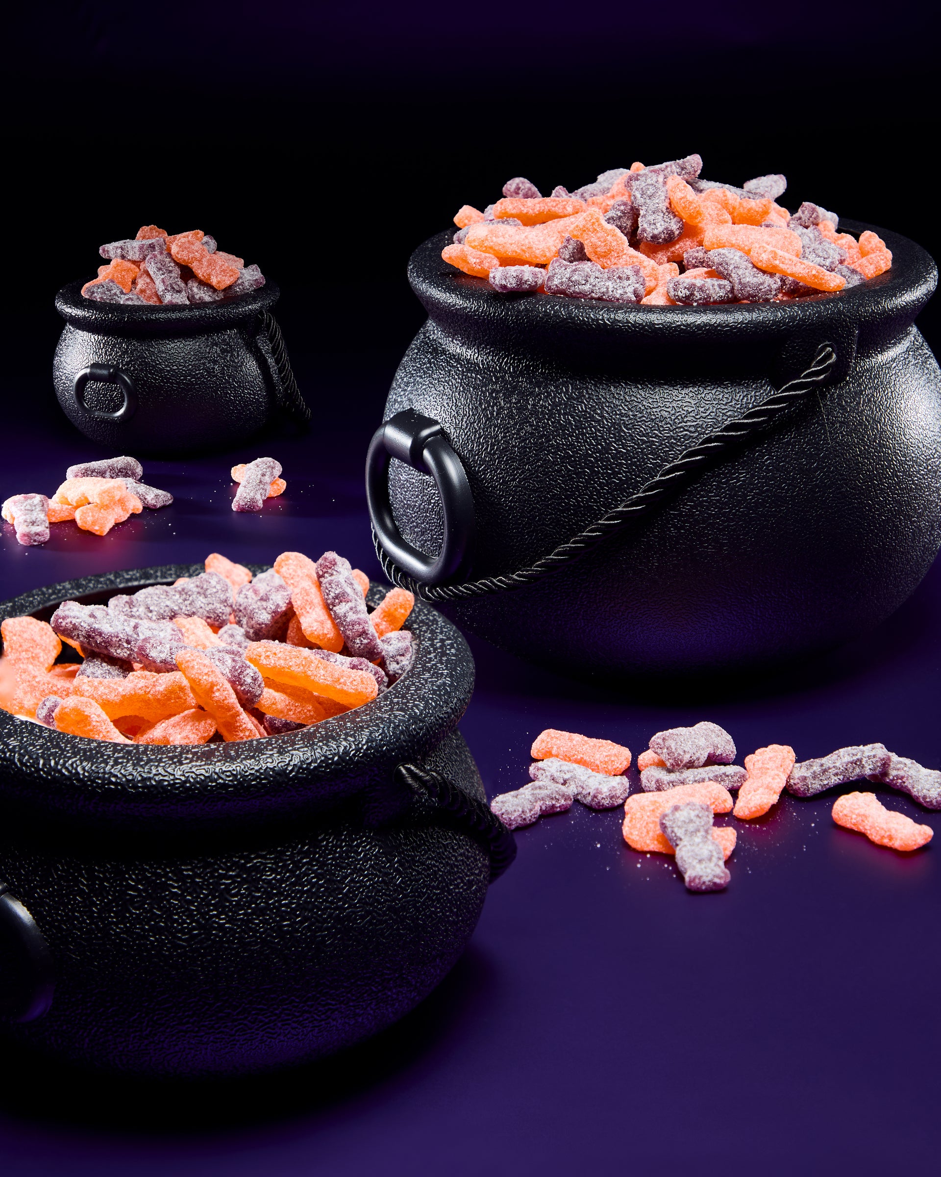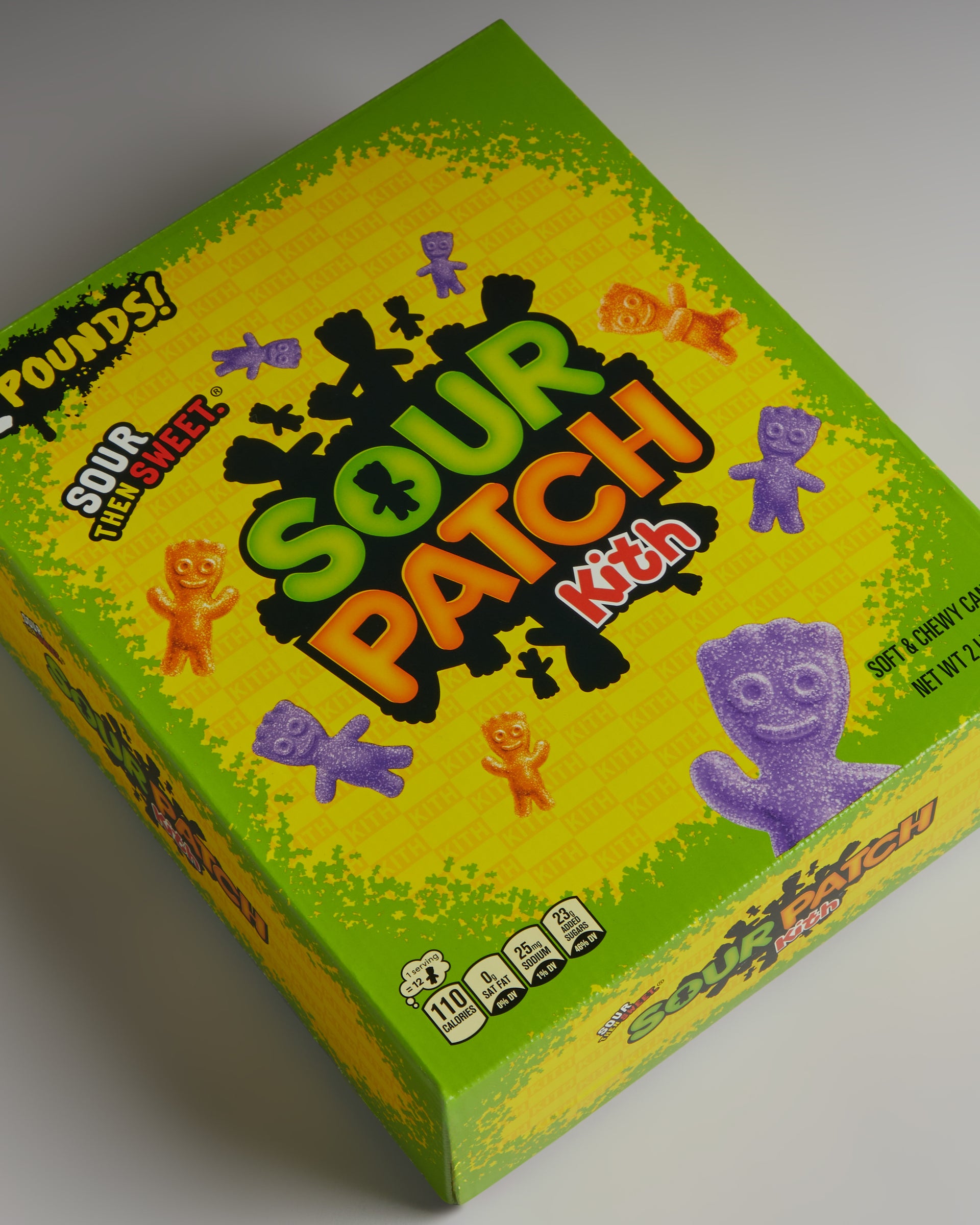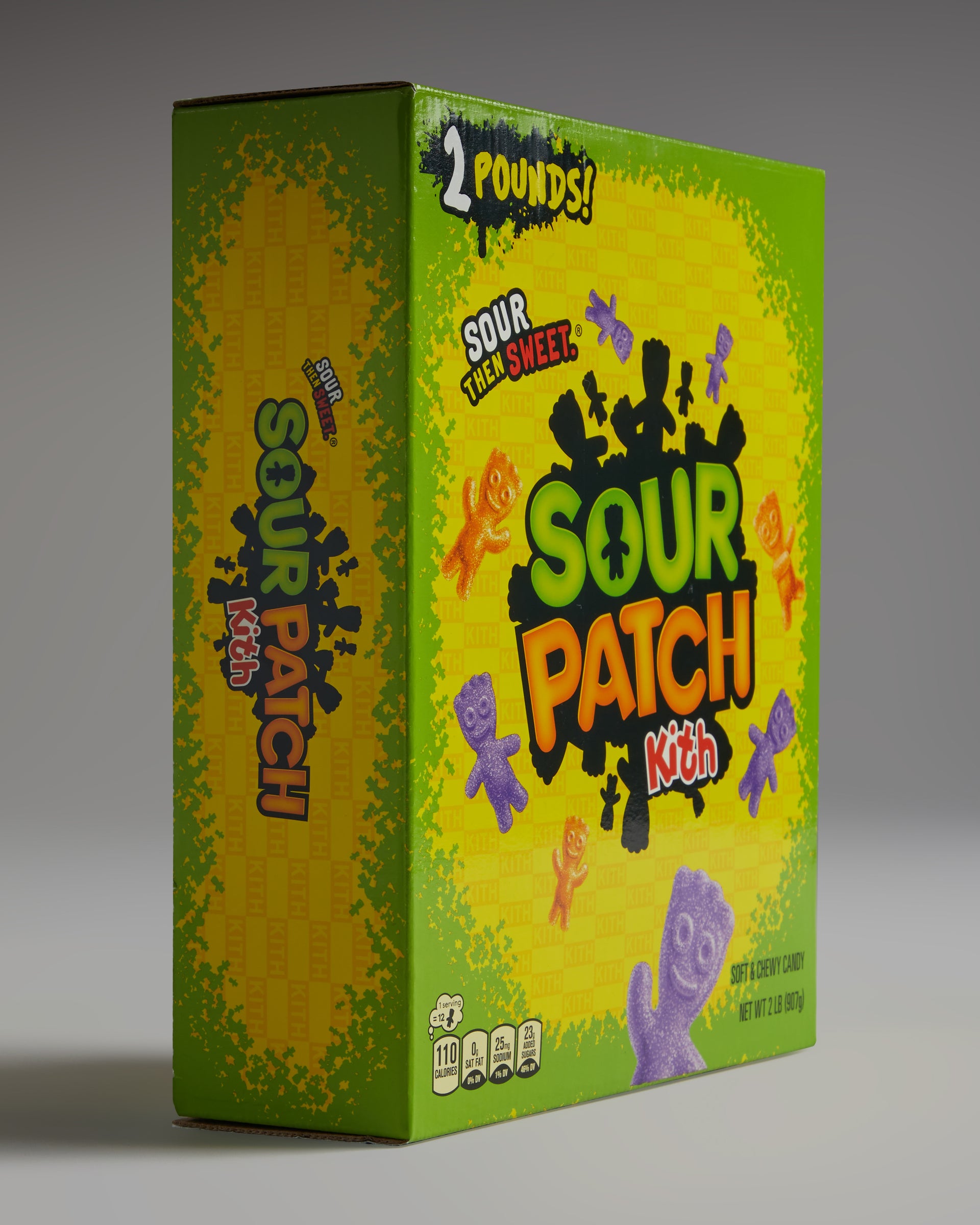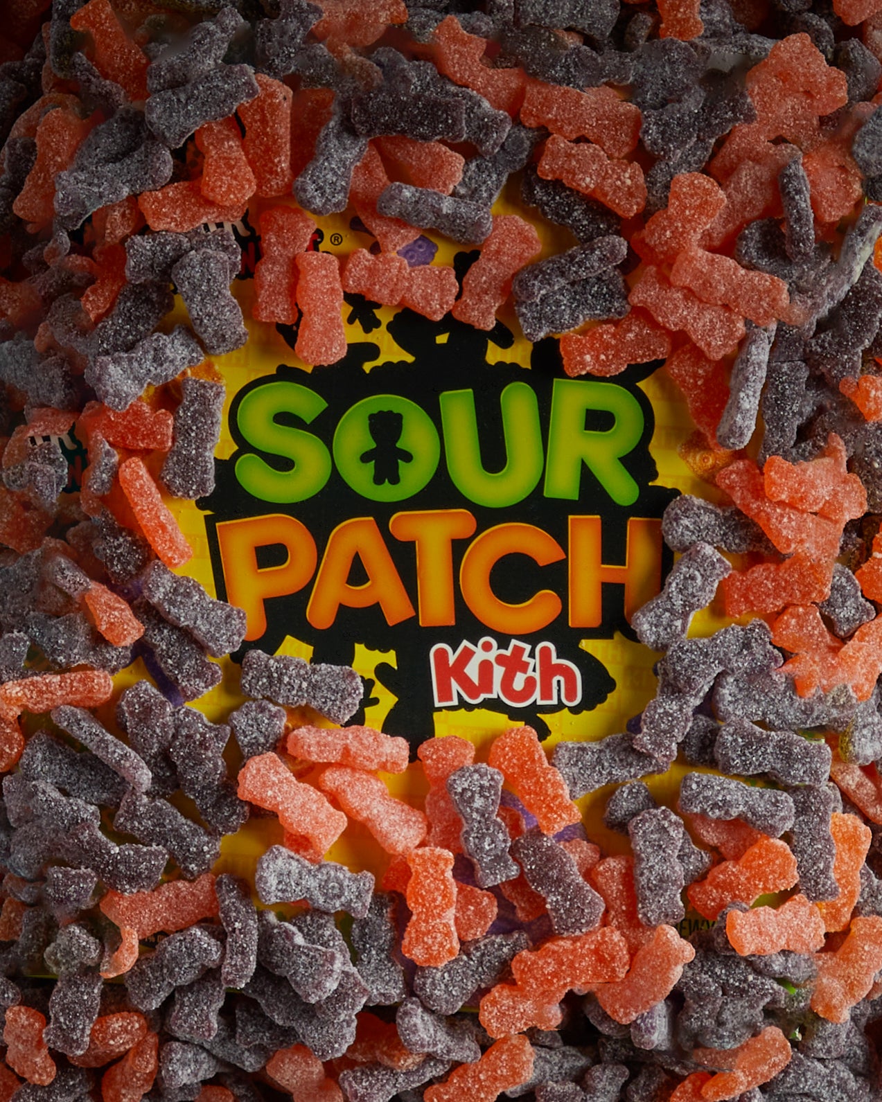The collection's centerpiece is a limited edition, co-branded two-pound box containing a special Halloween blend of Grape and Orange-flavored SOUR PATCH KIDS candy. The Kith Treats for SOUR PATCH KIDS® two-pound box size is typically reserved for special collaborations and cannot be found anywhere else.