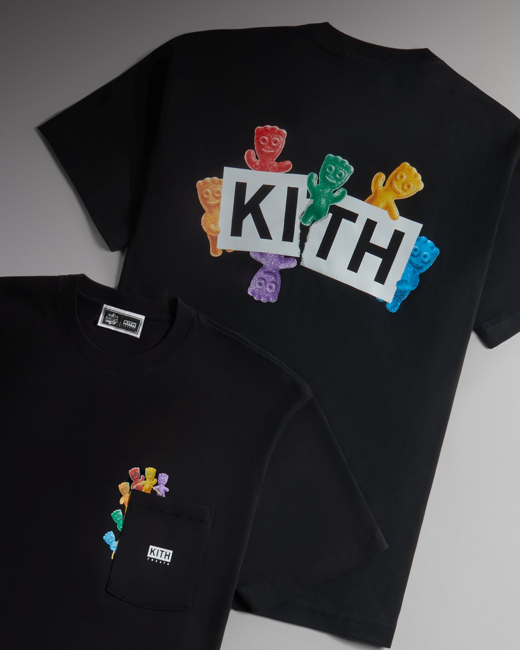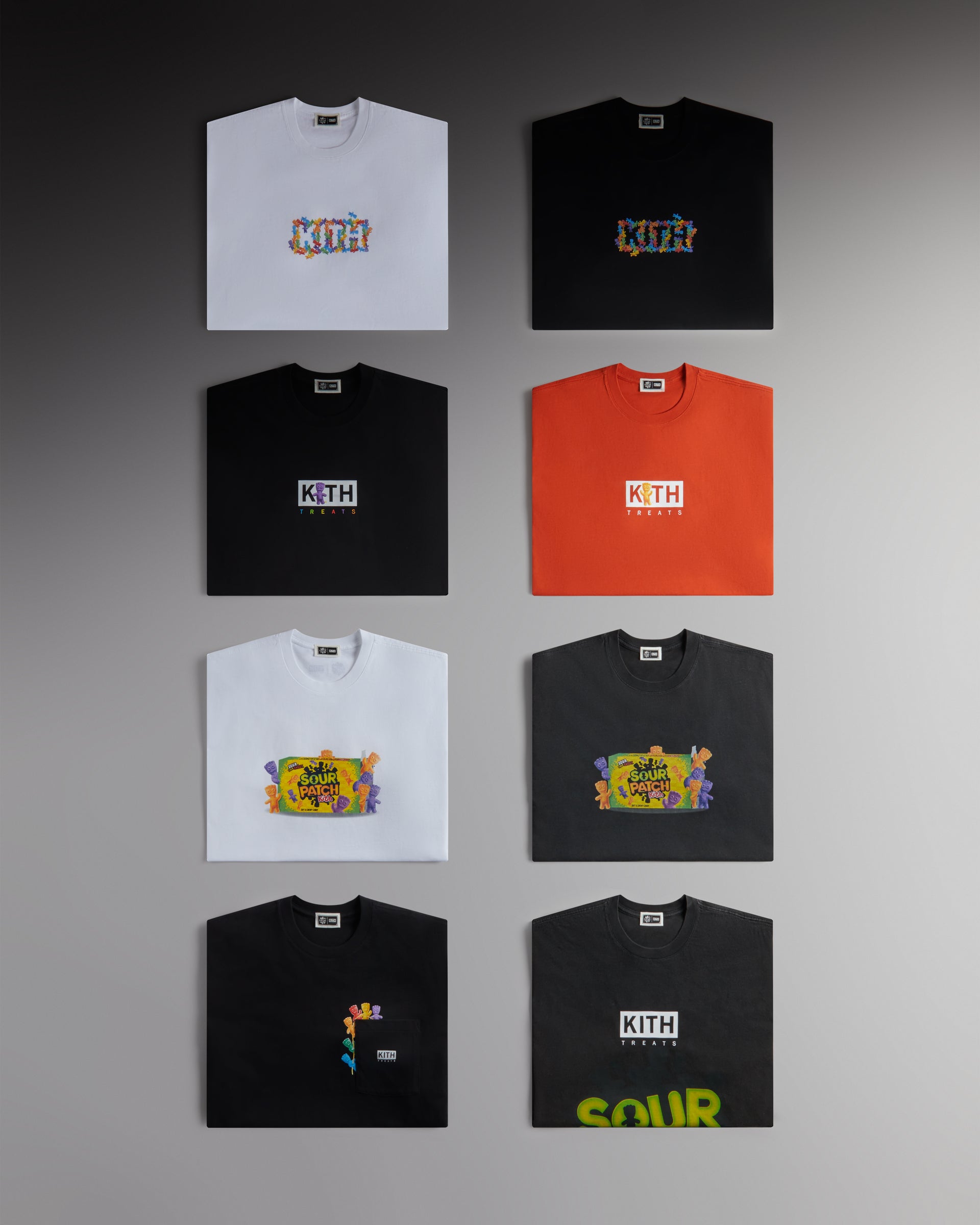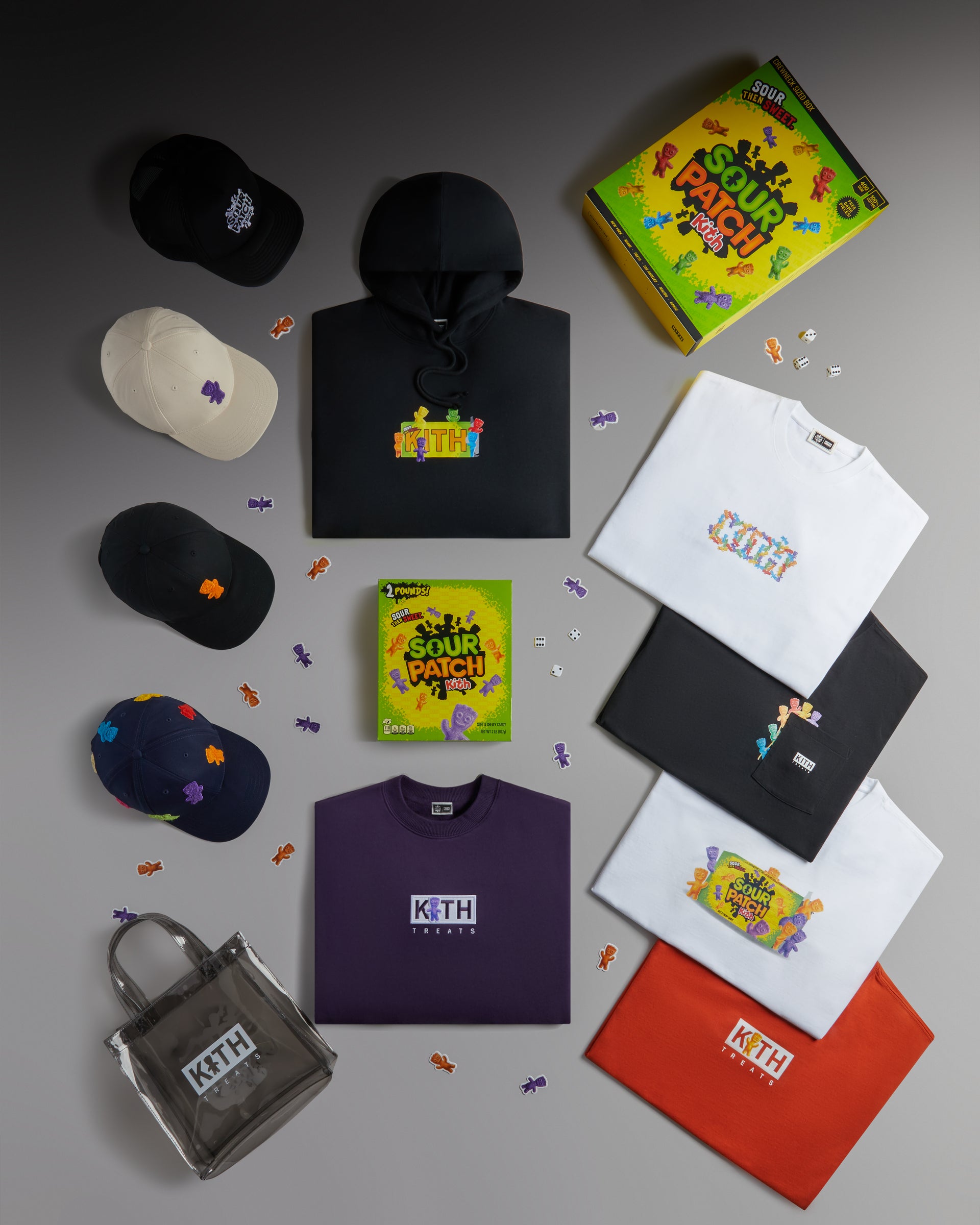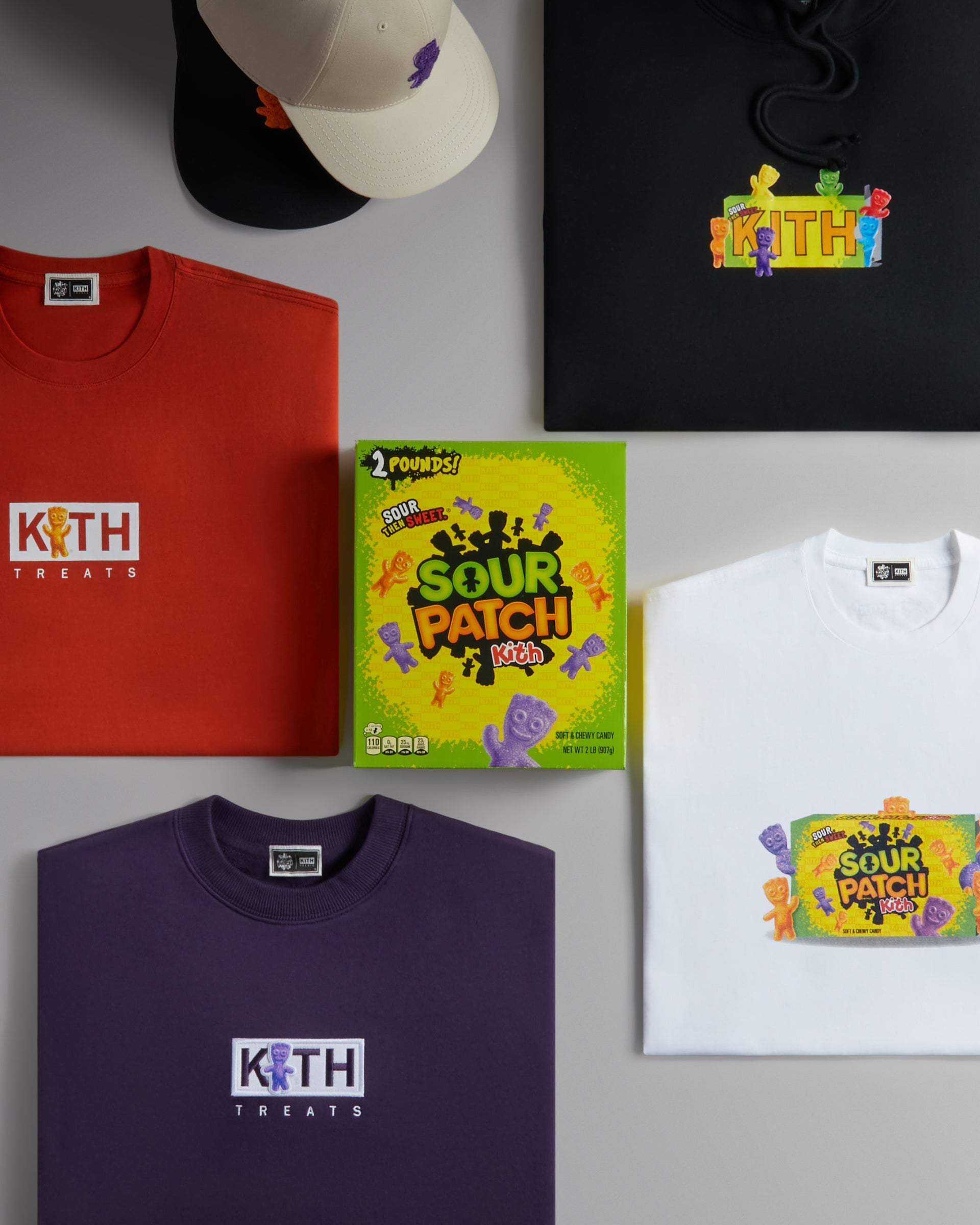 The Kith Treats for SOUR PATCH KIDS® capsule collection includes an assortment of Kith’s signature heavyweights, classic tees and headwear featuring co-branded graphics and embroidery celebrating the candy’s lovable mischief.