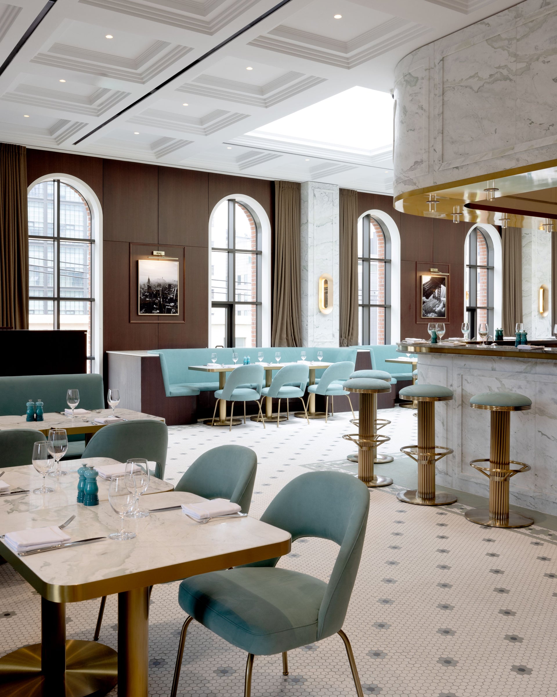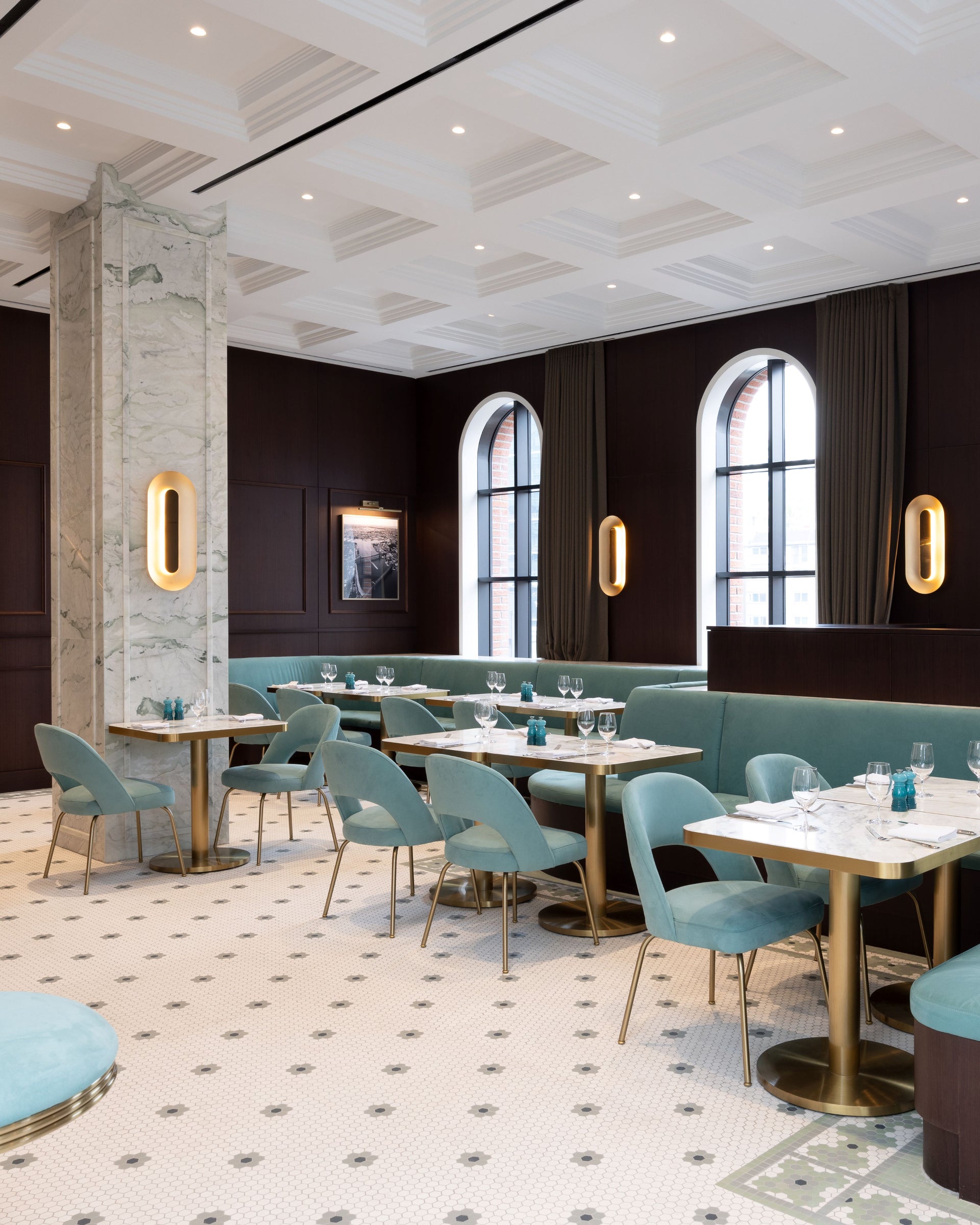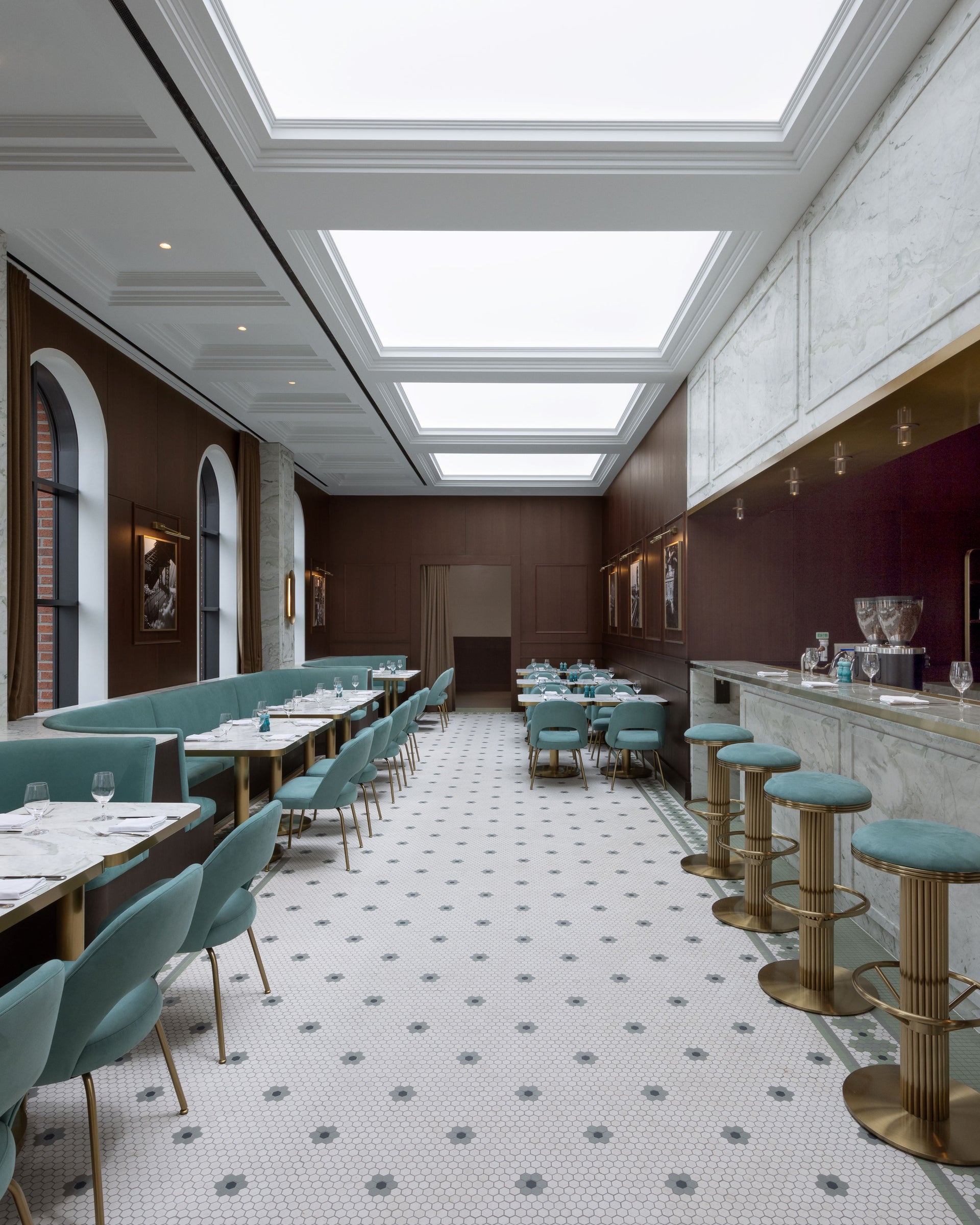 Open seven days a week, Sadelle’s at Kith Seoul features location-exclusive menu items as well as classic Sadelle’s fare, such as their beloved bagels, sliced-to-order salmon, chopped salads, and world-famous french toast. Diners of Sadelle’s Seoul are greeted by a marble header engraved with a custom Sadelle’s at Kith Seoul insignia, followed by an interior adorned with Kith Monogram suede wallpaper, Sadelle’s signature blue suede seating and dark walnut floors with brass accents. Sadelle’s at Kith Seoul takes over the entire third floor and extends into the fourth floor terrace—showcasing a beautiful view of Seoul filled with an array of lively greenery.