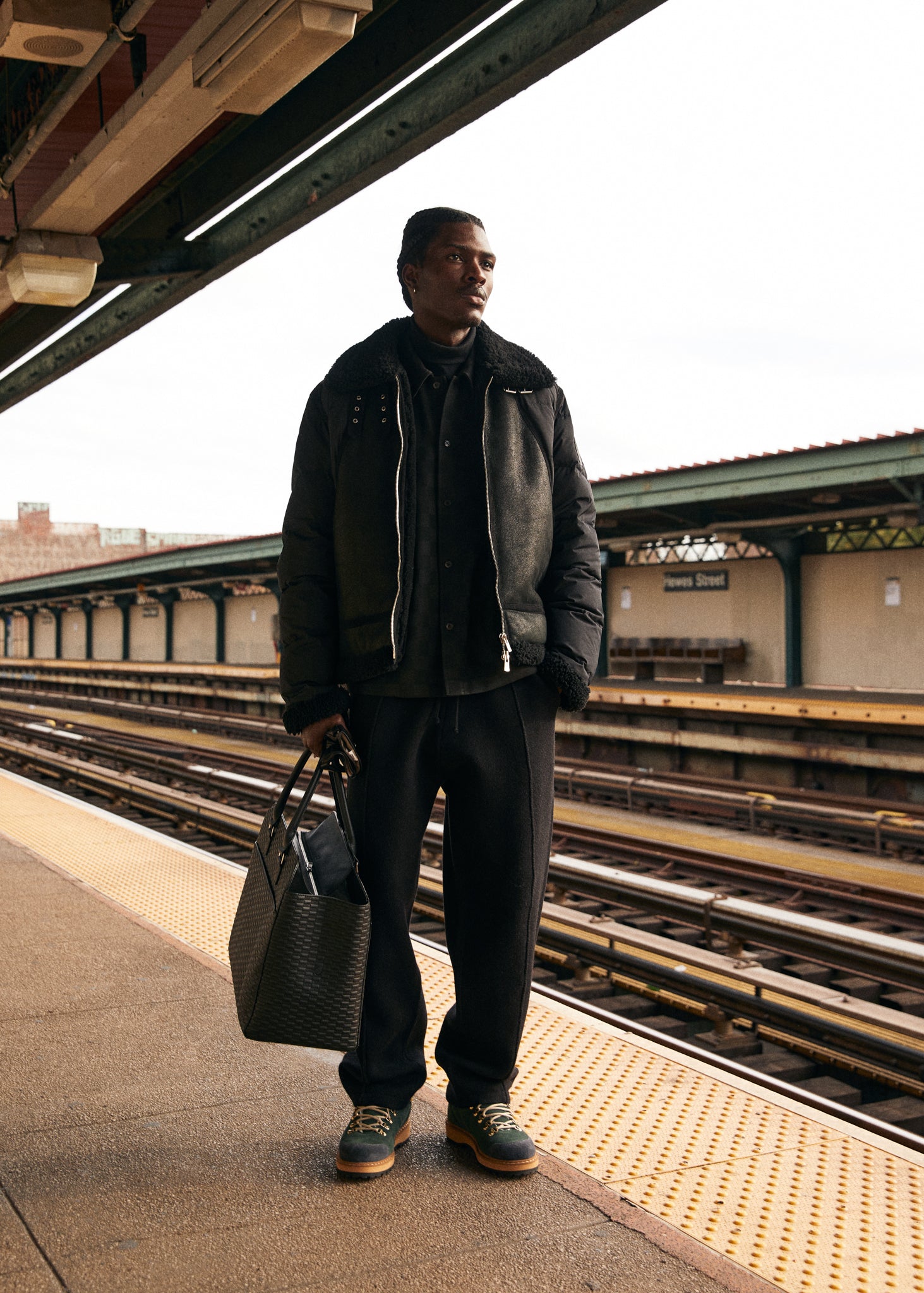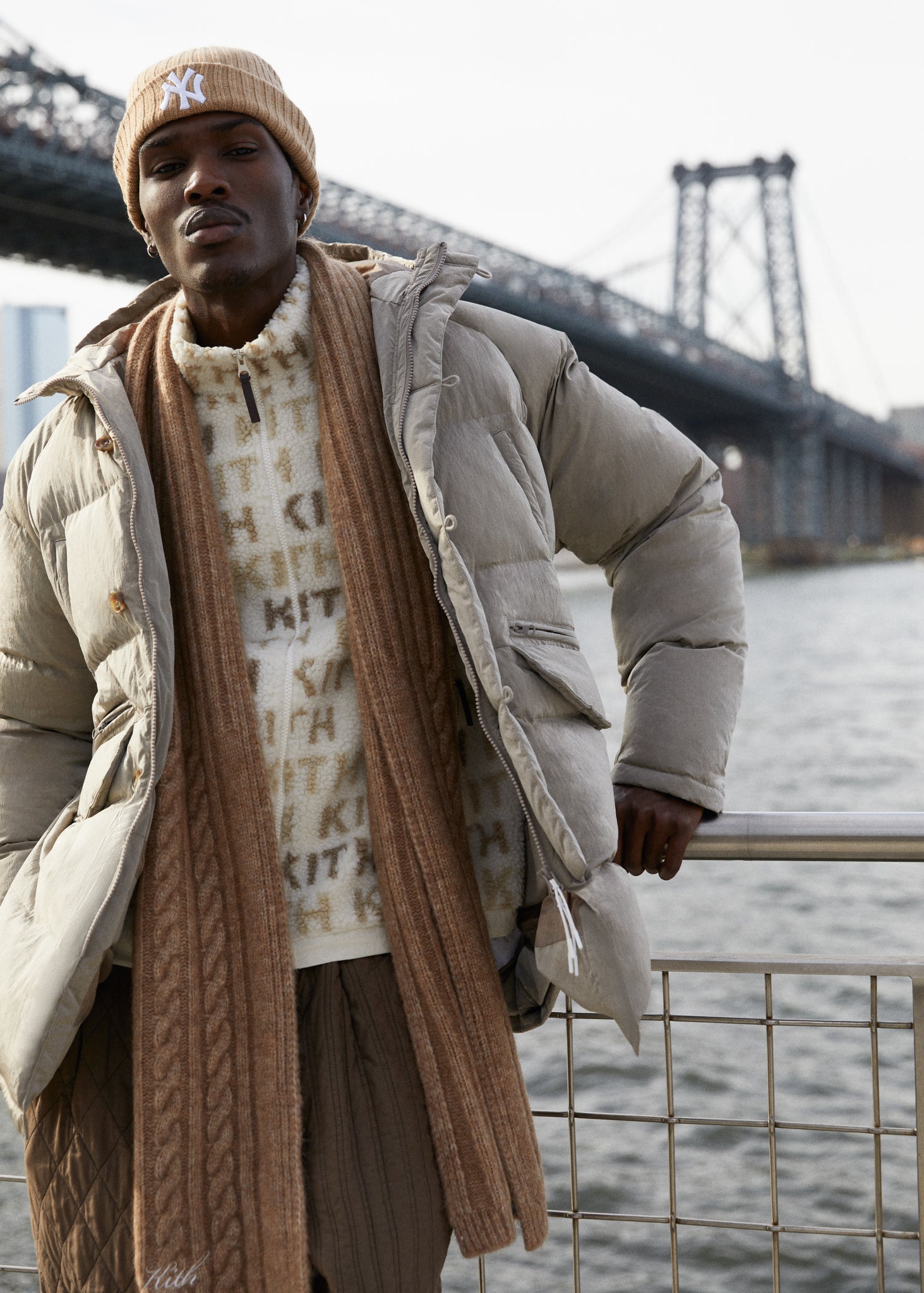 Standouts in the collection include the Bergen Car Coat, Herringbone Hawthorne Flight Jacket, Nolen Coat, and Leroy Parka. The Bergen Car Coat, crafted from premium double-face wool, is a sophisticated silhouette that features a pinstripe design, satin-lined pockets and a custom Kith ornate suiting label on the interior. The Herringbone Hawthorne Flight Jacket, crafted from premium Italian herringbone wool fabric, is a timeless style lined with lightweight quilted satin—featuring a zip closure at the front, pockets on the interior and exterior body, and ribbing at the hem & sleeve cuffs. The Nolen Coat, also crafted from warm and durable herringbone wool, is a comfort-forward style with a relaxed fit—perfect for everyday wear. The Leroy Parka is a well-insulated yet breathable silhouette crafted from lightweight wrinkle nylon and highlights a full-zip front that extends up to the hood, ribbing at the cuffs, and a looped bungee cord closure.