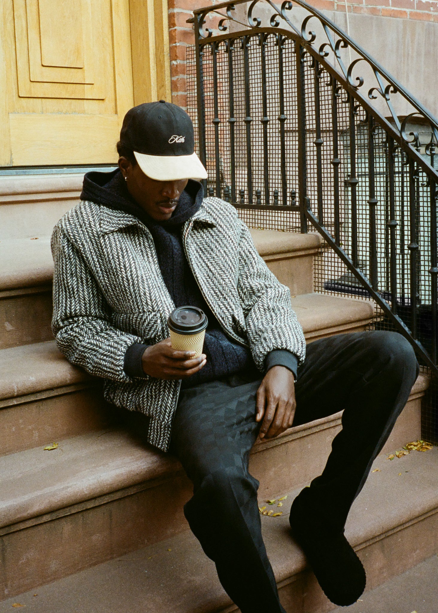 This collection allows for versatile wardrobing and consists of outerwear, tailored shirting, seasonal knitwear, core trousers, and a variety of accessories. Premium fabrics are seen throughout—Italian textured herringbone wool, Japanese nylon, velvet, wide wale corduroy, suede, shearling, chunky cotton yarn and more. Each piece is uplifted by the seasonal palette which mainly consists of foundational Kith colors such as Nocturnal, Stadium, Canvas, Monarch, and Black—alongside more seasonal hues like Apex, History, and Cyclone.