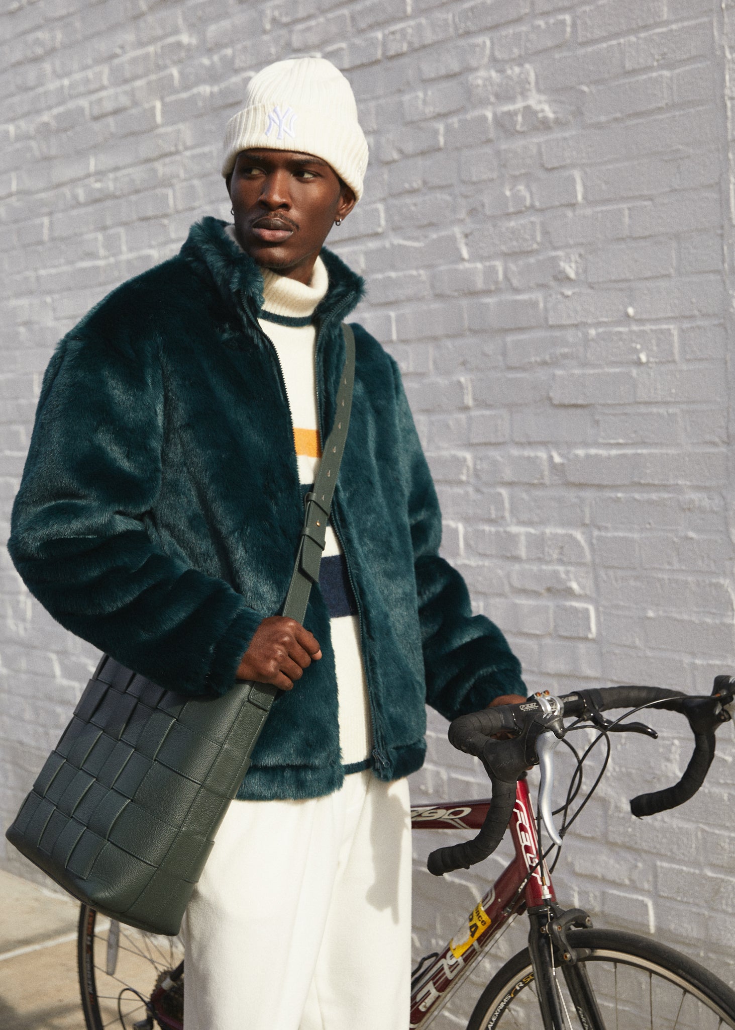 Accessories include collaborative & signature cold-weather headwear, crossbody, tote and duffle bags, and more. Kith reprises its partnership with ‘47 Brand, offering co-branded Franchise LS caps in unstructured wool & corduroy iterations that feature Queens-inspired and New York Yankees designs. Signature Kith cotton chunky yarn beanies and polyester balaclavas empower styling for any occasion and are executed in hues from the Kith Winter 2023 Palette. The assortment is rounded out with an offering of Saffiano leather Kith Monogram duffle bags & camera crossbody bags, alongside hand-woven leather totes that empower versatile styling for any occasion.