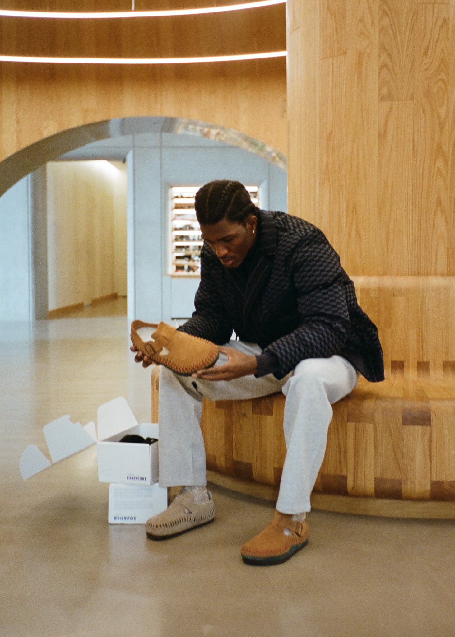 For the footwear component of the release, Kith reprised its partnership with Birkenstock to develop an all-new, Kith-exclusive silhouette—the Kith for Birkenstock London Braided. Inspired by the London silhouette, one of the first closed-toe styles from Birkenstock, this custom model reinvents its predecessors’ clean aesthetic with an eye-catching hand-braided centerpiece. The upper is crafted from signature suede material and features a debossed Kith Script buckle strap and an EVA midsole. The Black and Taupe colorways are designed with a cork footbed, while the Biscuit colorway showcases a shearling footbed & lining. This collaboration marks the first time Kith has worked on a Birkenstock 1774 silhouette.