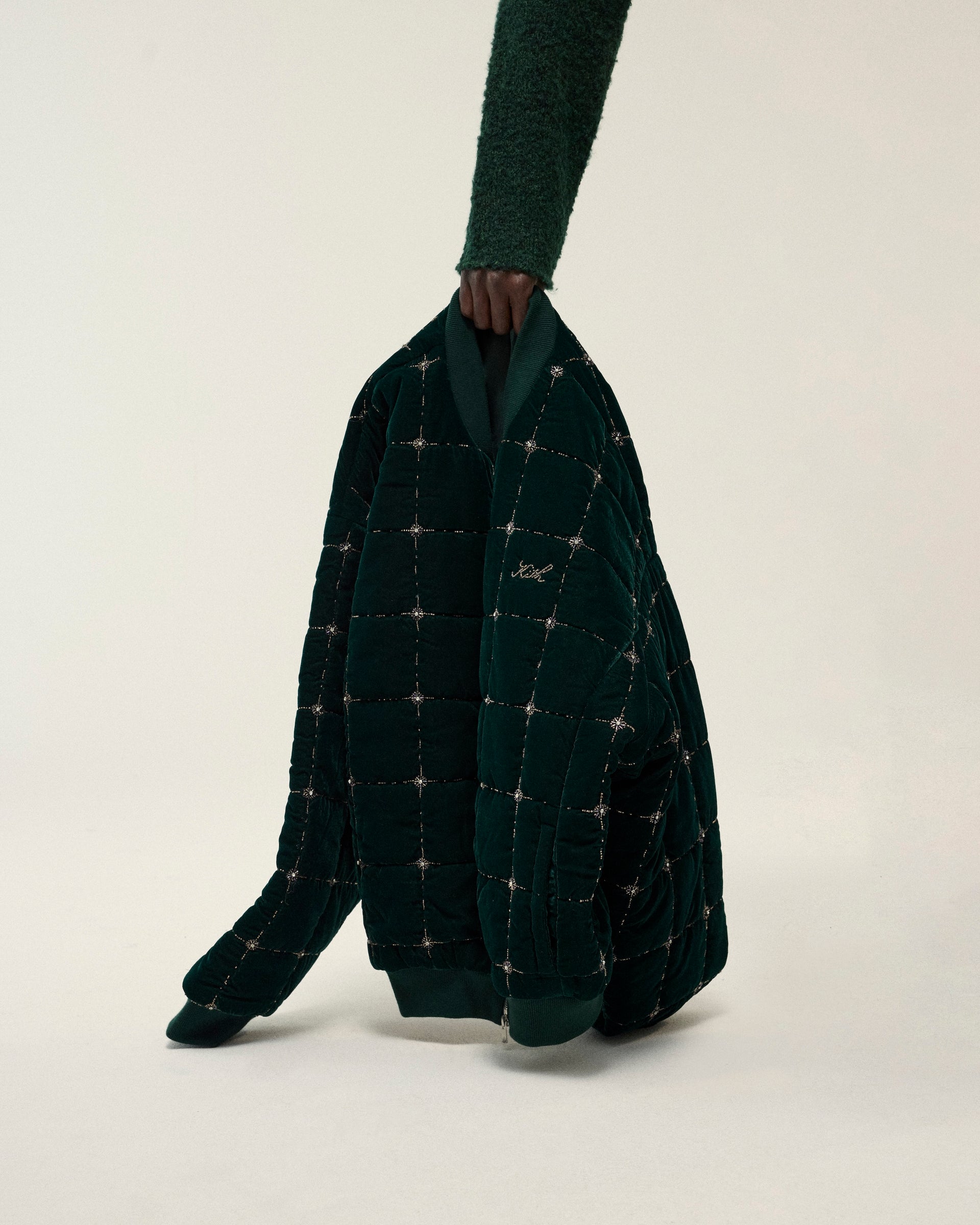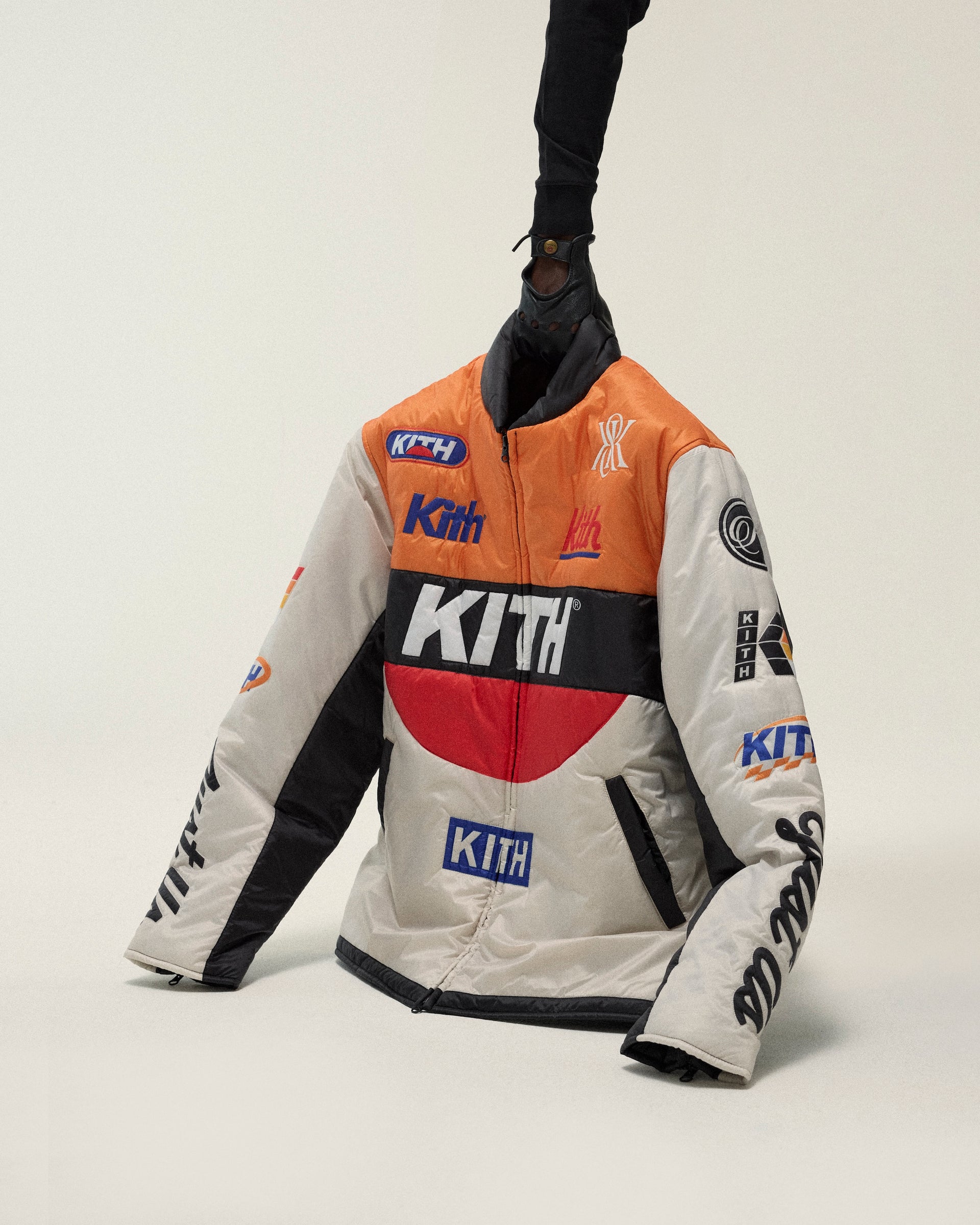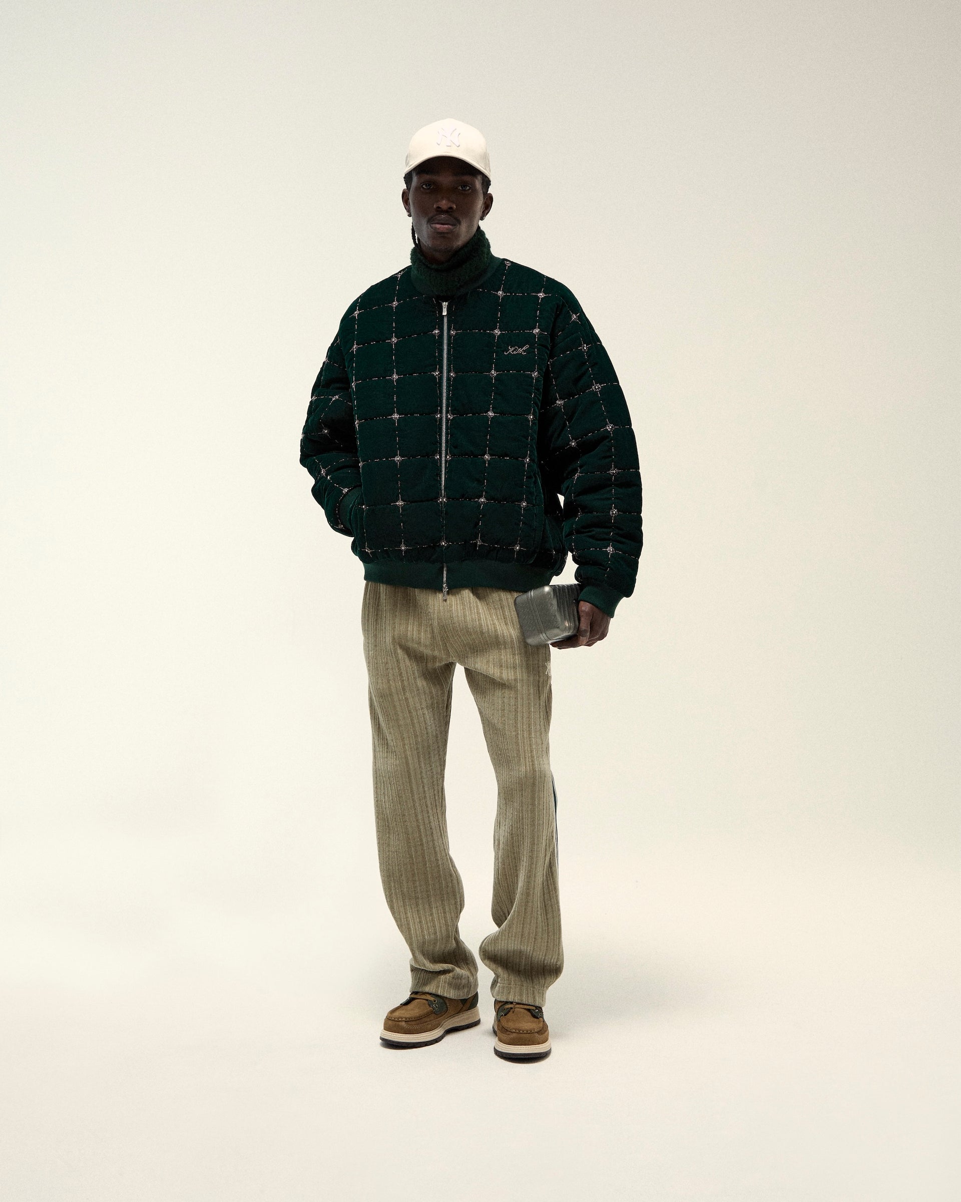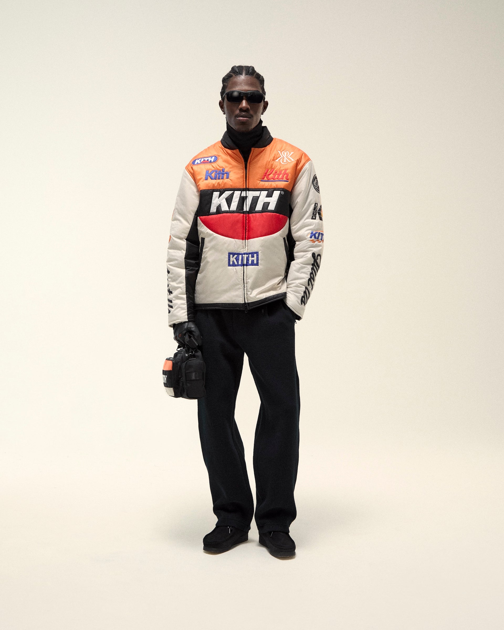 Standouts in the apparel collection include the Shearling Patchwork Becker Coat, Velvet Corduroy Ali Track Jacket, Beaded Velvet Clay Bomber Jacket and Gradient Wool Bergen Coat. The Becker Coat features an all-over patchwork design crafted from 100% lamb shearling. It is complete with a debossed Kith Crest logo on the back. The Ali Jacket, offered in a duo of colorways, is constructed from our stretch velvet corduroy and features an all-over striped composition. The style has welt pockets, piping details along the sleeves, and showcases the Kith Crest logo embroidery at the chest. The Beaded Bomber Jacket reimagines the Kith-signature silhouette with premium velvet and hand-beaded applique artwork throughout. The jacket is finished with Kith Script embroidery on the front. The Bergen Coat, a staple long winter coat, returns in an all-new ombre iteration. This style is made in Italy from a premium wool blend that features Arctic hues.