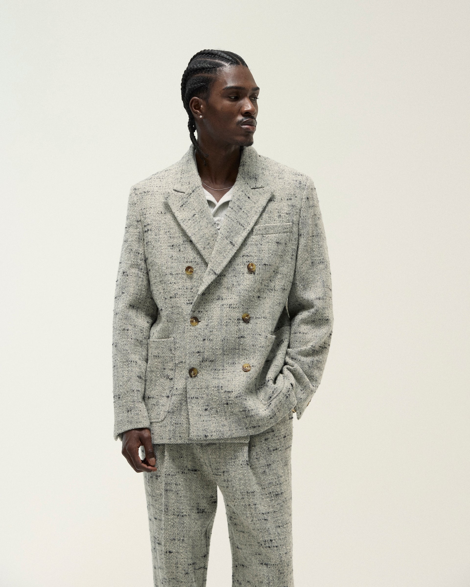 &Kin, Kith’s most elevated un-branded styles, returns for its third installment. The standout for the season is the Julius Blazer—a sophisticated suit jacket now updated in Italian boucle tweed. It is designed to pair with the Kylan Trouser. Debuting this collection is the Rya Blazer, a double-breasted silhouette crafted from premium cashmere. It is offered in Heather Grey and Black iterations. Other standouts include the Woven Leather Apollo II Shirt, Boucle Check Nolen Coat, and Speckled Boucle Walker Turtleneck.