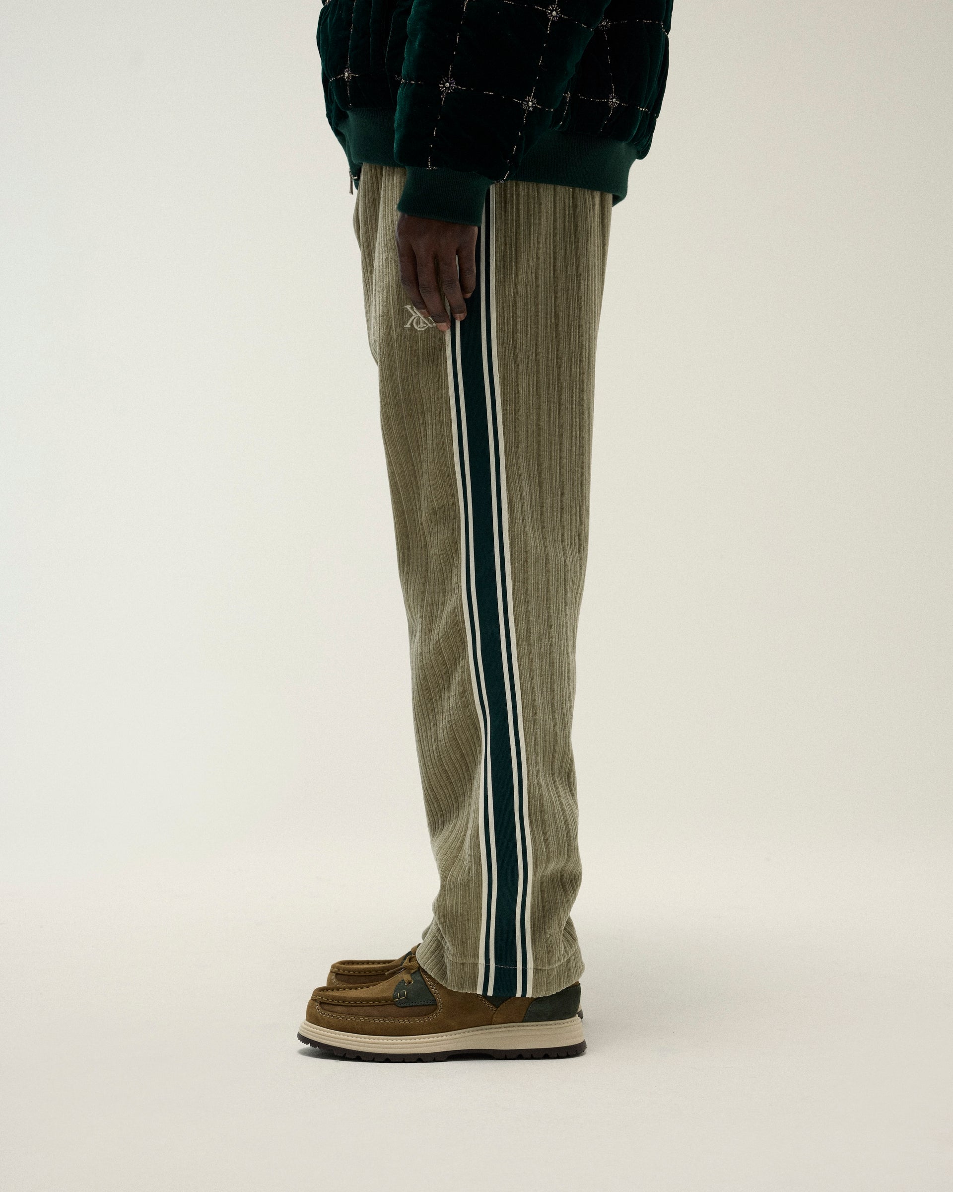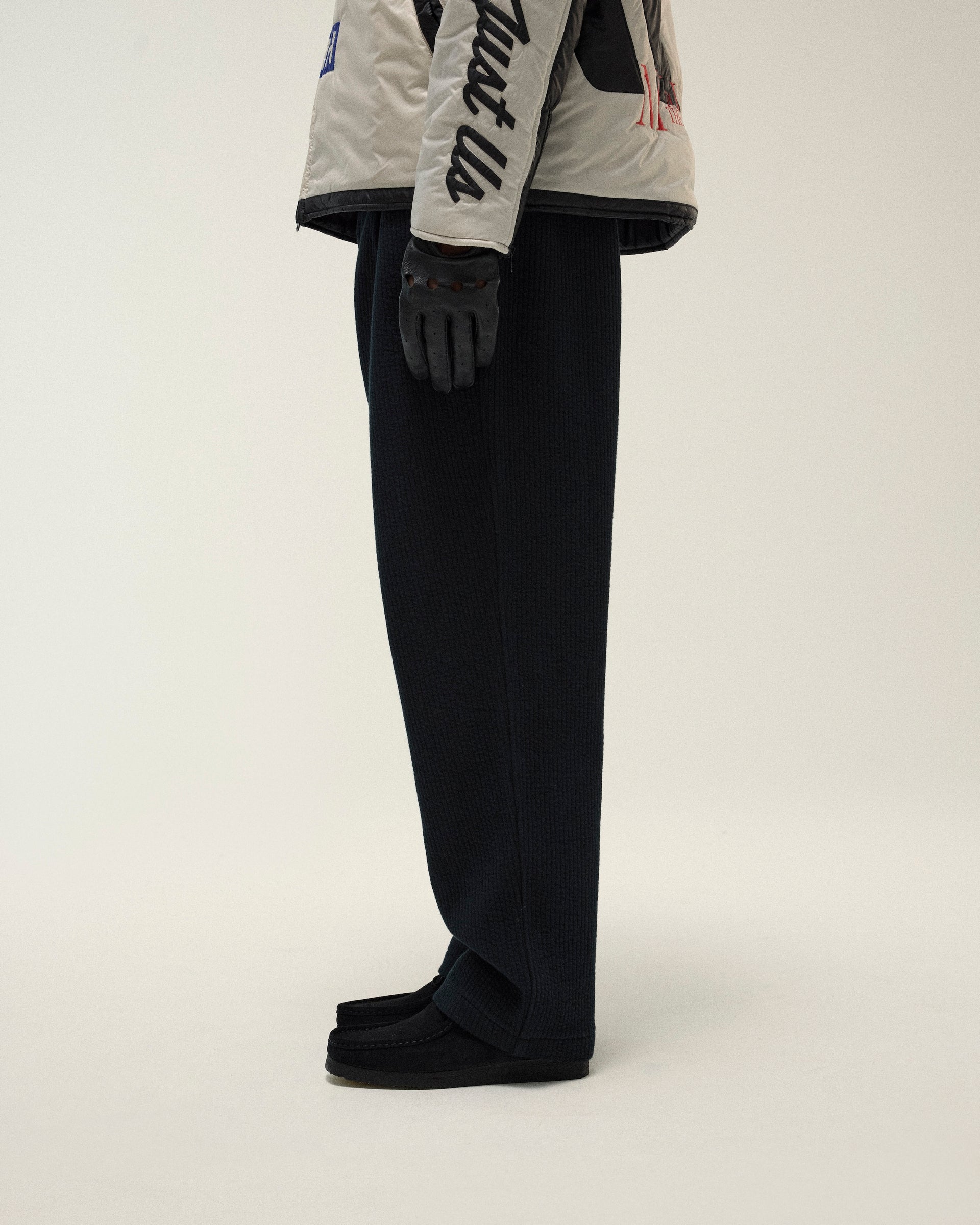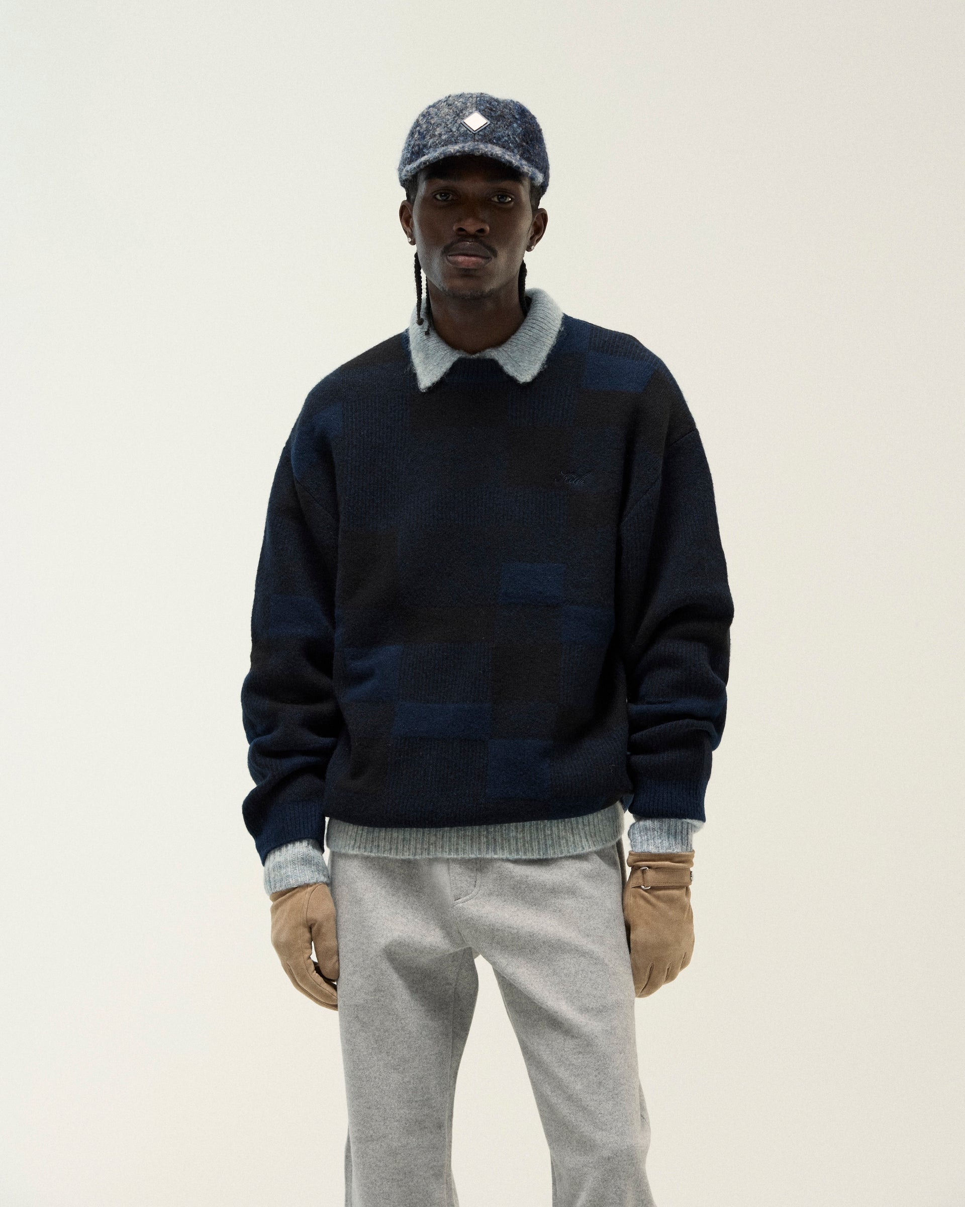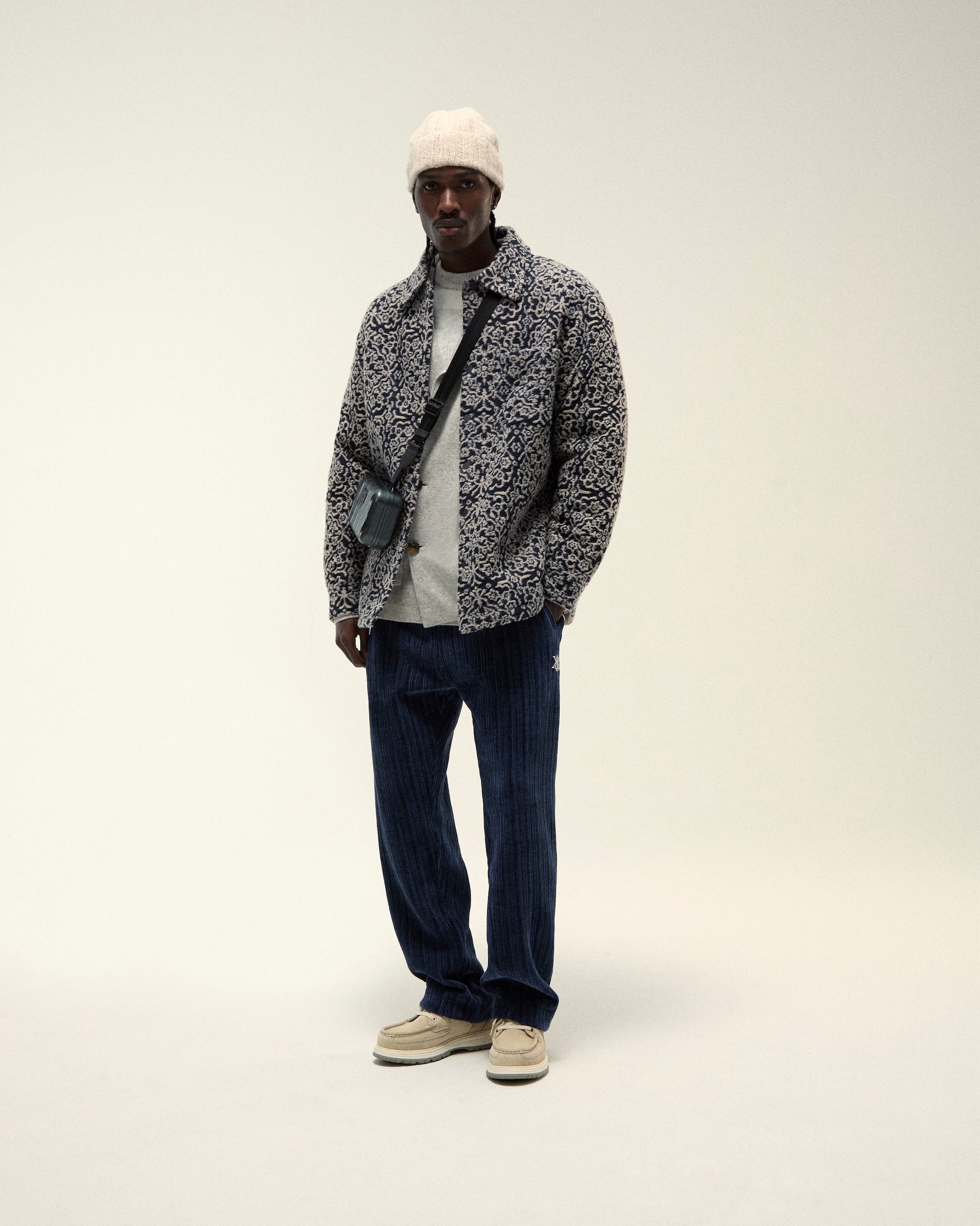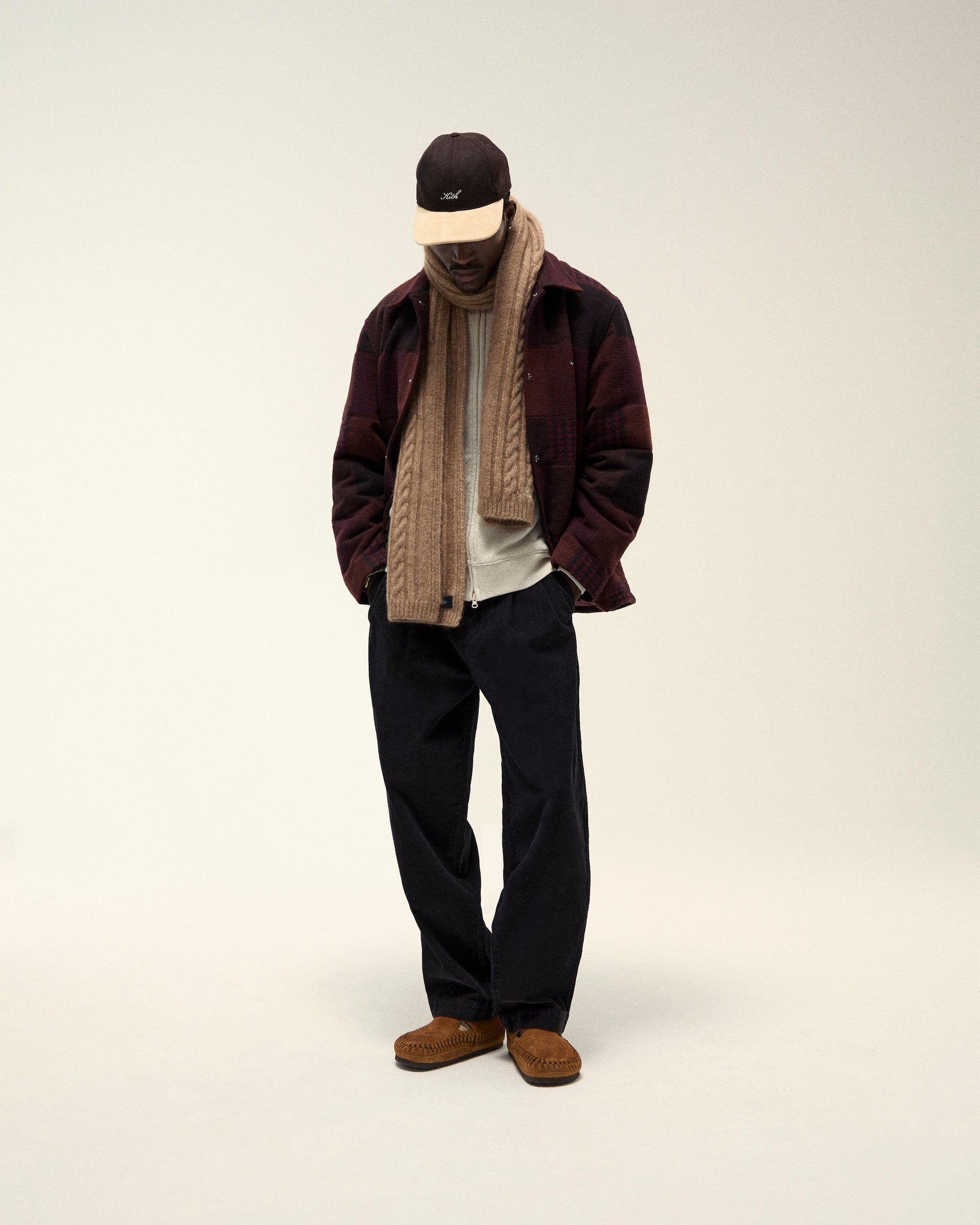 This collection allows for versatile wardrobing and consists of elevated outerwear, tailored shirting, novelty knitwear, pants, and a variety of accompanying accessories. Velvet corduroy, chenille, bonded microsuede, wool blends, shearling and more seasonal fabrics are seen throughout. The Kith Winter 2024 Palette showcases darker foundational tones as well as hints of Arctic hues.