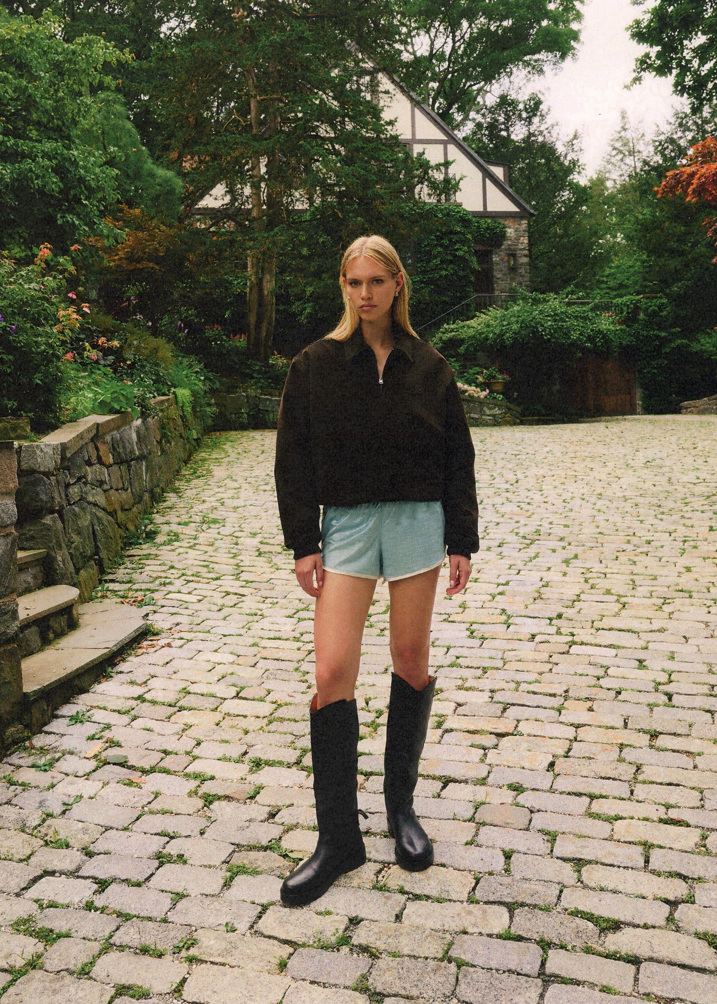 Fall standouts include the Wrenley Satin Crest Jacket, Torin Trench Coat and Camden Duster Coat. The Wrenley Satin Crest Jacket, crafted of pointelle satin, is a classic track jacket style meant to be paired with the Florin Tearaway Pant. It is offered in three staple hues and features the Kith & Kin Crest logo embroidery at the chest. The Torin Trench Coat is a sophisticated double-breasted style that is crafted of micro-nylon faille fabric and is constructed with a detachable interior all-over Kith quilted liner. The Camden Duster Coat is crafted of a custom all-over Kith Script double-face wool jacquard. It has a Kith-branded button closure at the front, a notched lapel, and shoulder pads, and is complete with a custom Kith & Kin satin label at the sleeve. Accompanying these standouts are knitwear sets like the Mulberry Crest Long-Sleeve and Ember Mini Skort, a variety of cycling-inspired sets like the Blaise Full Zip and Lana Biker Short, alongside a selection of dresses and skirts.