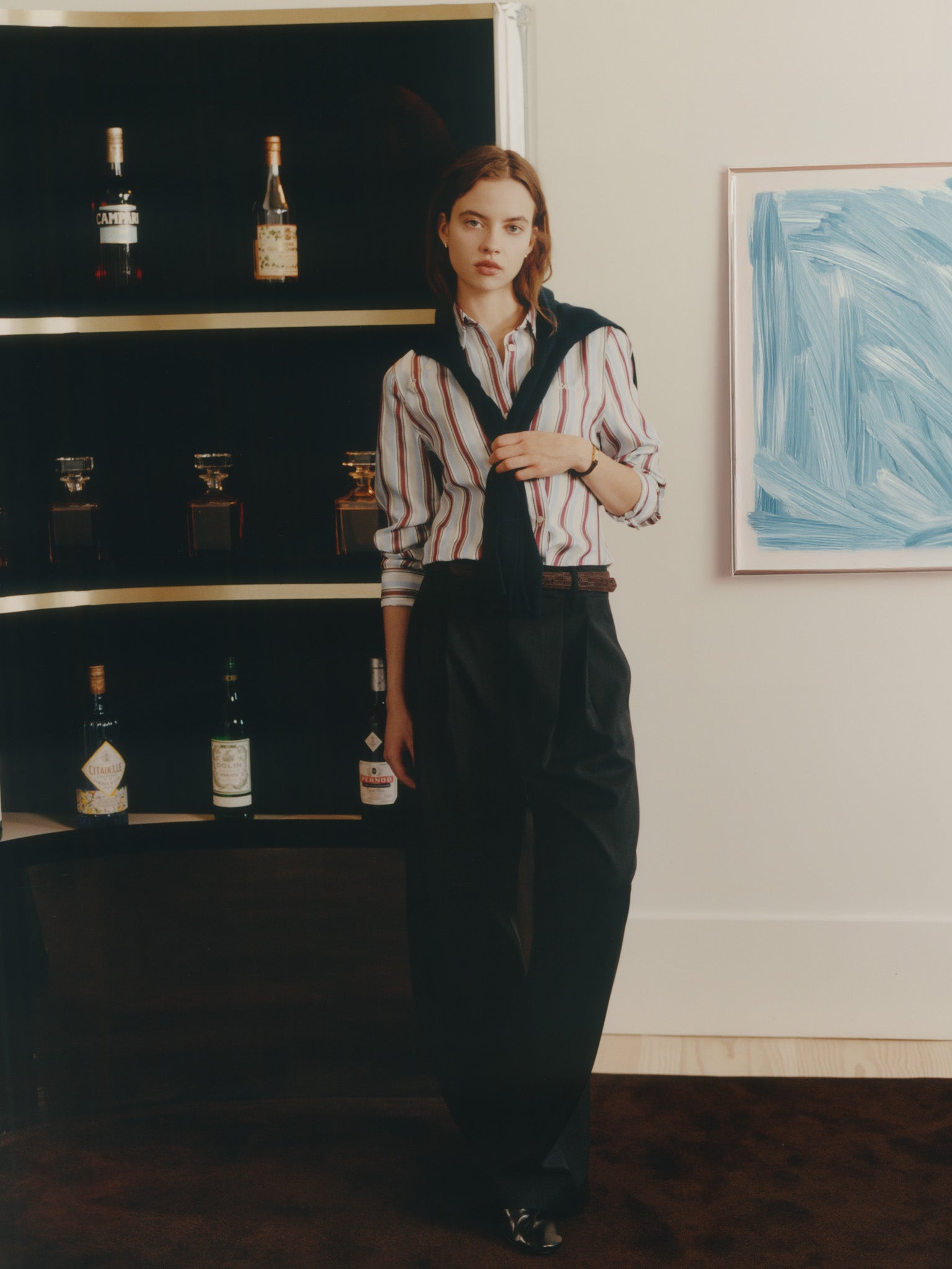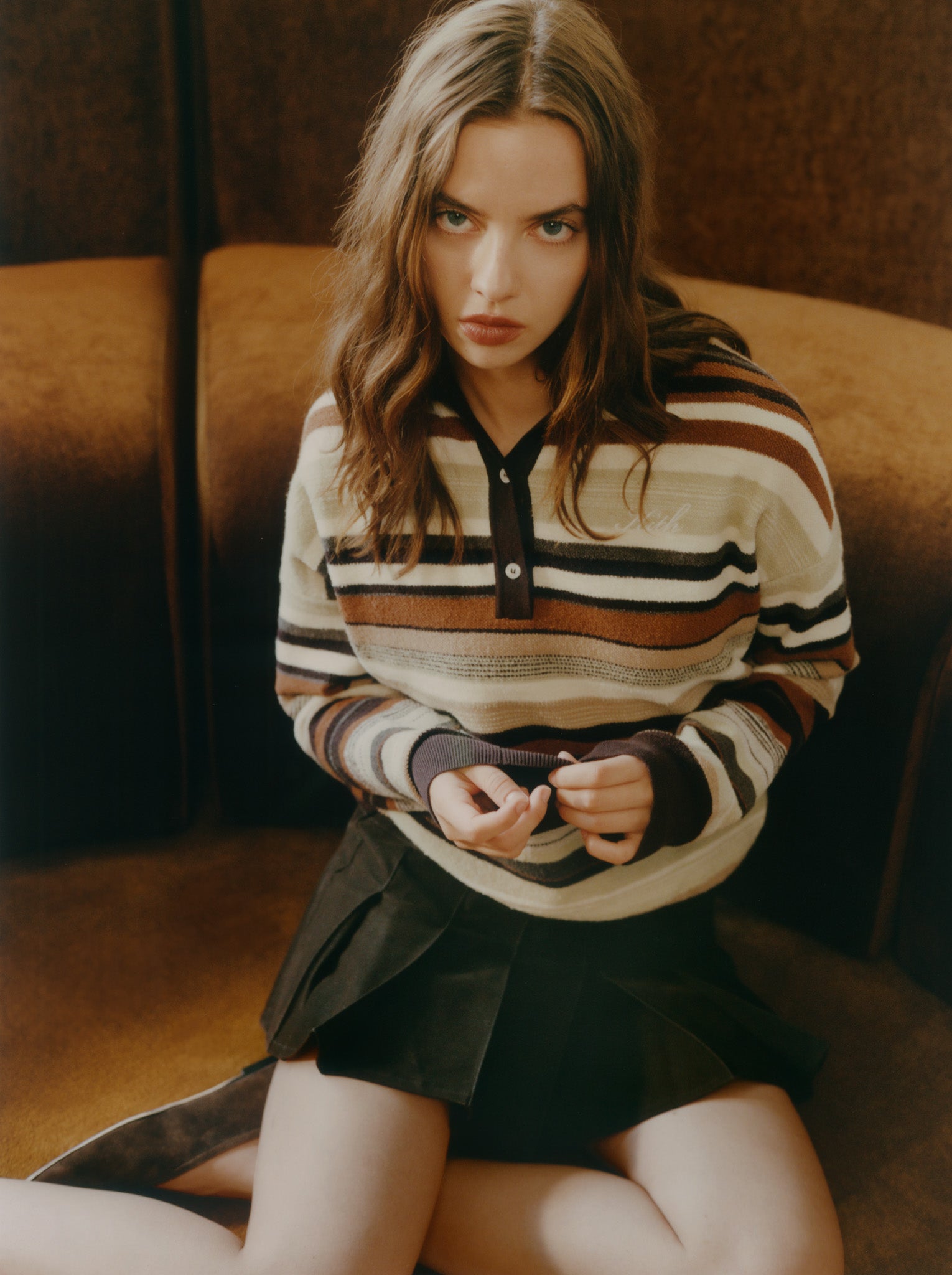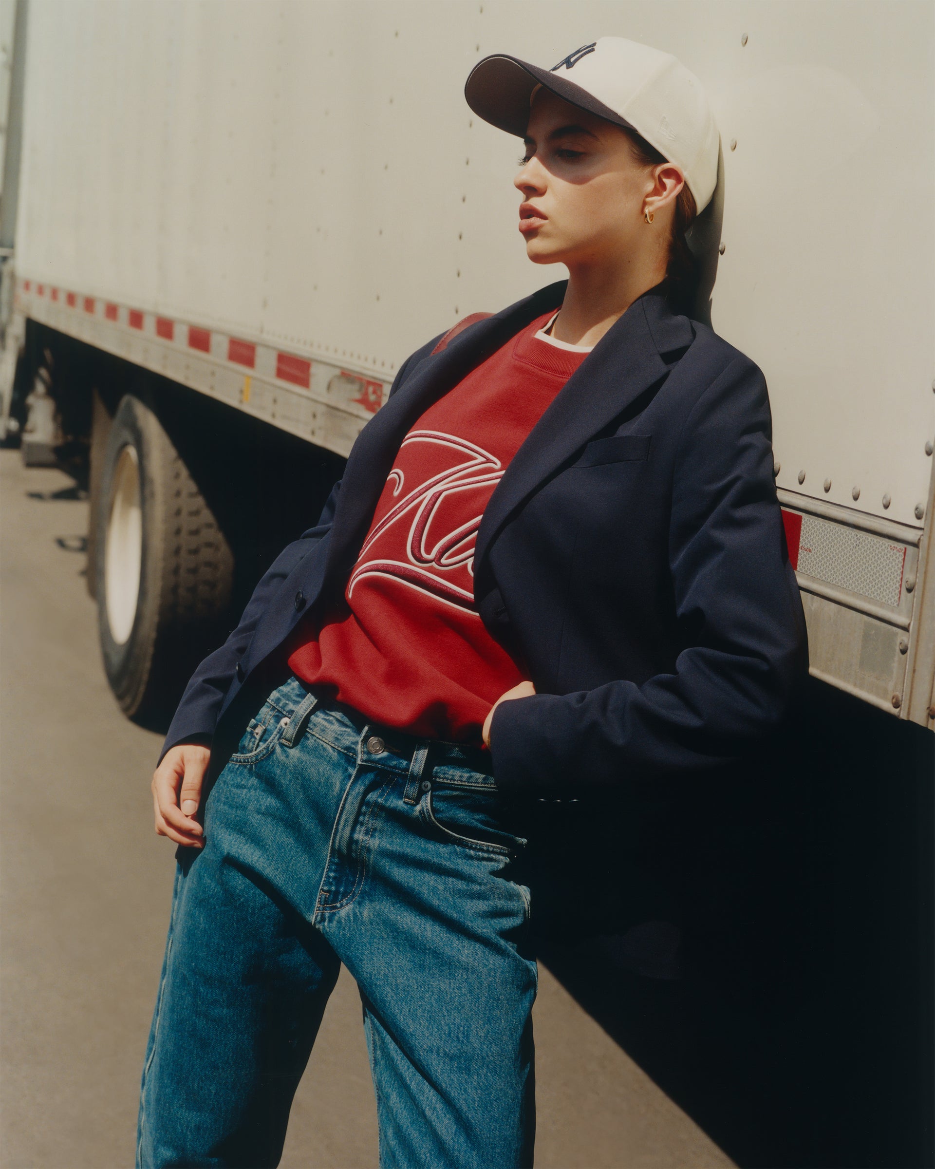 Kith Women Fall 2025 is defined by versatile matching sets, transitional knitwear ideal for when the weather gets colder, and outerwear in a variety of silhouettes including coats, cropped jackets, and bombers. The collection features collegiate-inspired graphics, seen on the Campbell II Melton Varsity Bomber, the Ashwin Polo Sweater, and the Tanner NY Apple Hoodie, tailored separates designed for day-to-night dressing such as the Corwin Script Faille Jacket, the Eliah Boucle Tank, and the Riko Script Faille Mini Skirt, and Western-inspired silhouettes—the Palesa Moto Jacket, the Miren Paisley Pant, and assorted graphic tees. The primary materials used in this collection are a jacquard faille blend ideal for tailored silhouettes, transitional wool, and fine brushed interlock for a premium hand-feel.