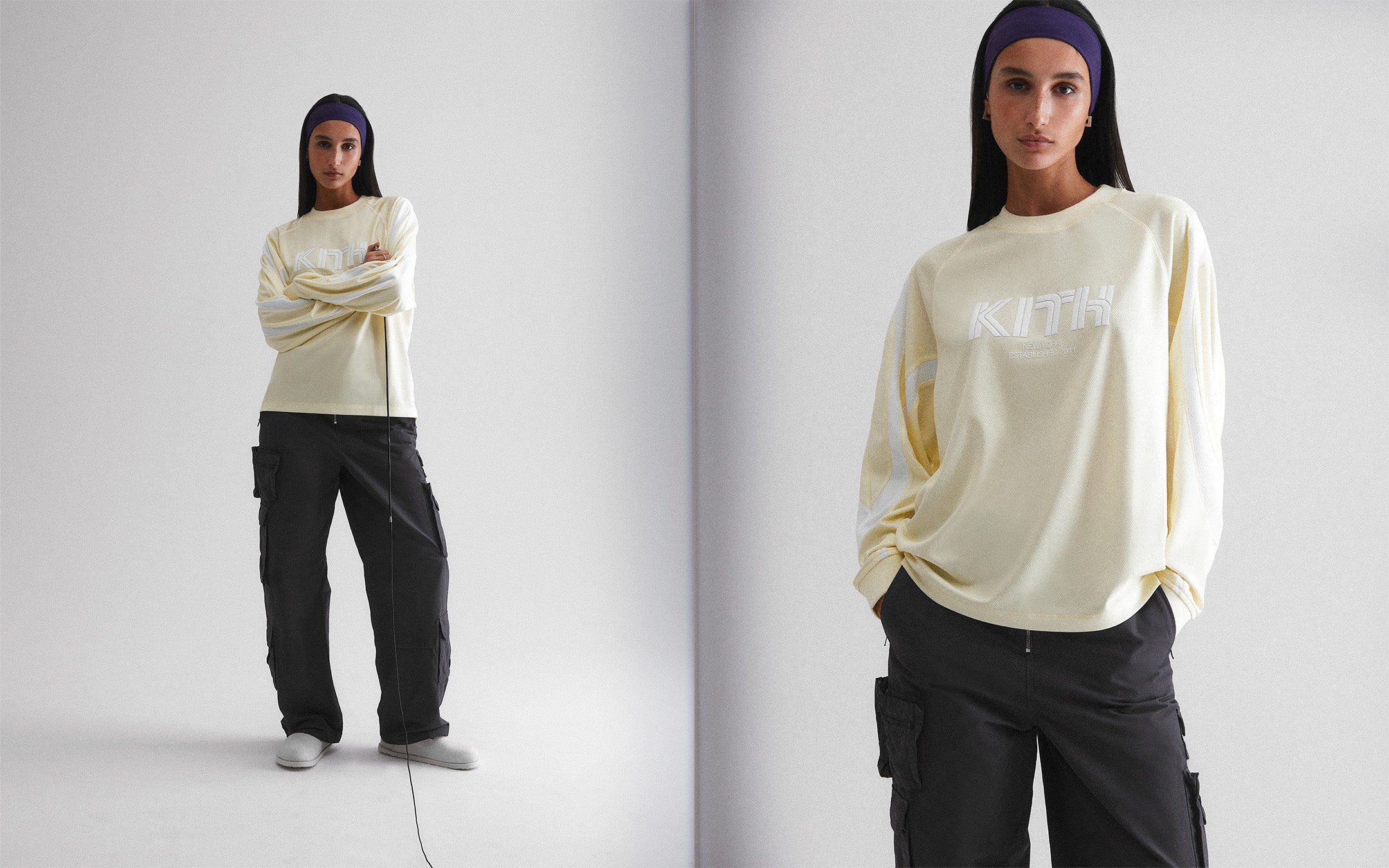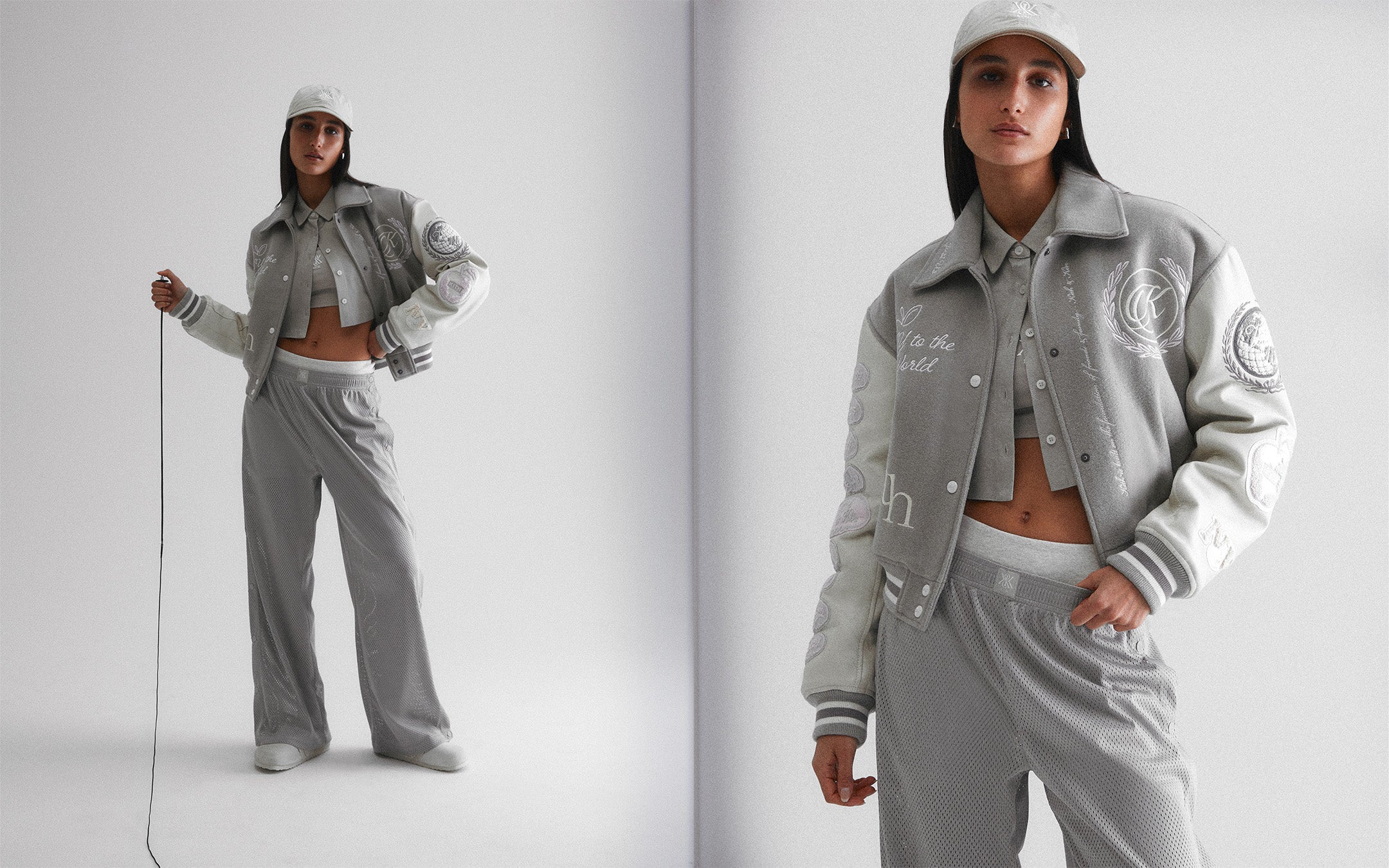 Kith Women continues its Classics program with a range of everyday signatures, now updated with its seasonal pastel palette. A standout falling within the cool-toned palette is the Campbell Cropped Varsity Jacket. This varsity style is crafted from heavy melton wool and features custom Kith-branded chain-stitch patches and embroidery. An additional Classics standout is the Landry Cropped Varsity Bomber, a reversible silhouette constructed from polyester satin that features subtle Kith Script embroidery at the chest. Rounding out the offering is an array of signature tees updated in muted solid hues—like the Mulberry III and Jasper longsleeve. Match them with the relaxed-fit Allyn Mid Rise Cargo and Miles Pants.
