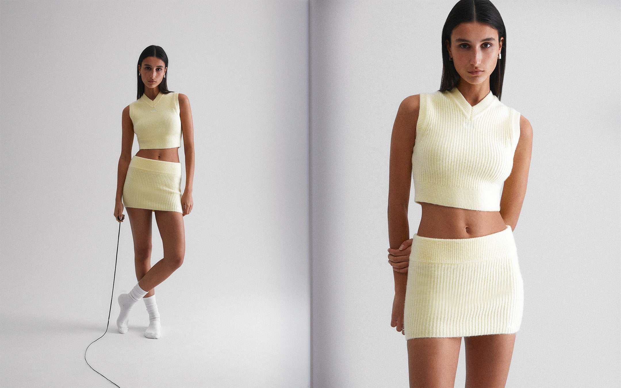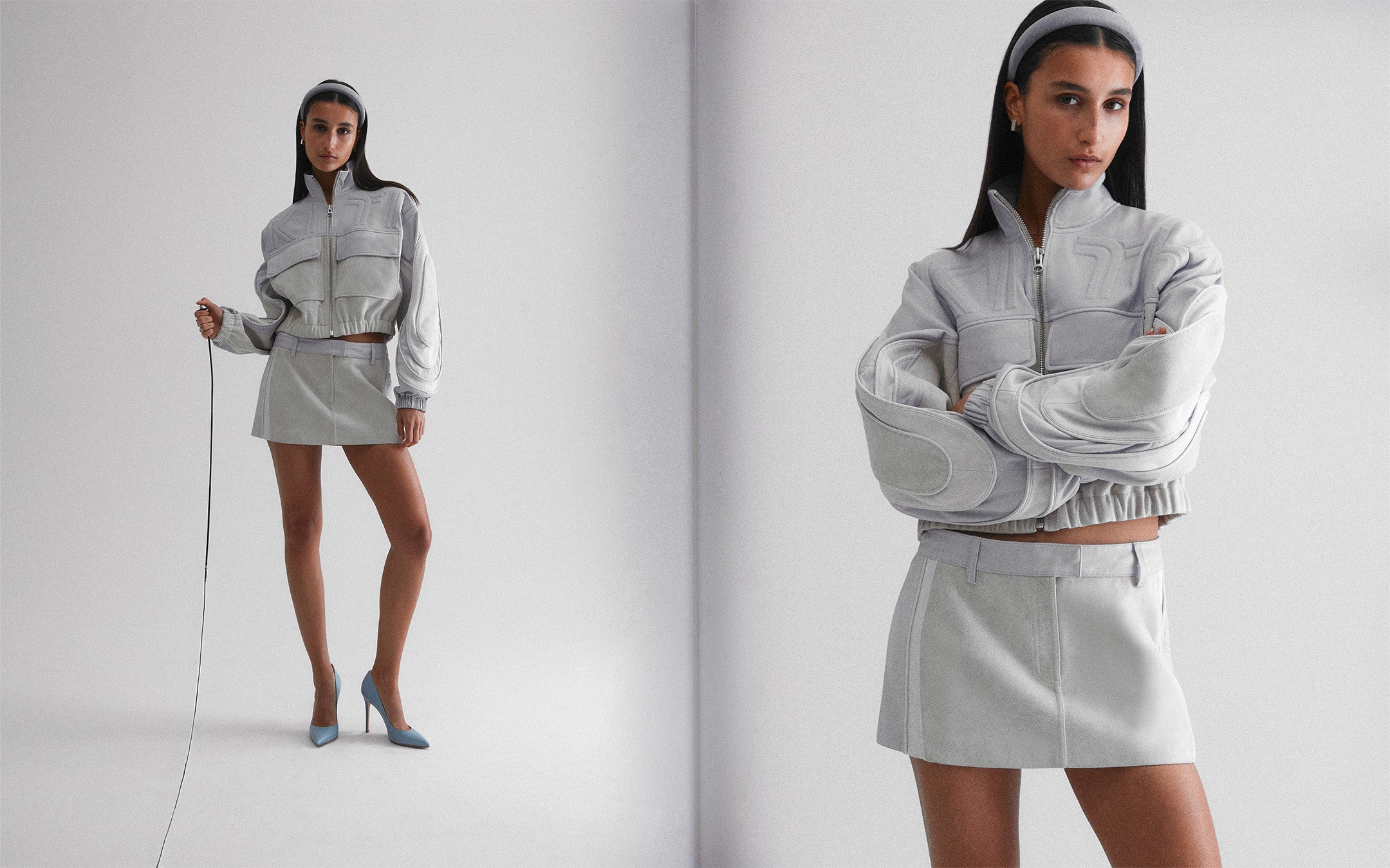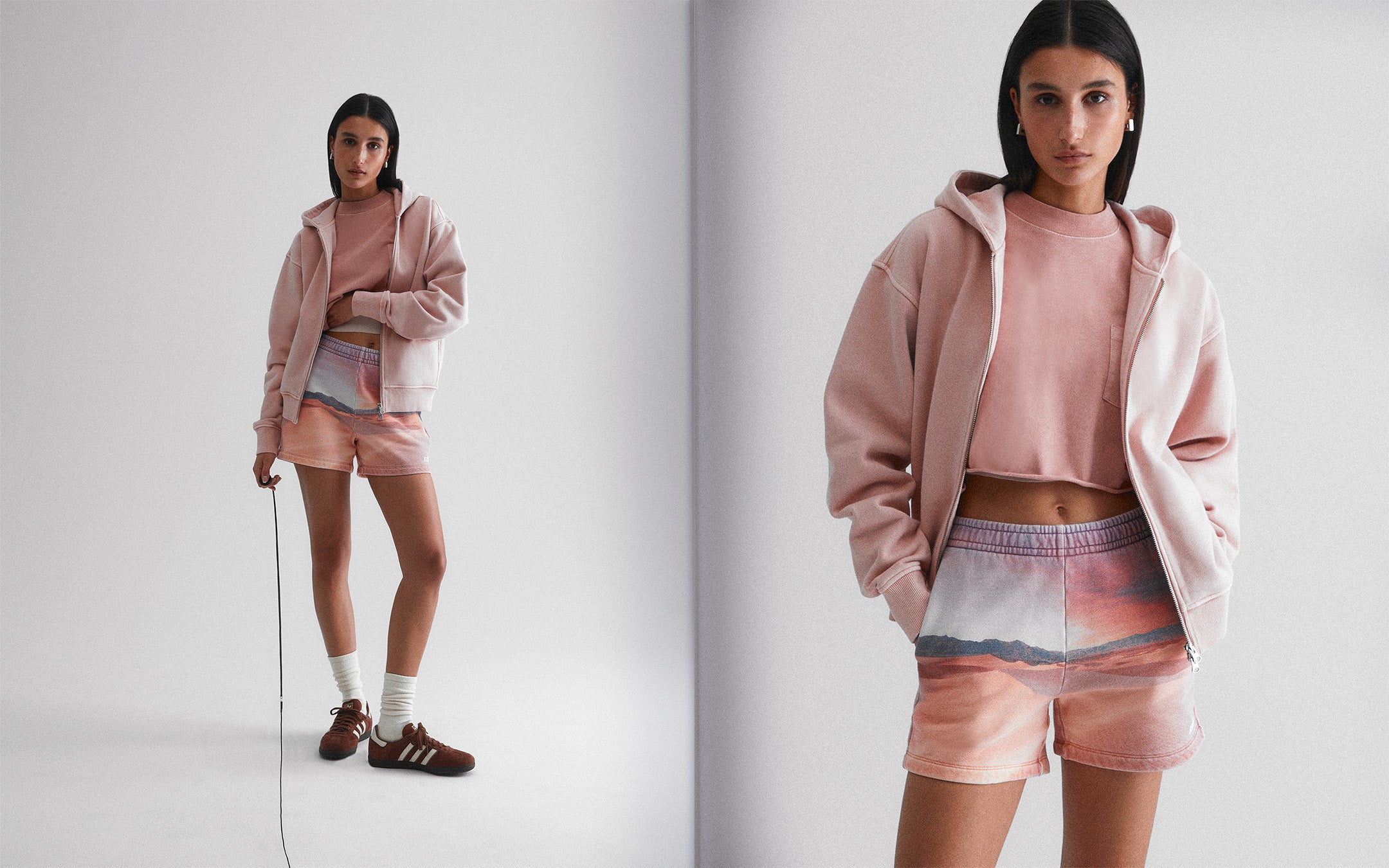 Our seasonal offering consists of transitional outerwear, coordinating sets, and accompanying accessories. The Mei Track Bomber and matching Ren Mini Skirt are standouts this season, crafted from luxe Nappa leather and heavy double-sided suede made from 100% lambskin. The Ridley Tech Longsleeve Top is another highlight from the collection and is inspired by vintage 90s jerseys. The design features a lightweight, breathable fabrication perfect for the spring season ahead—with an oversized sport-fit offered in a bright yellow hue. Rounding out the collection is a small offering of landscape-printed pieces with designs reminiscent of bright blue skies and warm, pink sunsets across the desert.