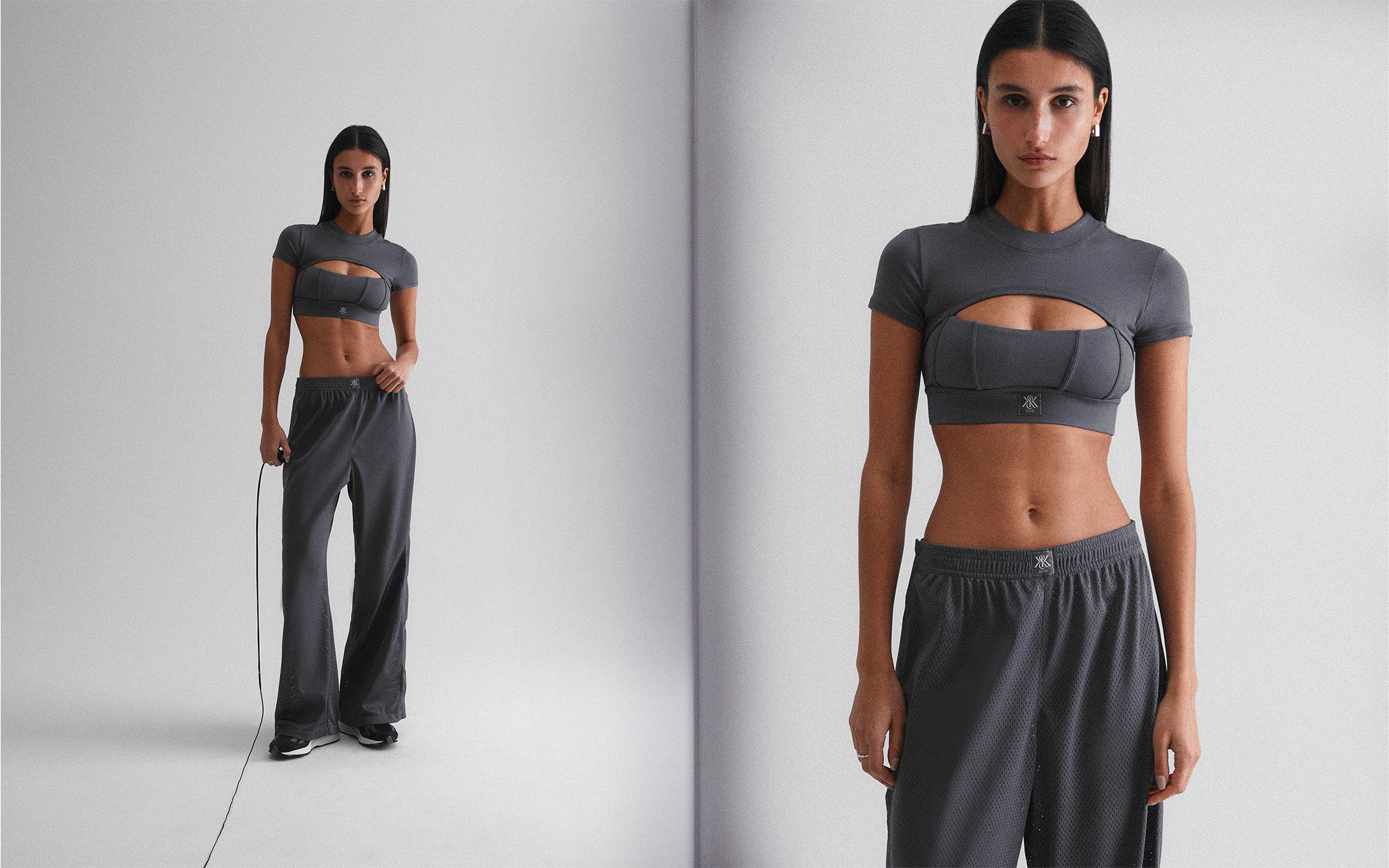 Spring Active styles embrace utility with a fashion-forward twist. A new peached interlock fabrication has been introduced this season. Seen on a range of form-fitting tops and shorts, this fabric is made to feel like a second skin for maximum comfort. The collection is complete with nylon caps and relaxed styles like the Nuru Sheer Parachute Pant and Ripley Mesh Tearaway Pant.