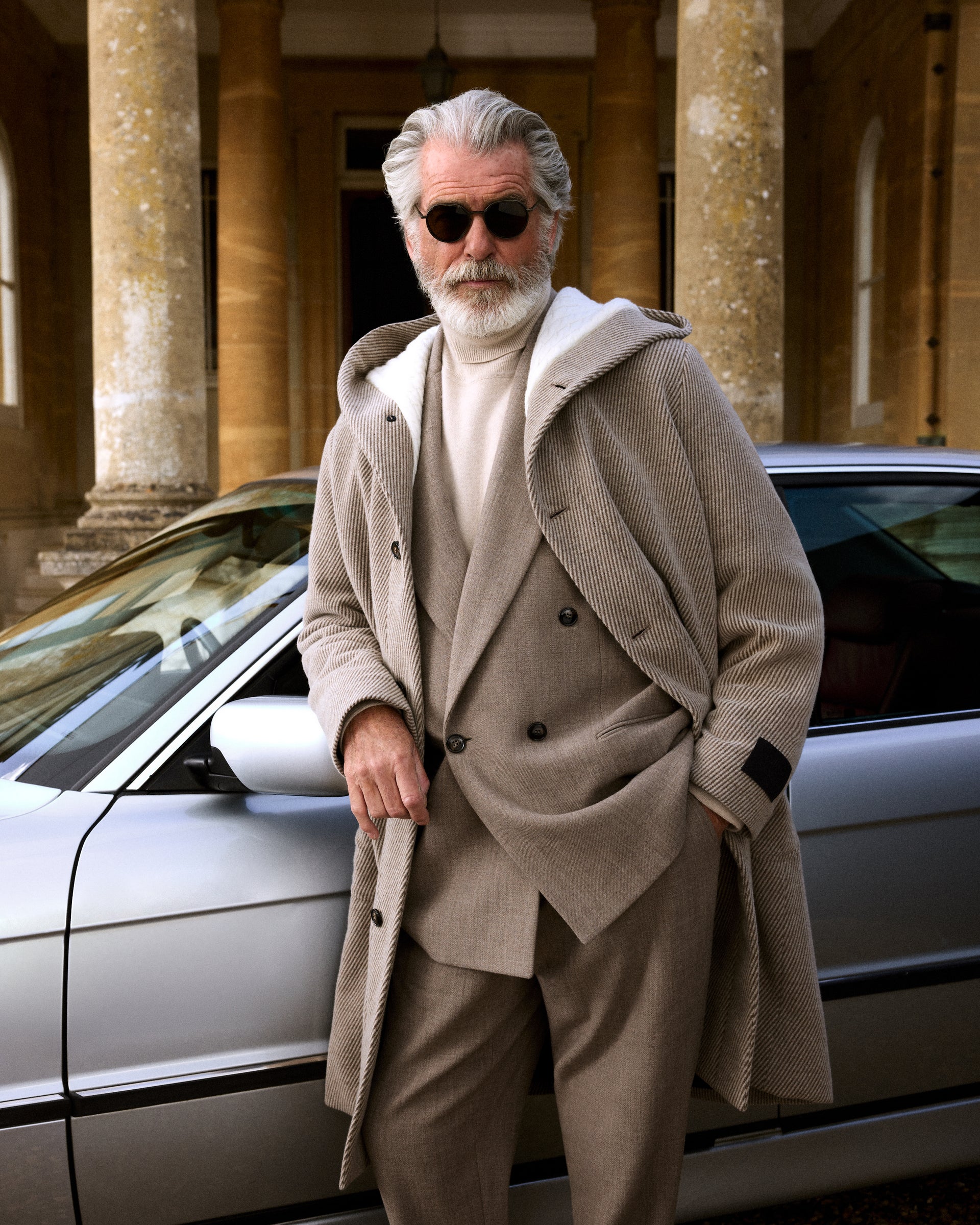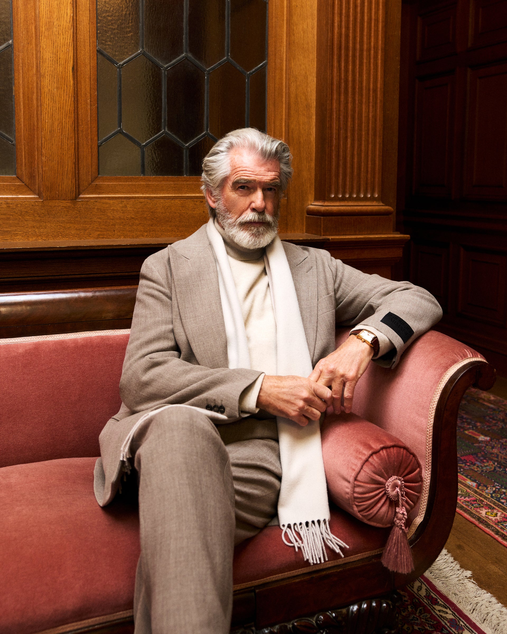 As one of cinema’s most iconic actors, Mr. Brosnan’s roles in film have taken him around the world, embodying characters who navigate diverse cultures and landscapes with sophistication and charm. Pierce is also globally recognized for his penchant for wearing suits. For these reasons and more, he was the ideal choice to portray “The Traveler”.