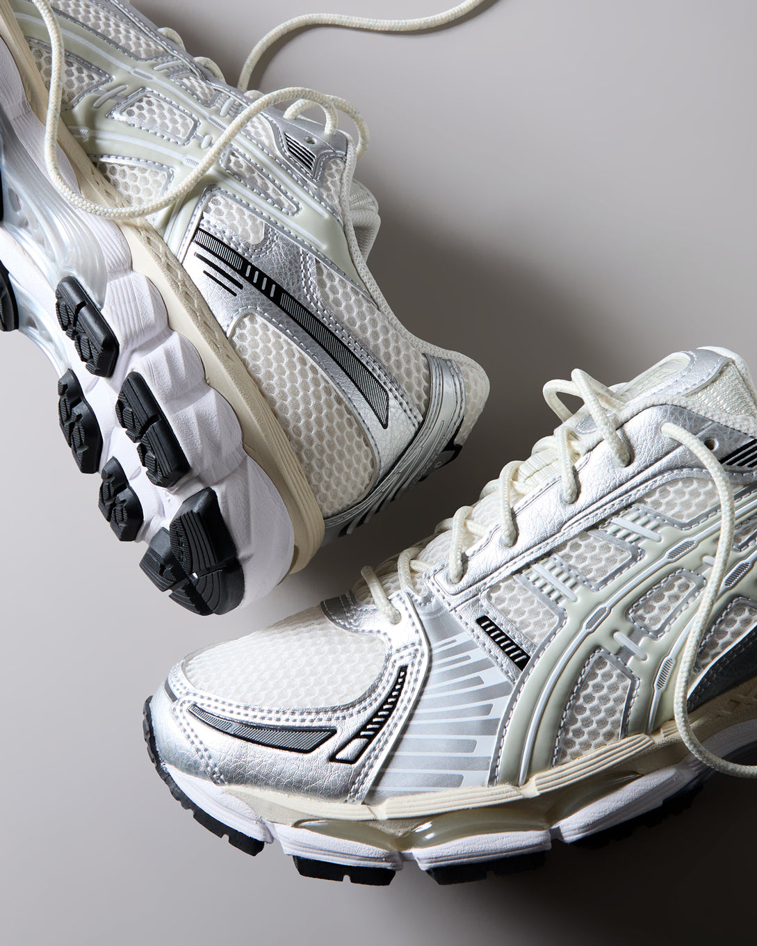 The Ronnie Fieg for ASICS GEL-KAYANO 12.1 is a distinct style that combines the KAYANO 12 upper with the NIMBUS 17 outsole. The GEL-KAYANO 12 is a timeless style designed by the visionary Toshikazu Kayano, while the GEL-NIMBUS 17 is a performance-driven style designed for long-distance marathon running.