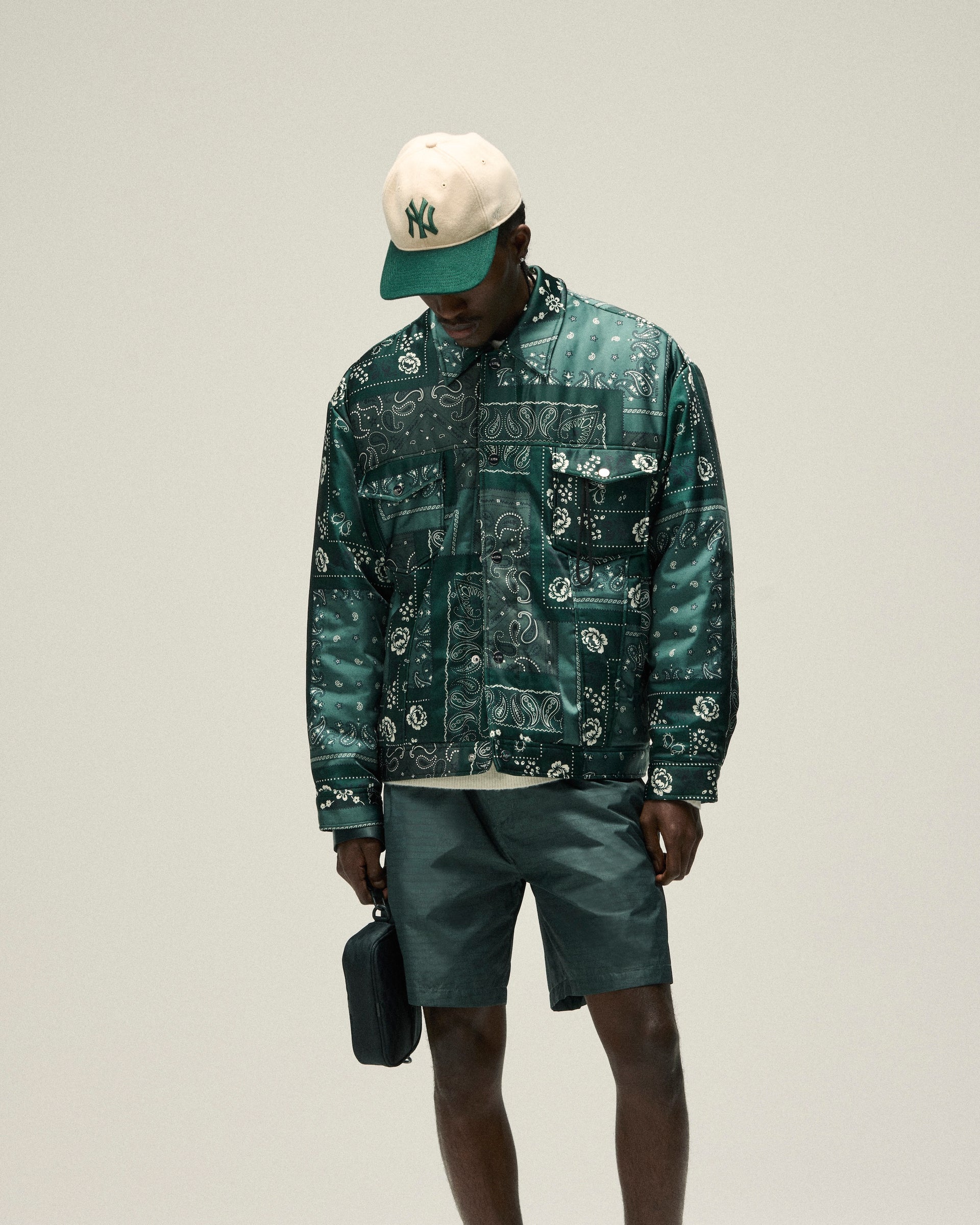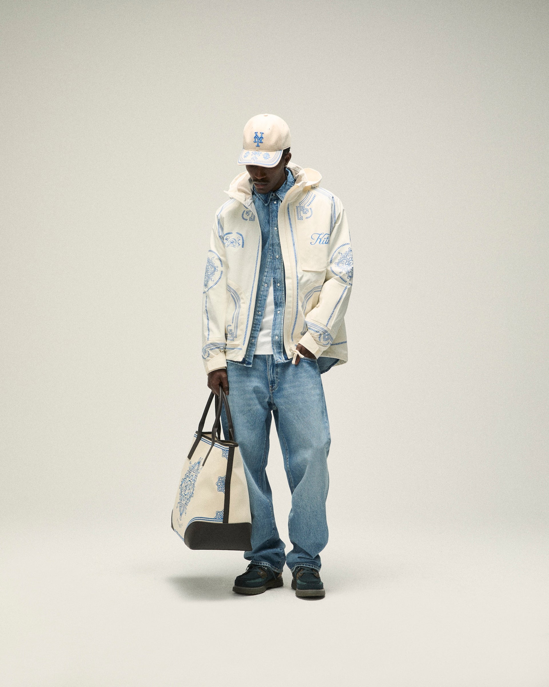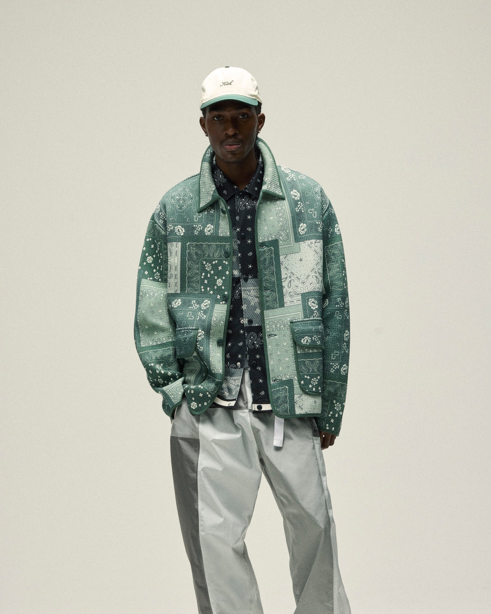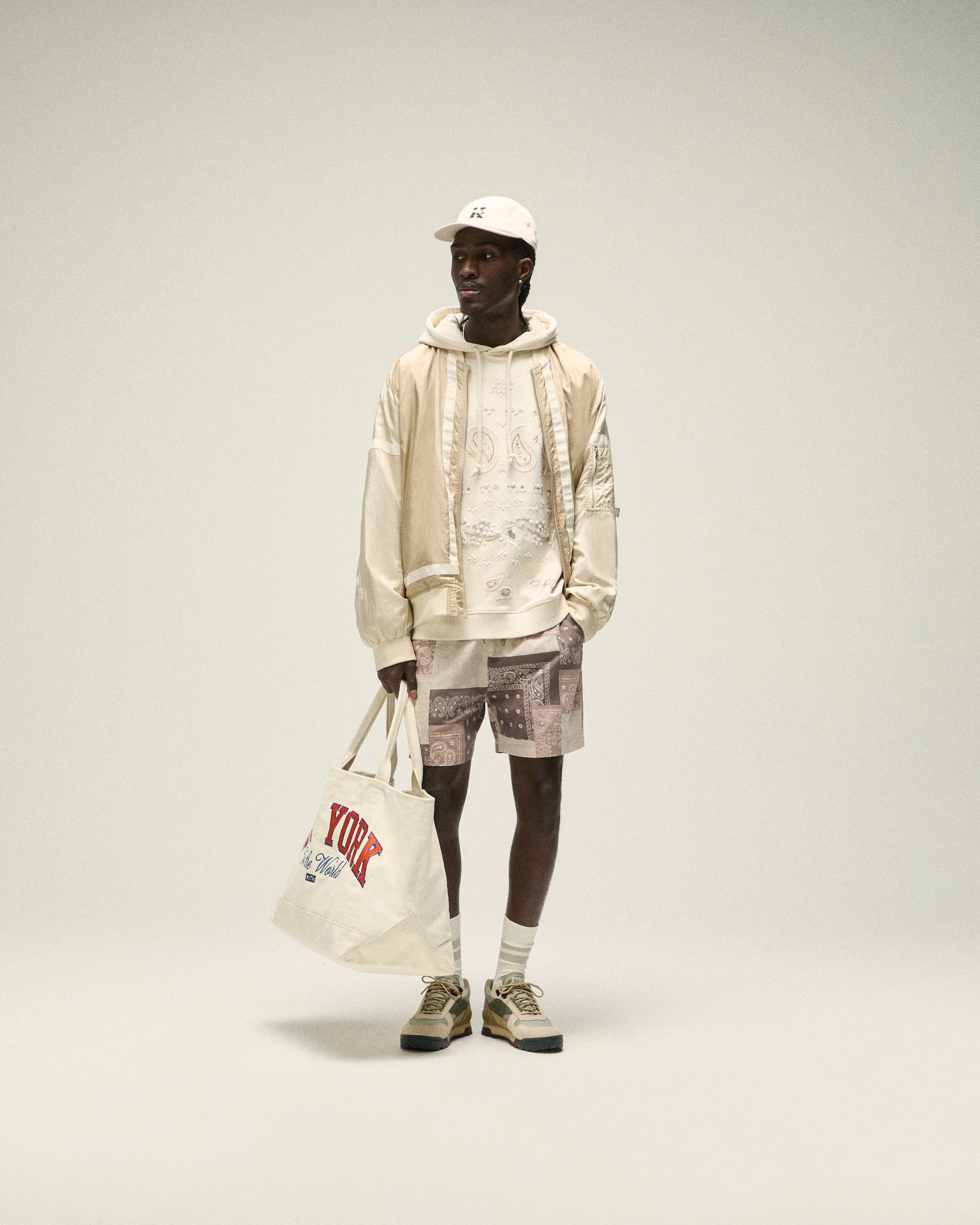 Accessories from Kith Spring 2025 are defined by seasonal headwear and complementary bags. Discover signature styles like the Griffey Camper Hat & Aaron Cap alongside a wide range of headwear made in partnership with ‘47 that feature all-new Kith branding. Bags include the Monogram duffle bag & utility pouches, custom paisley-print crossbody’s and canvas totes with new Kith branding and collaborative New York Knicks designs. Completing the assortment is an array of paisley-printed scarves & bandanas alongside knit socks.