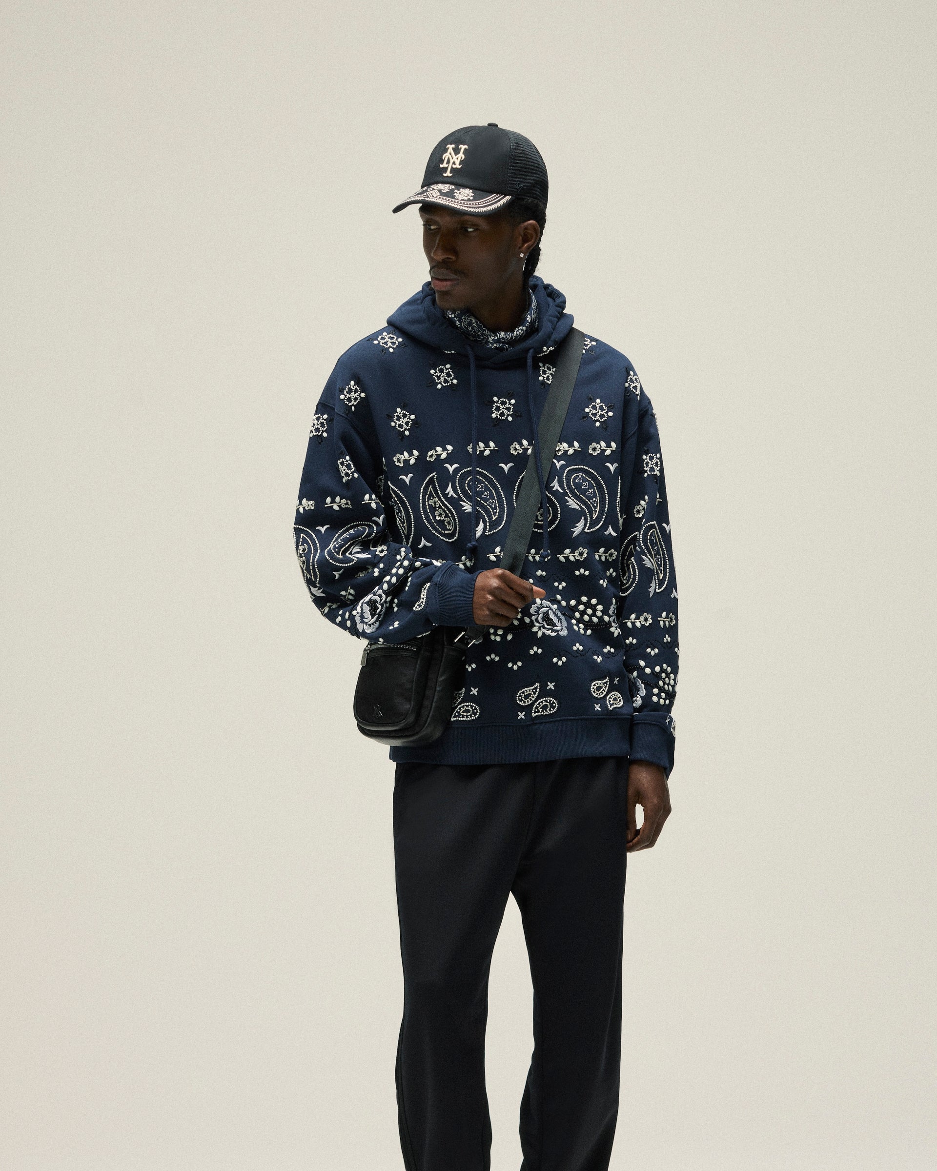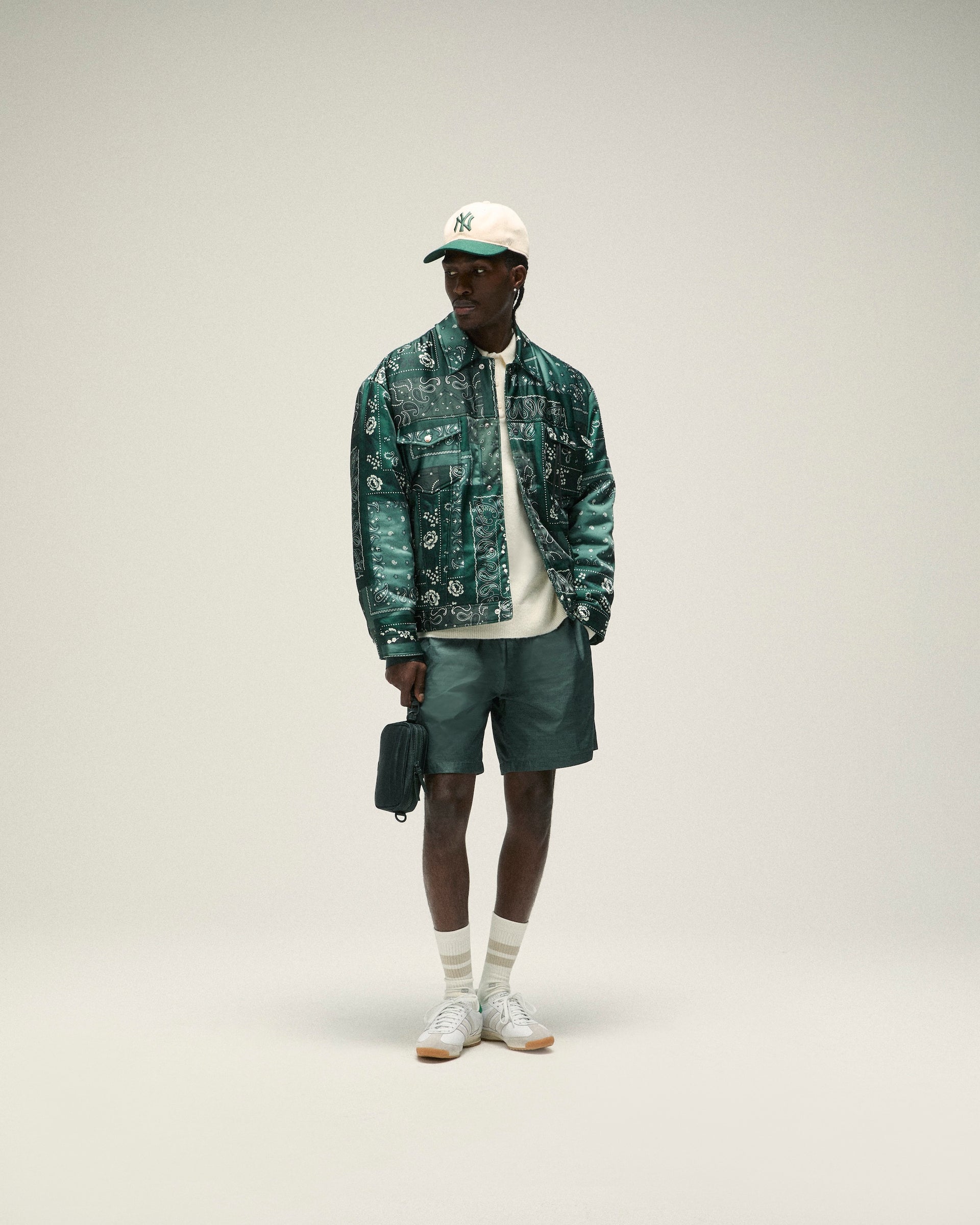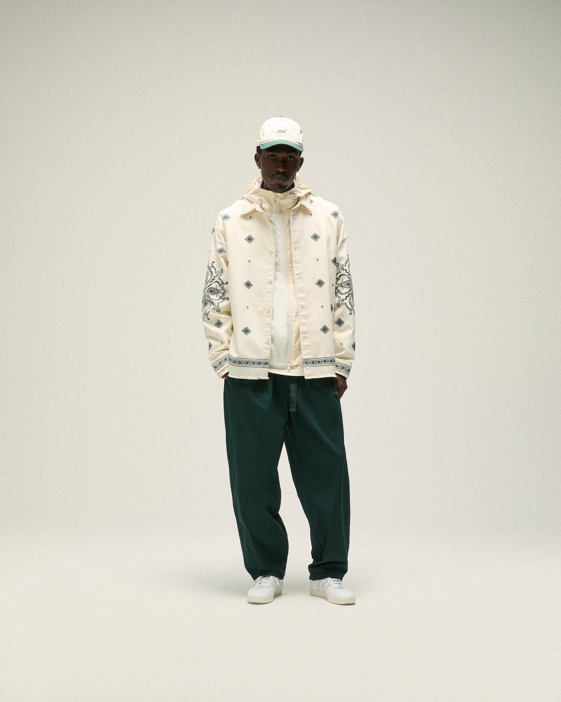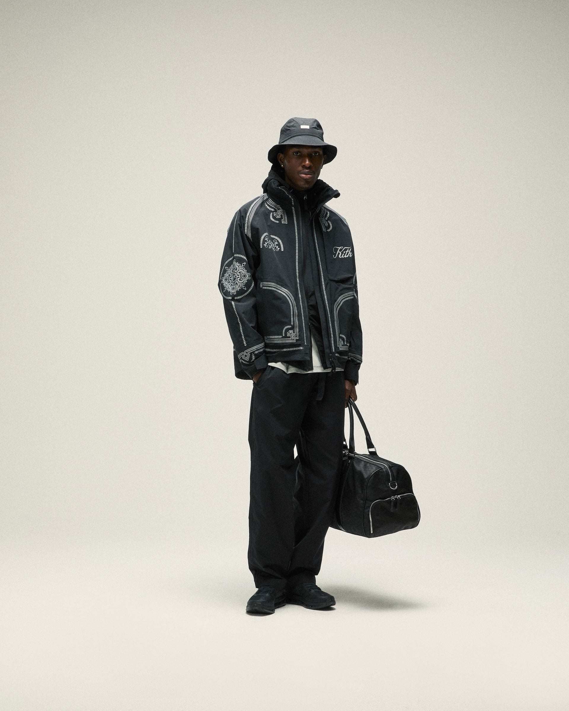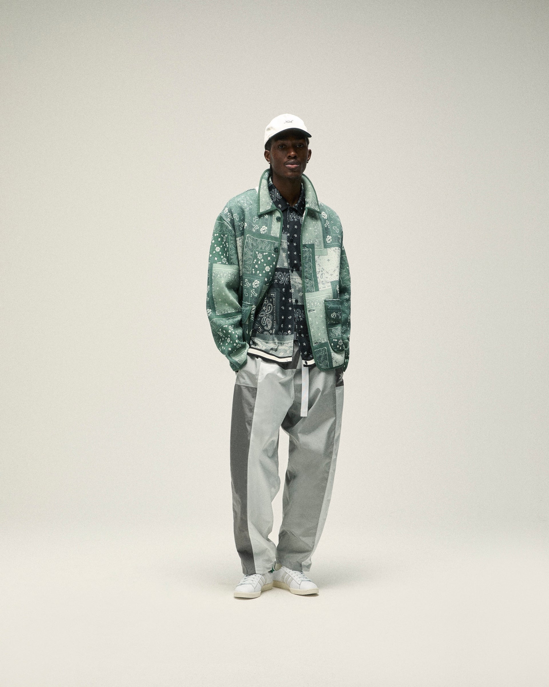Accessories from Kith Spring 2025 are defined by seasonal headwear and complementary bags. Discover signature styles like the Griffey Camper Hat & Aaron Cap alongside a wide range of headwear made in partnership with ‘47 that feature all-new Kith branding. Bags include the Monogram duffle bag & utility pouches, custom paisley-print crossbody’s and canvas totes with new Kith branding and collaborative New York Knicks designs. Completing the assortment is an array of paisley-printed scarves & bandanas alongside knit socks.
