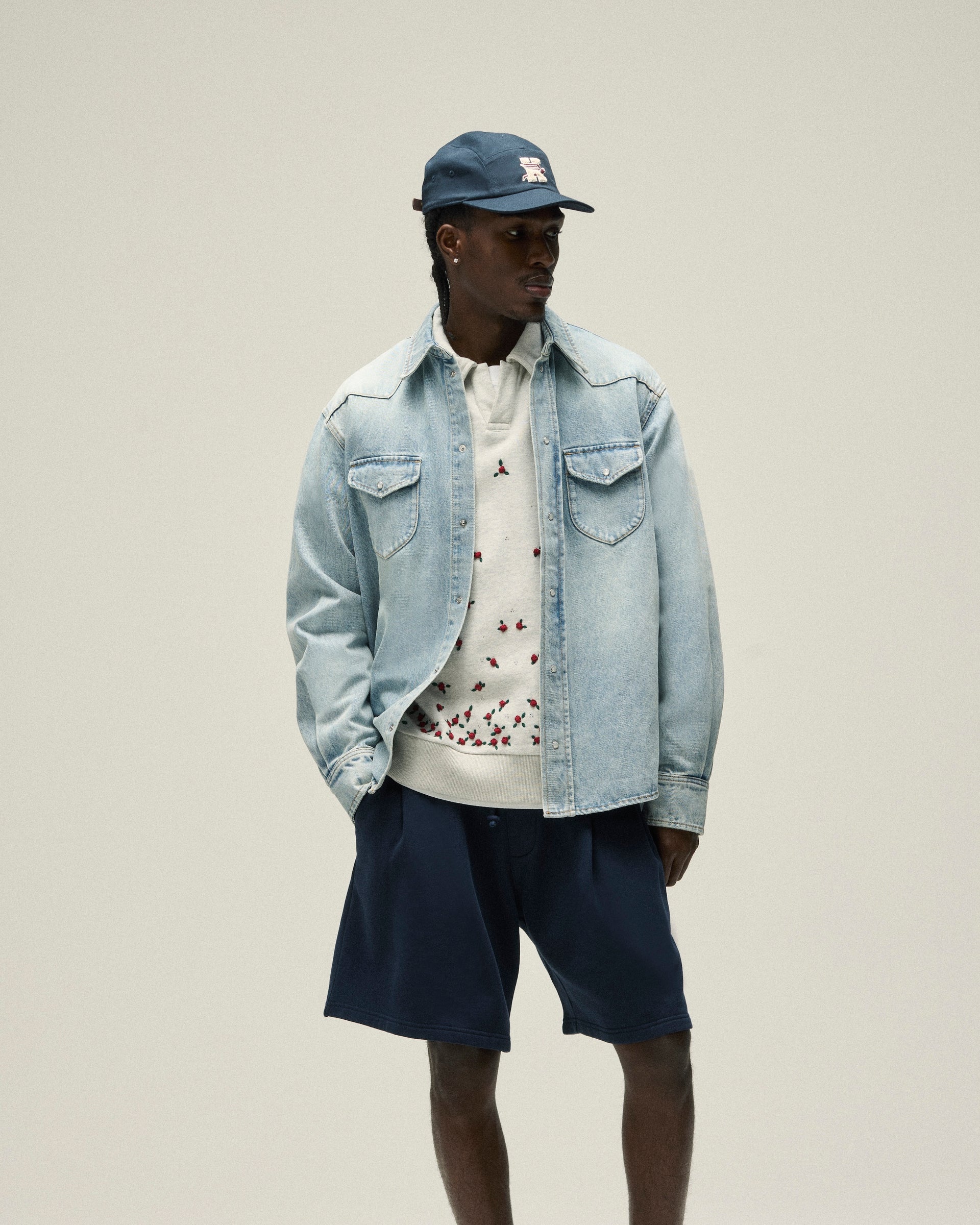 Spring 2025 offers an elevated take on denim—debuting the Webster Denim Shirt and redesigning the signature Raw Hem Denim Apollo Shirt. The indigo-washed Webster updates a more traditional shirting style while the Apollo highlights all-over Western-inspired embroidery. The Webster Shirt is designed to be paired with its coordinating straight-leg jeans.