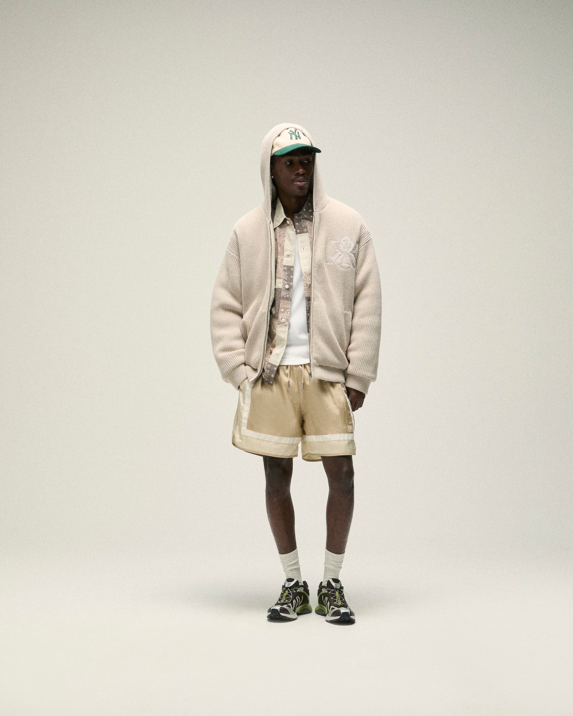 Spring 2025 also continues the brands’ Classics offering—featuring transitional outerwear, shirting, loungewear and more alongside an assortment of seasonal accessories. Spring Classics are executed in hues from the Kith Spring 2025 Palette. Discover more headwear designed in collaboration with ‘47 alongside signature Kith caps executed in premium corduroy, cotton, nylon and polyester.