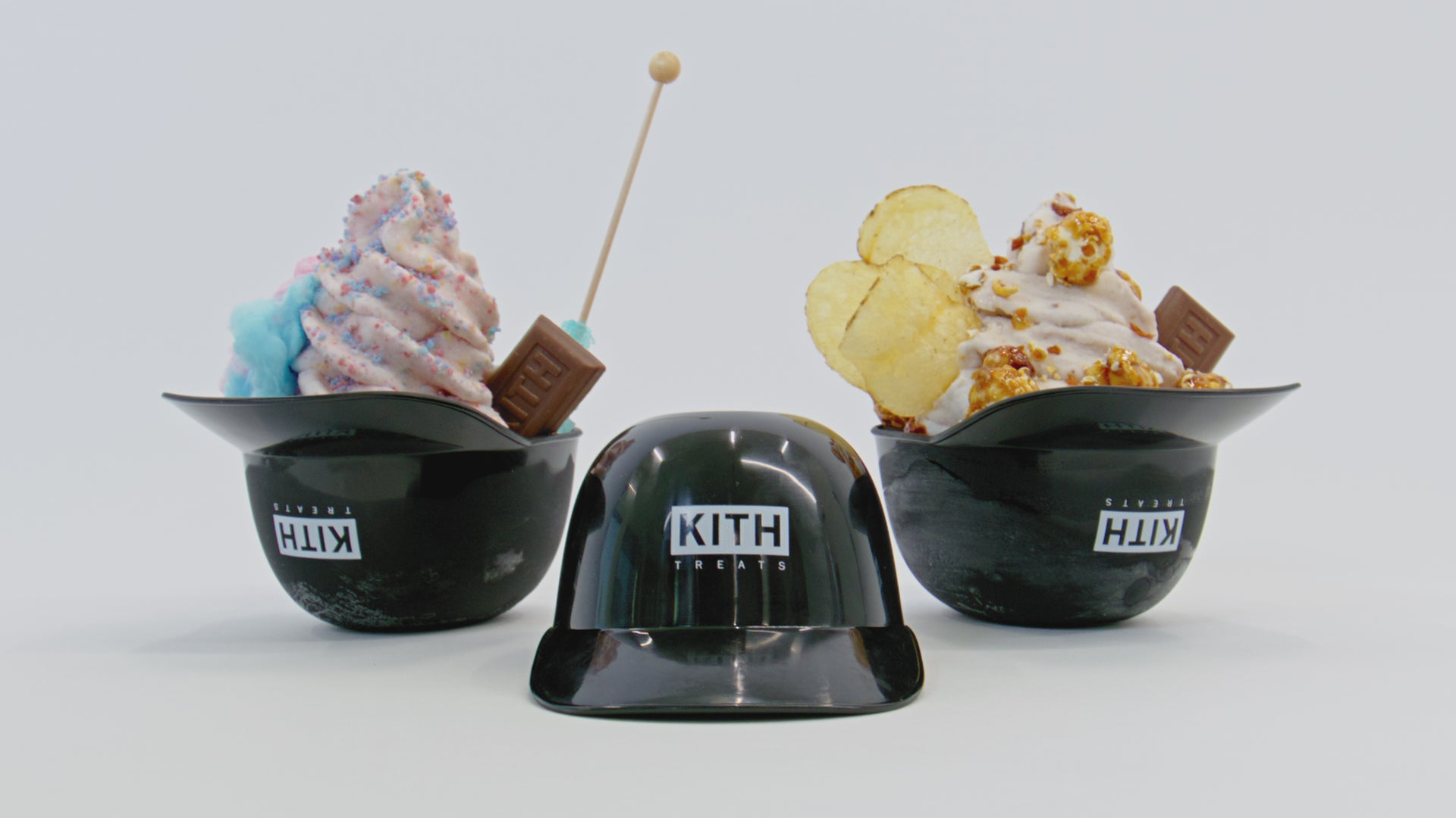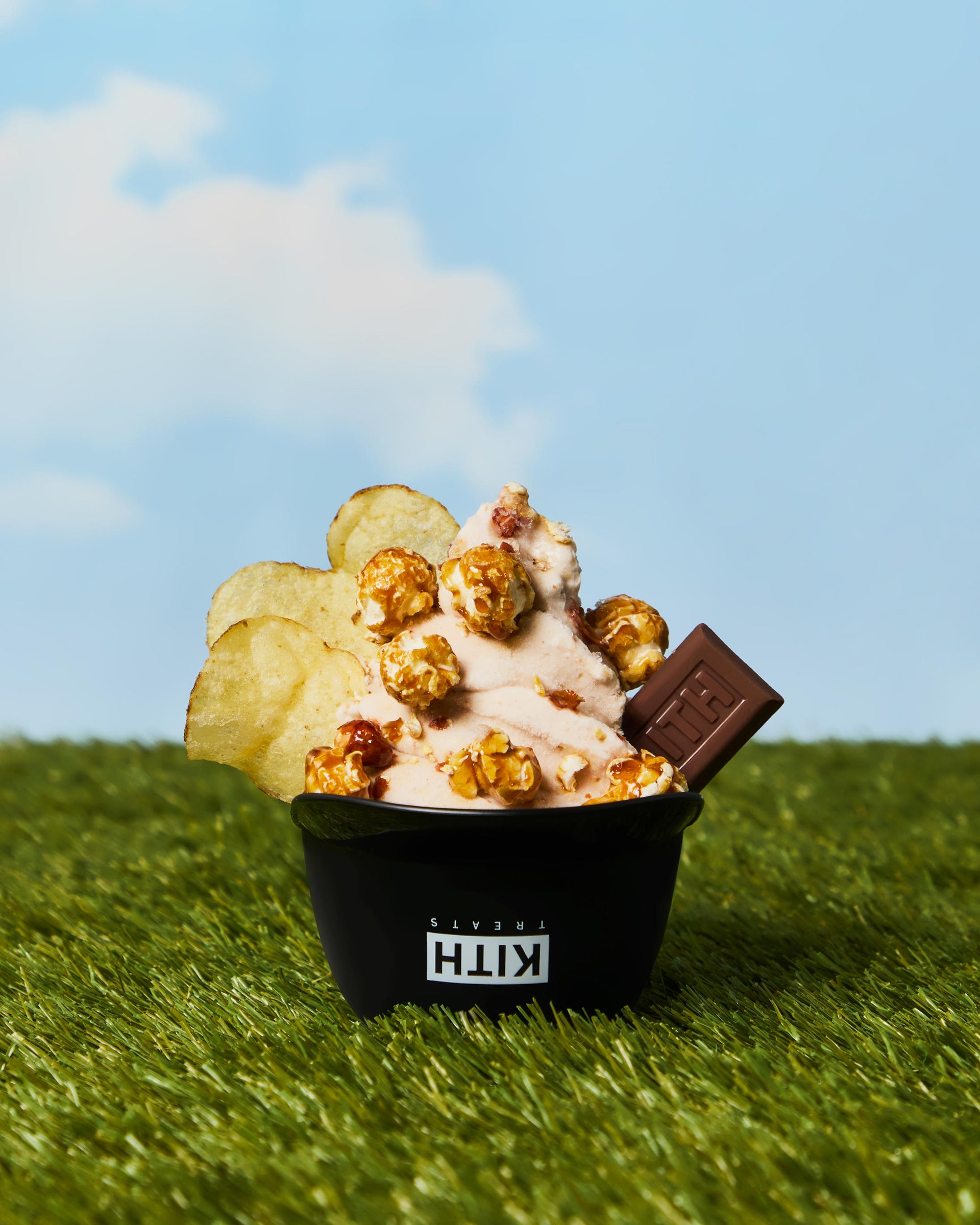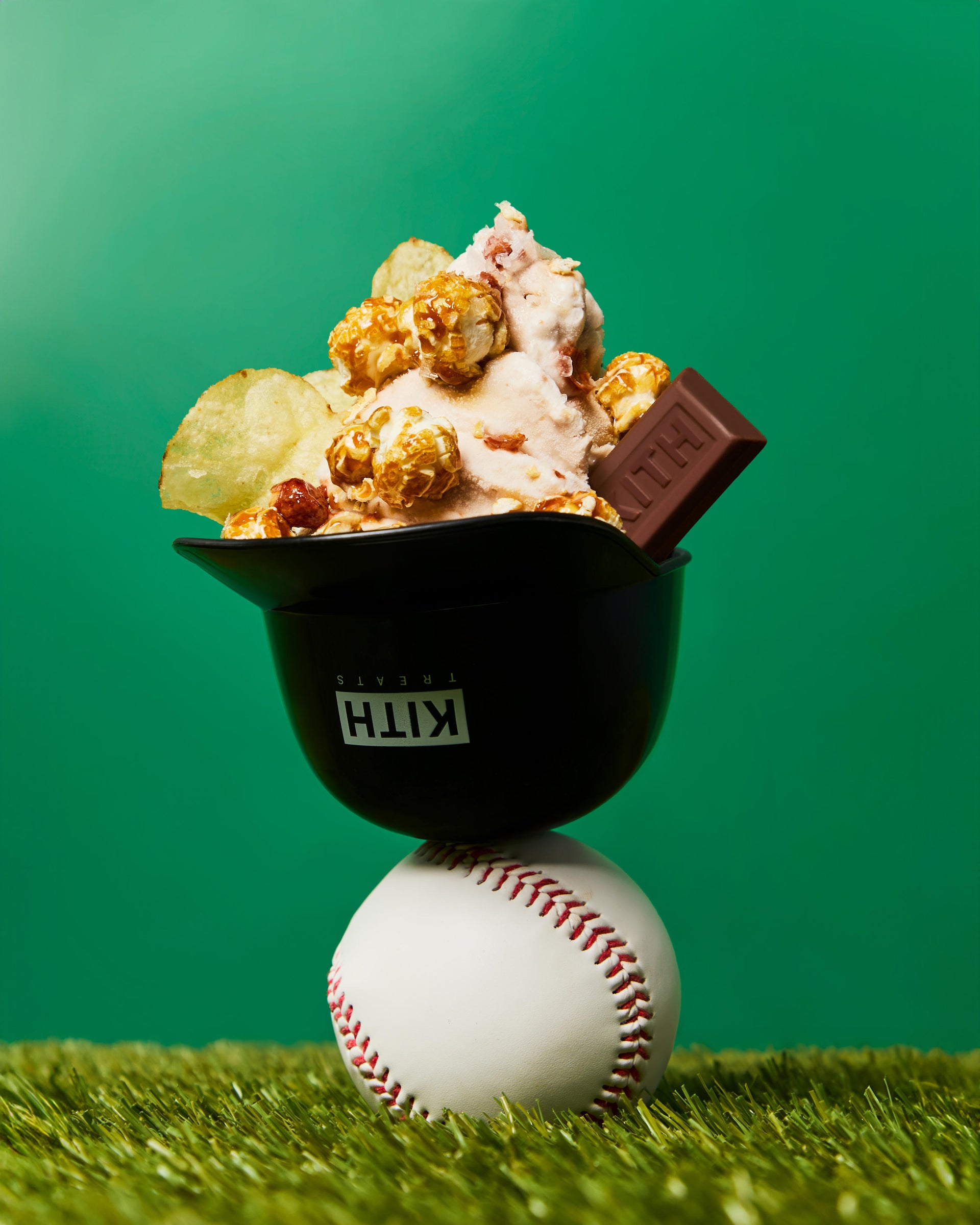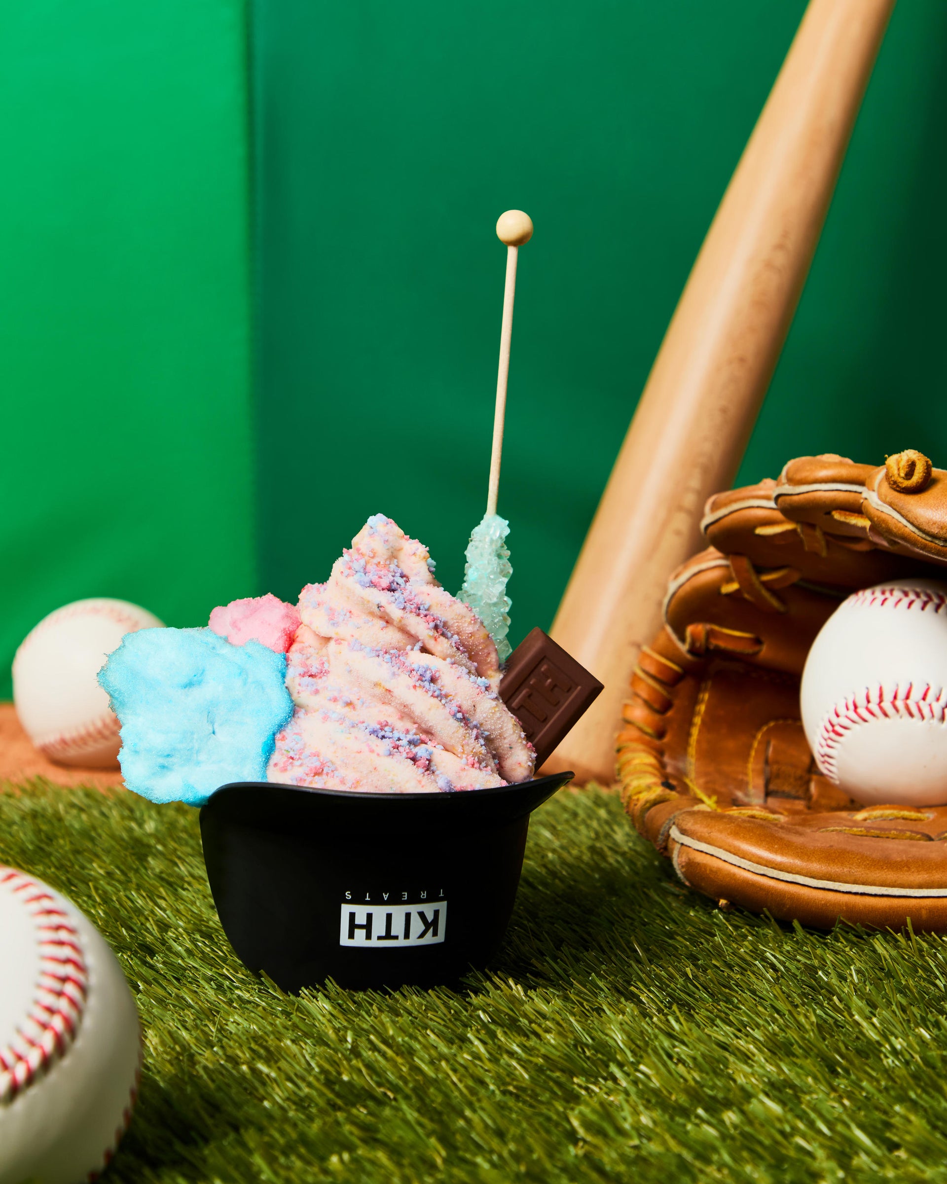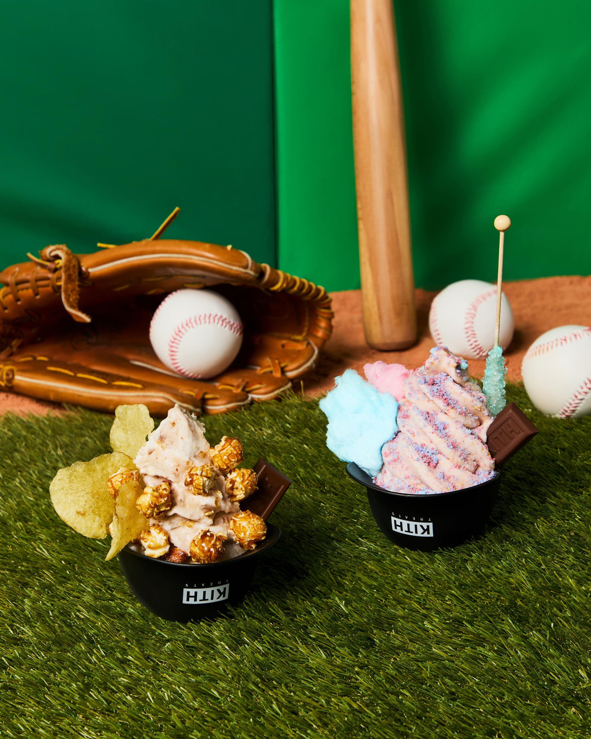 Alongside the release of Treats Champions, Kith Treats has crafted a limited-time menu of ice cream specials showcasing the classic sweet and salty flavor profiles of fan-favorite stadium concessions. Each special is served in a limited edition helmet cup, as a nod to the collectible novelty found at major league sporting events.