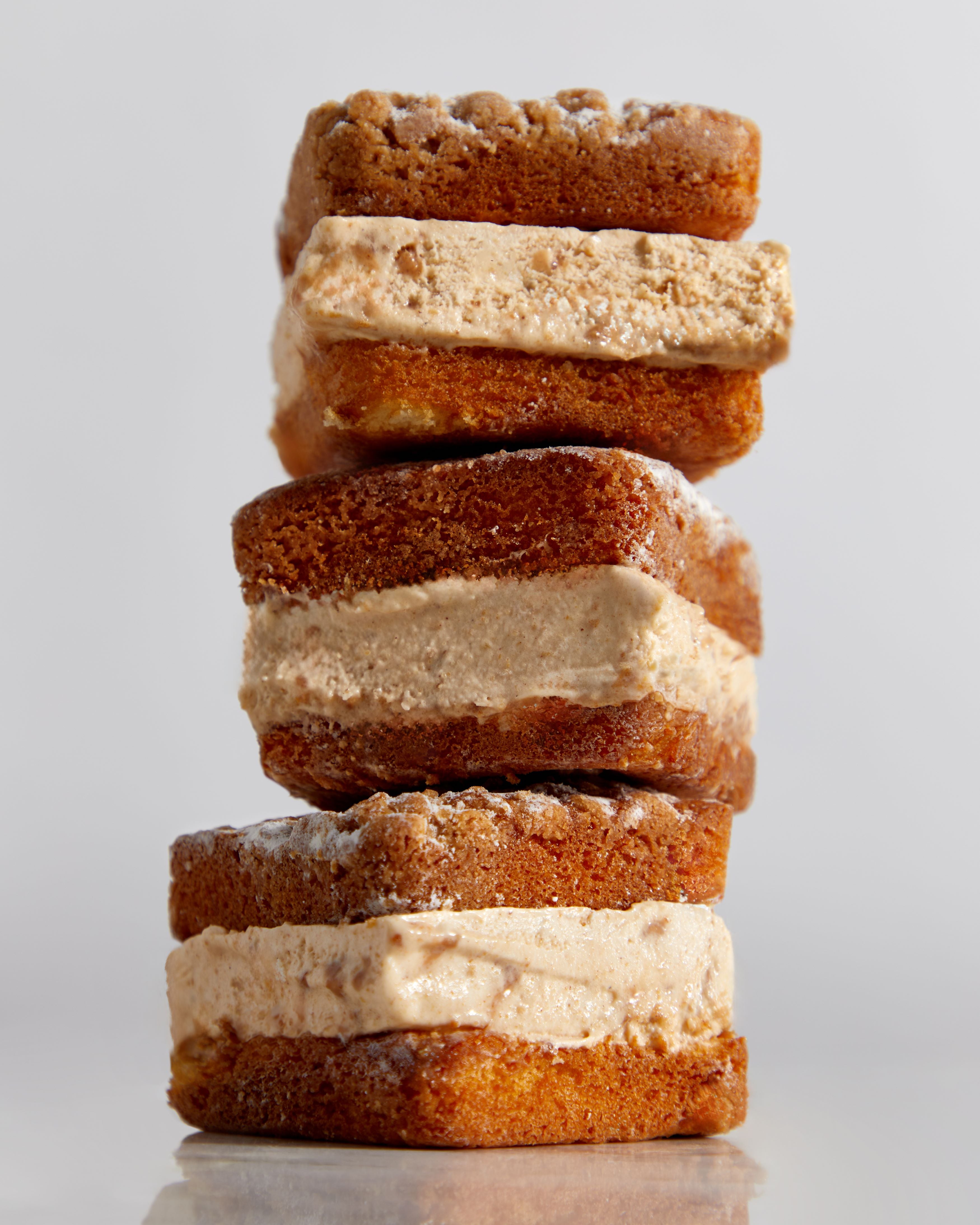 Vanilla ice cream infused with Frozen Cold Brew, Coffee Cake and Toffee Crunch, sandwiched between two slices of Coffee Cake.