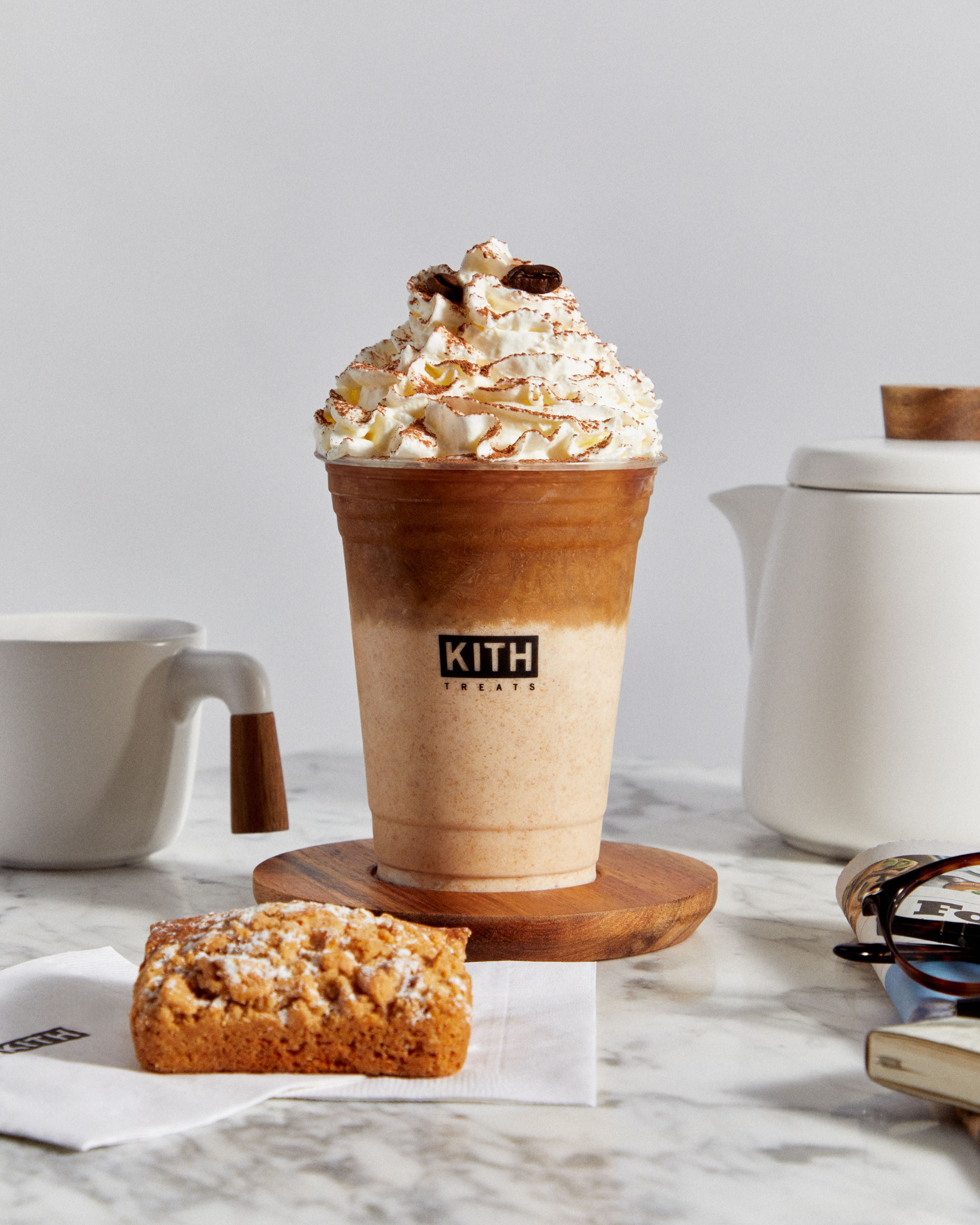 Influenced by beloved frozen coffee confections and their accompanying desserts, the Treats Coffee limited time offerings see Kith Treats’ signature vanilla ice cream infused with Frozen Cold Brew Coffee, Coffee Cake & Toffee Crunch, topped with Mocha Powder dust and finished with a fresh espresso bean garnish. The Java and The Java Chiller will be served alongside a limited-edition coffee cake ice cream sandwich.