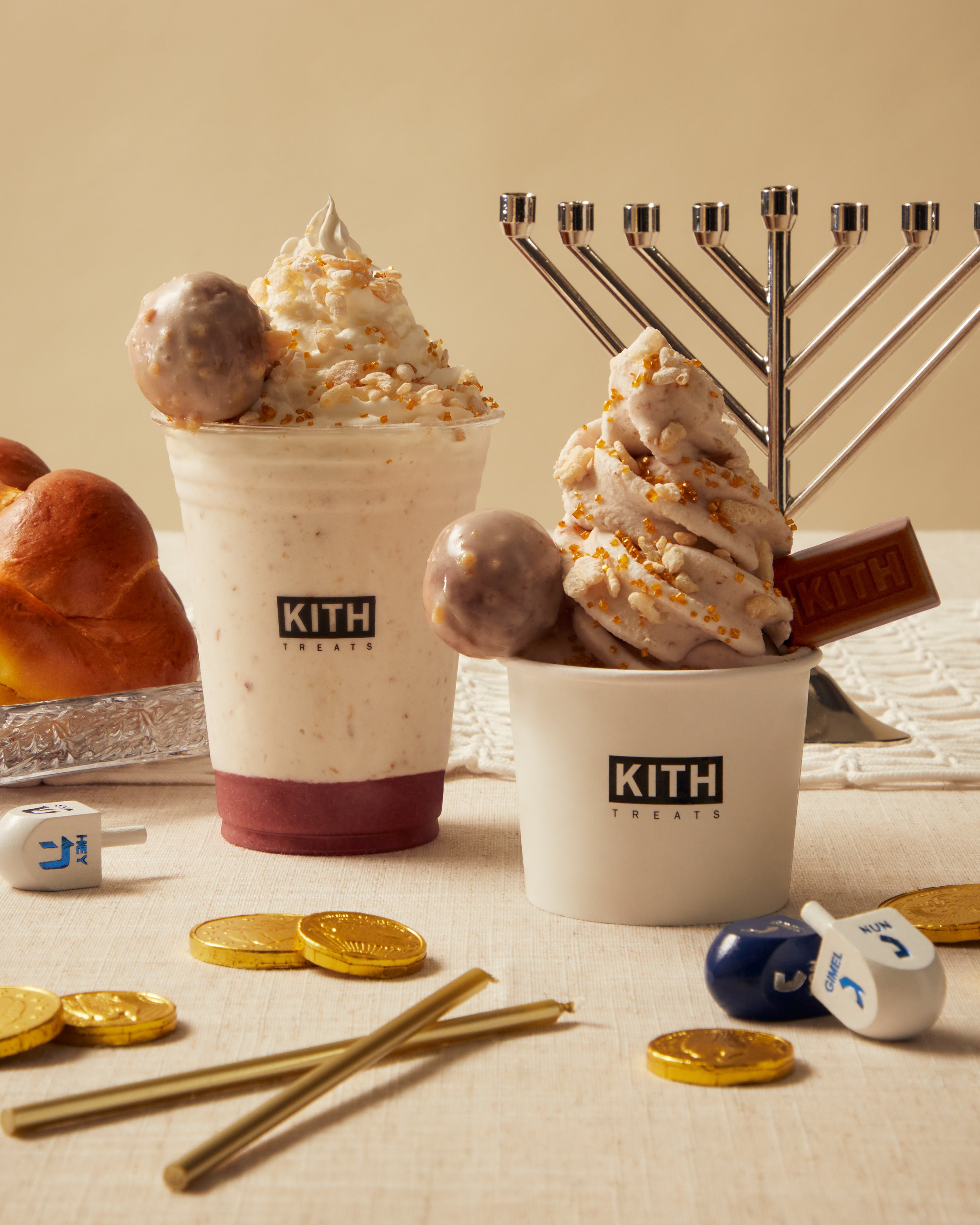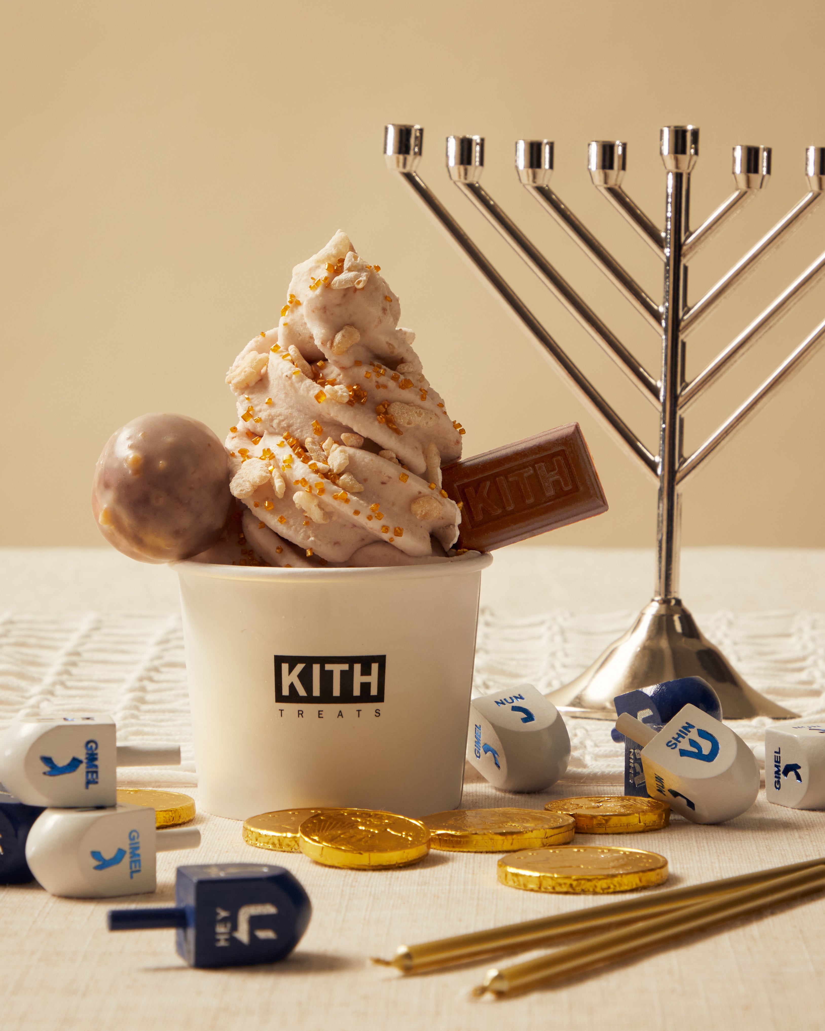 Treats Hanukkah releases Monday, 12/4 at 11AM EST/CET at all Kith Treats locations worldwide, Kith.com, CA.Kith.com, EU.Kith.com & the Kith App. The 8th Night is available now exclusively at US Kith Treats locations through 12/7.