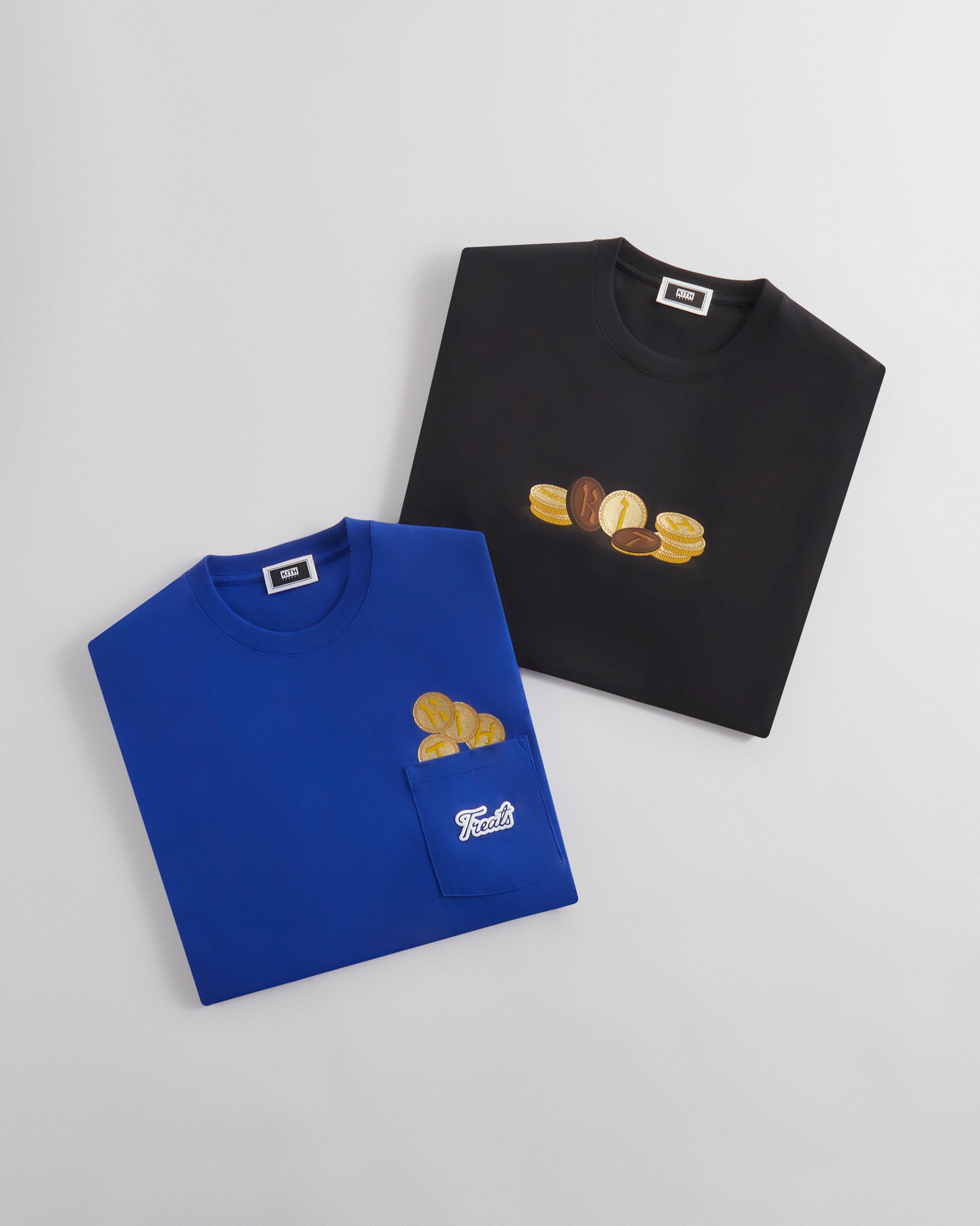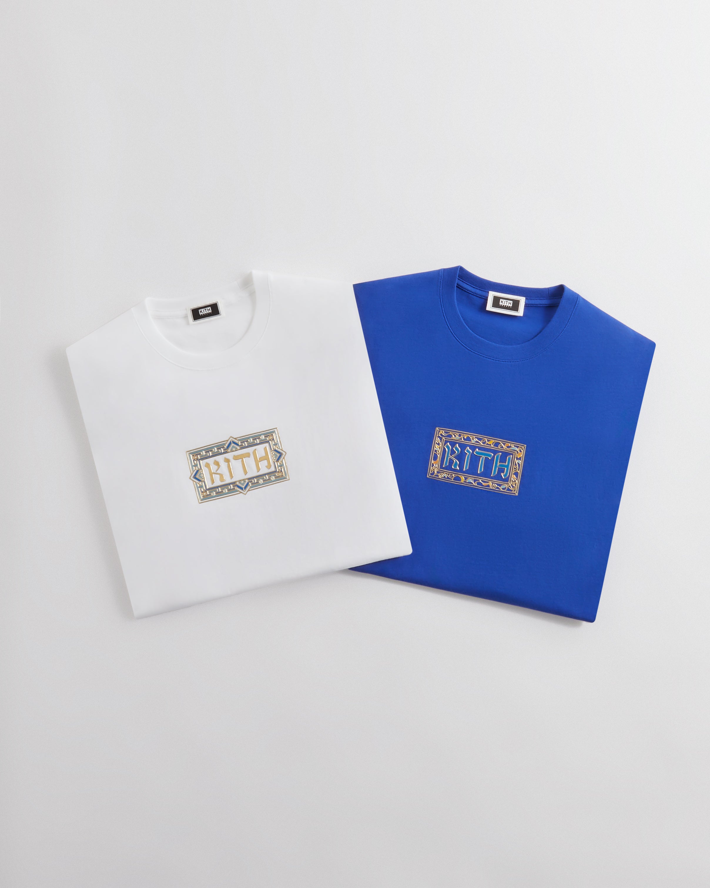 At the core of the collection is a nine-piece apparel offering of heavyweight silhouettes and vintage-washed cotton tees adorned with Judaic-inspired motifs, Kith wordmarks and classic Hanukkah iconography. The Treats Hanukkah collection also includes takedown designs in select styles—most notably the Gelt Coins graphic on two vintage tees for kids and a onesie for baby. All pieces arrive in Kith Treats' signature cereal box-inspired packaging with a build-your-own dreidel on the back.