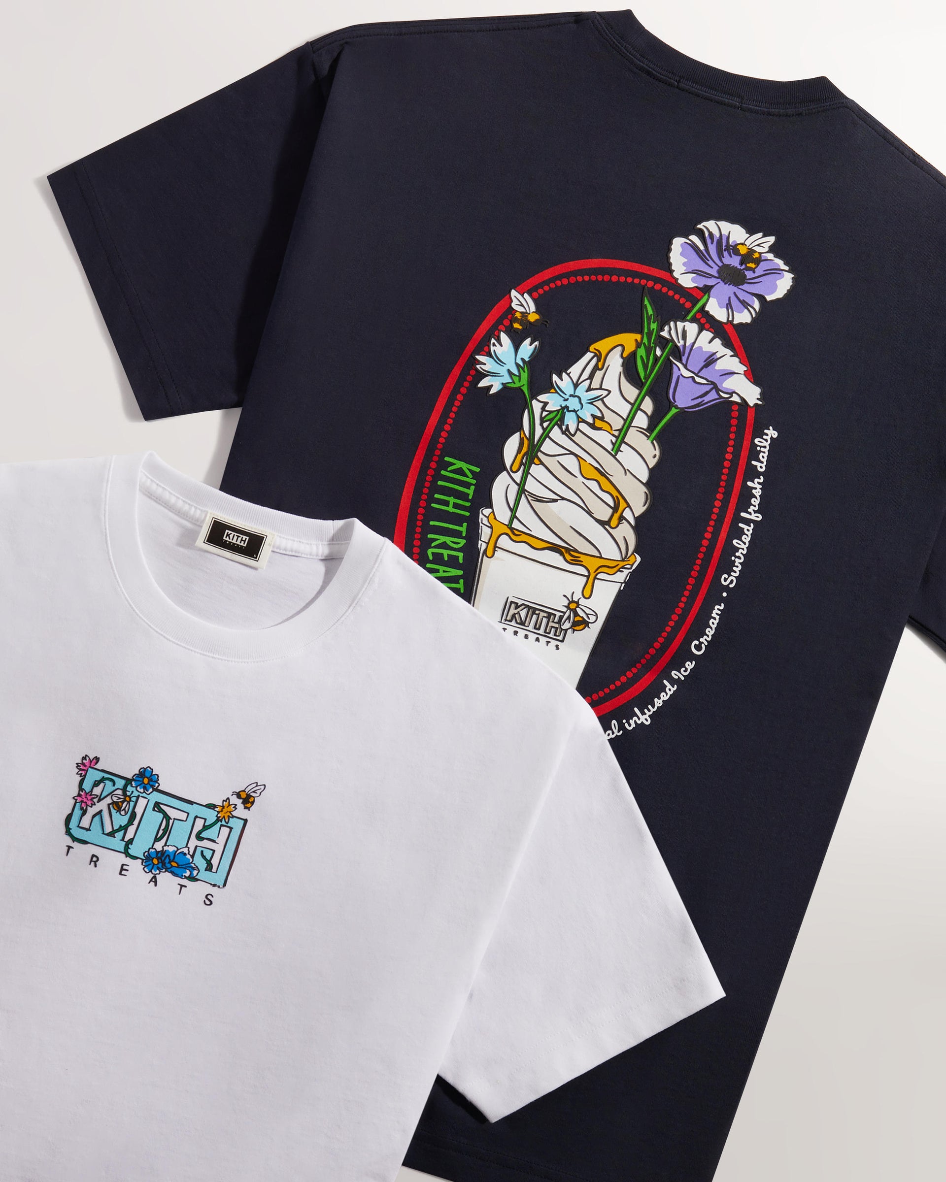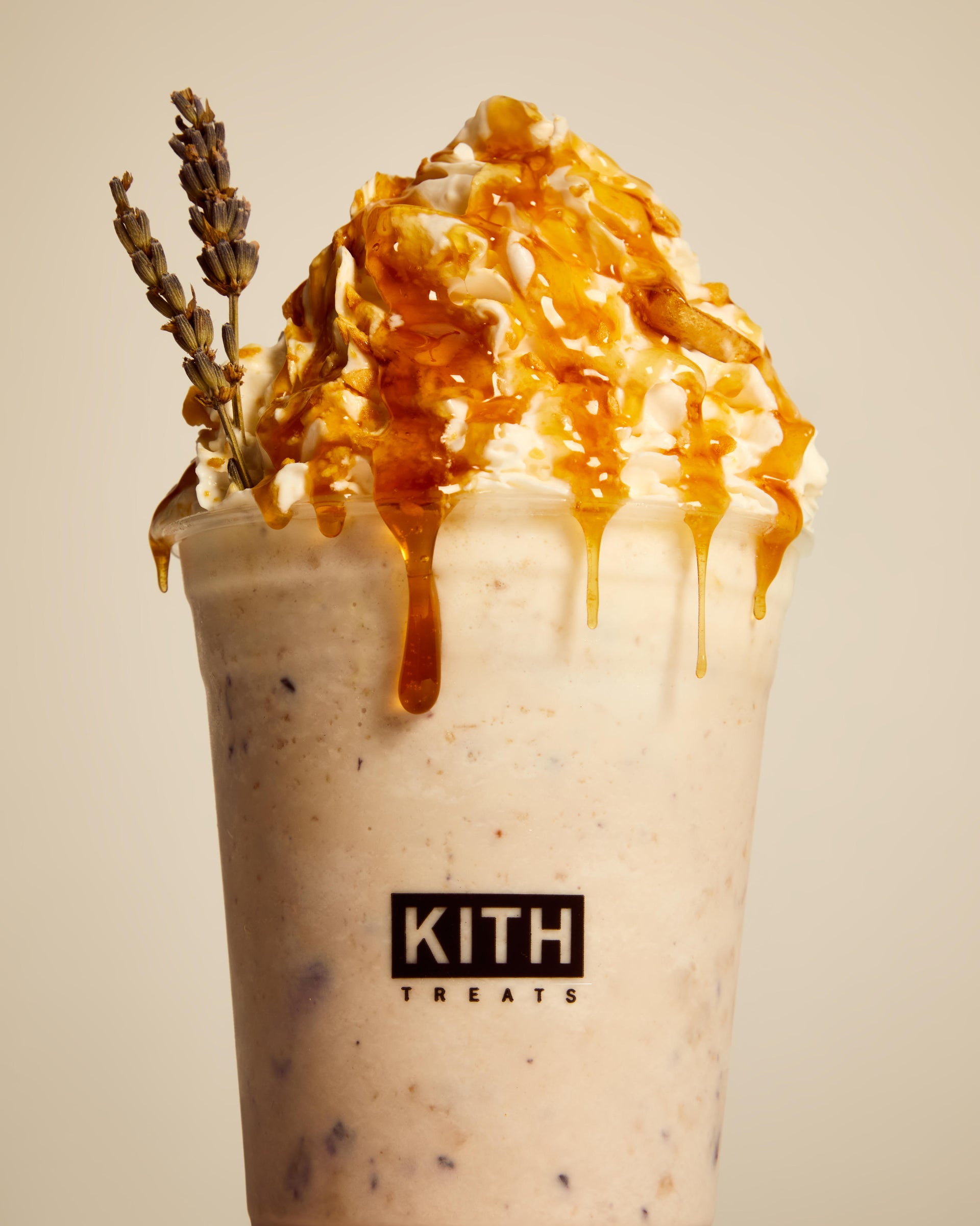 Alongside the release of Treats Honey II, Kith Treats has crafted a limited-time offering inspired by the capsule’s illustrative graphics. This fragrant, springtime dessert is infused with flavors of vanilla, lavender, blueberry & honey, creating a rich yet refreshing taste profile.