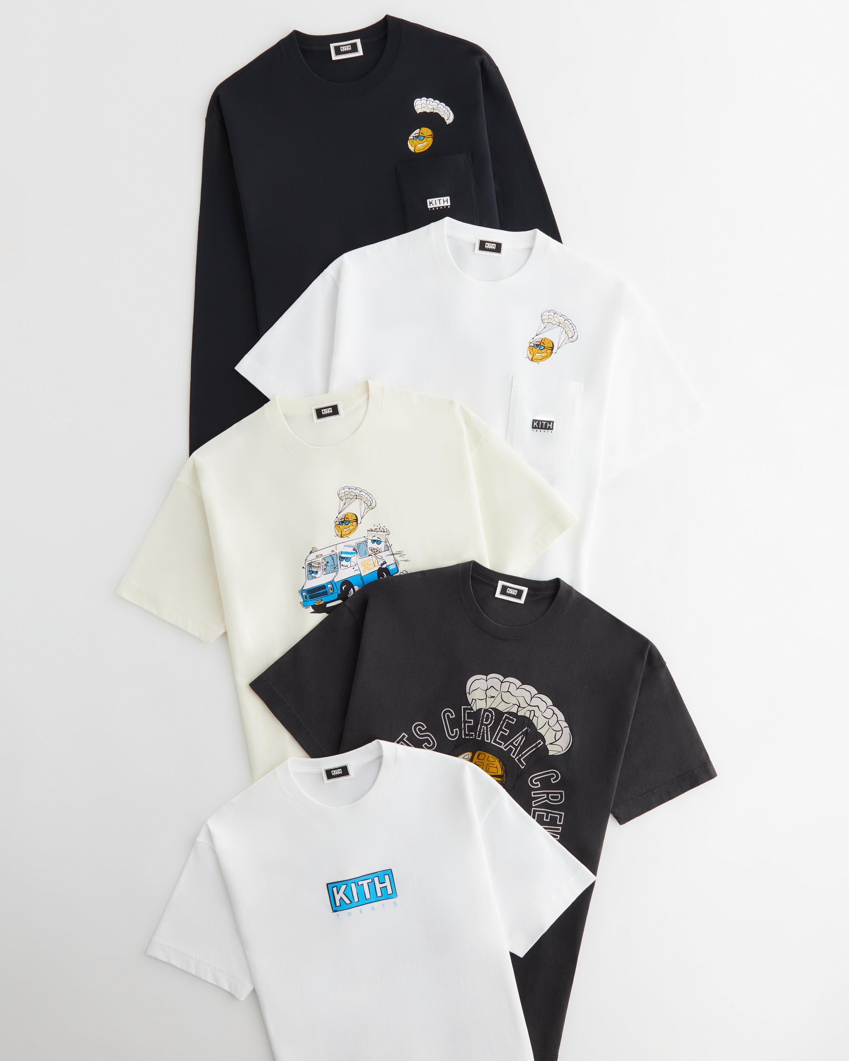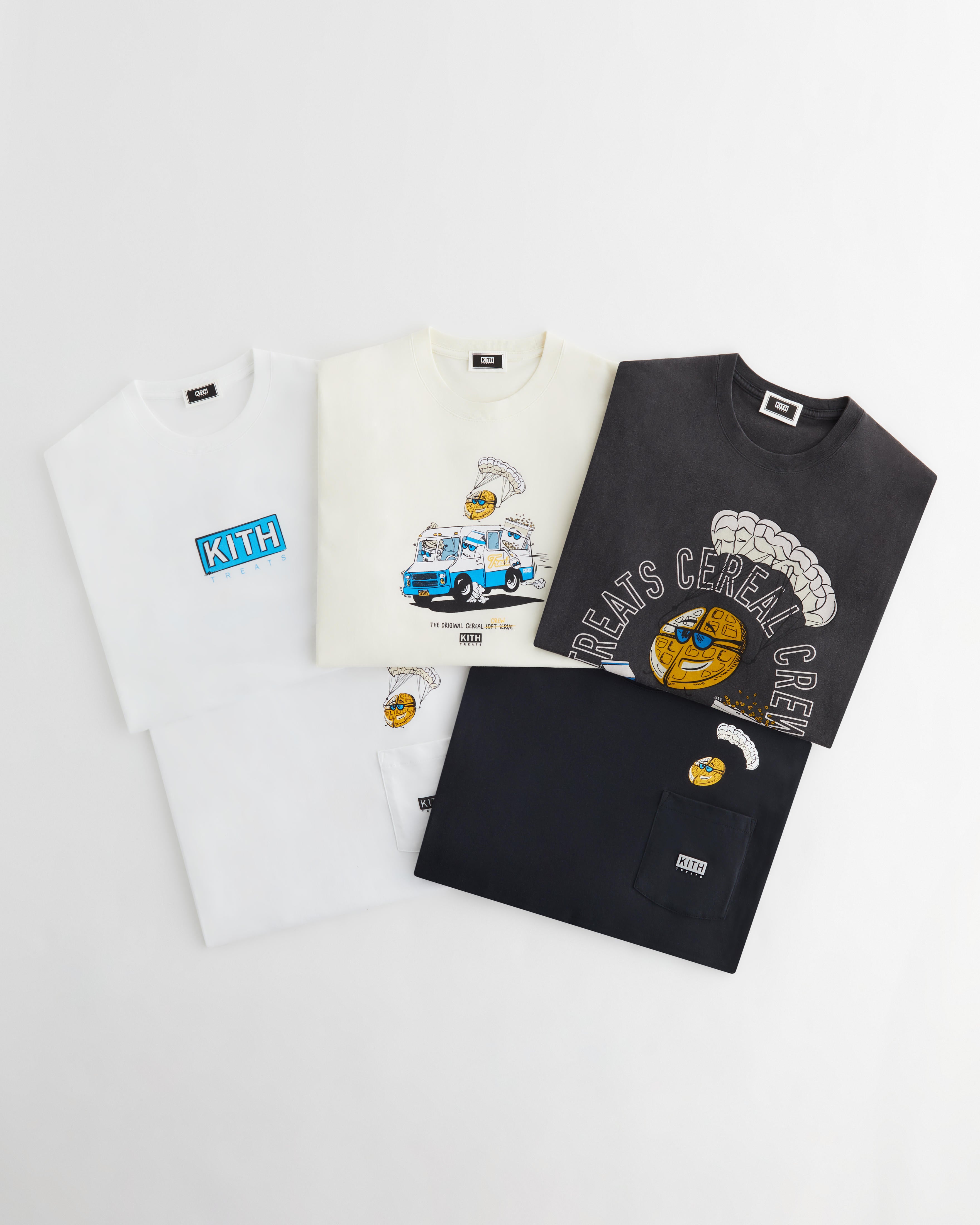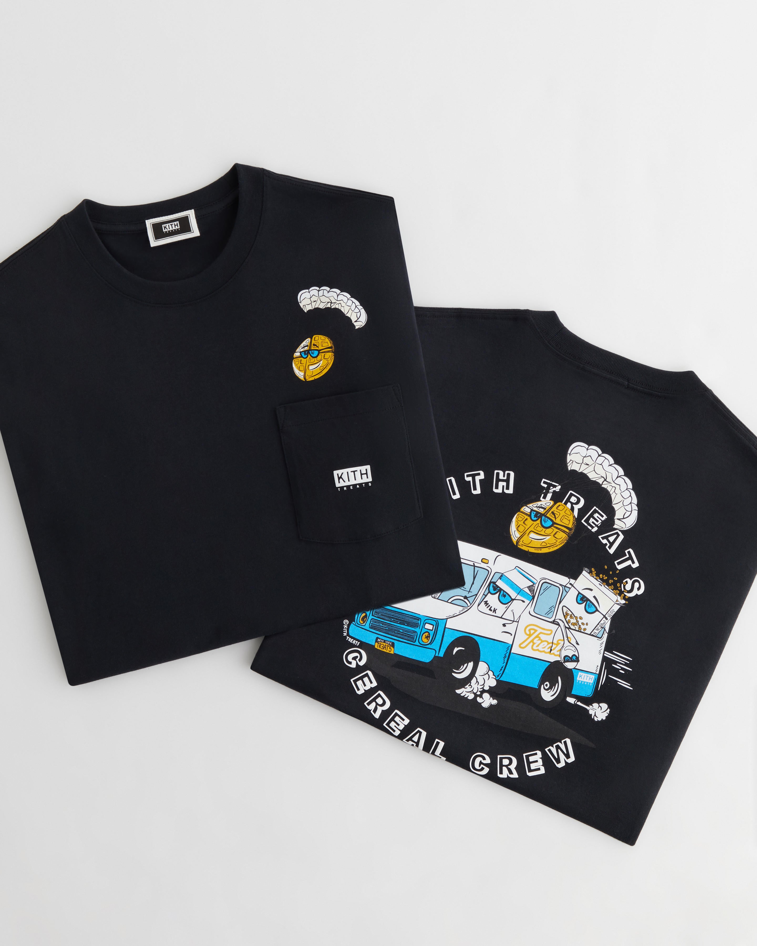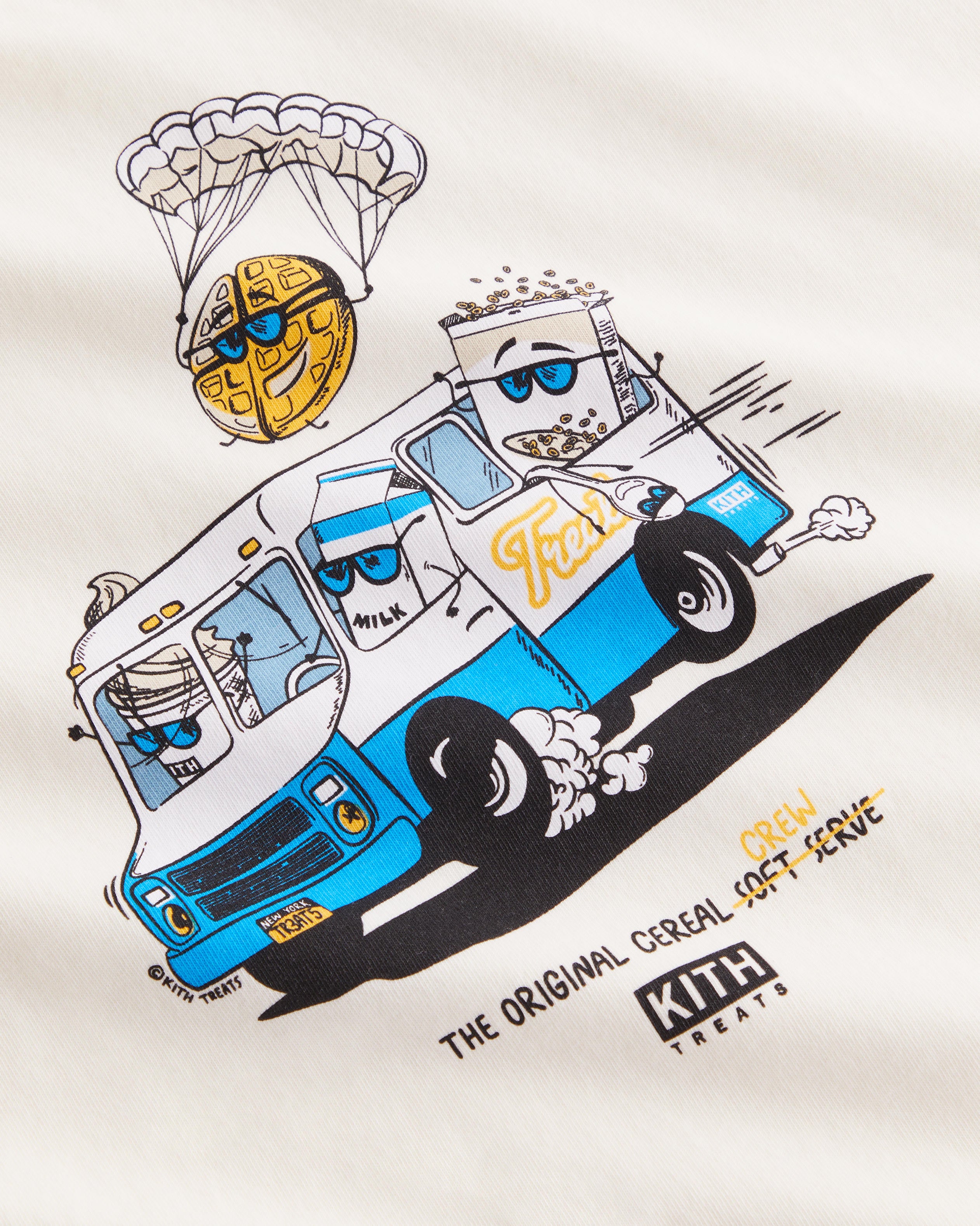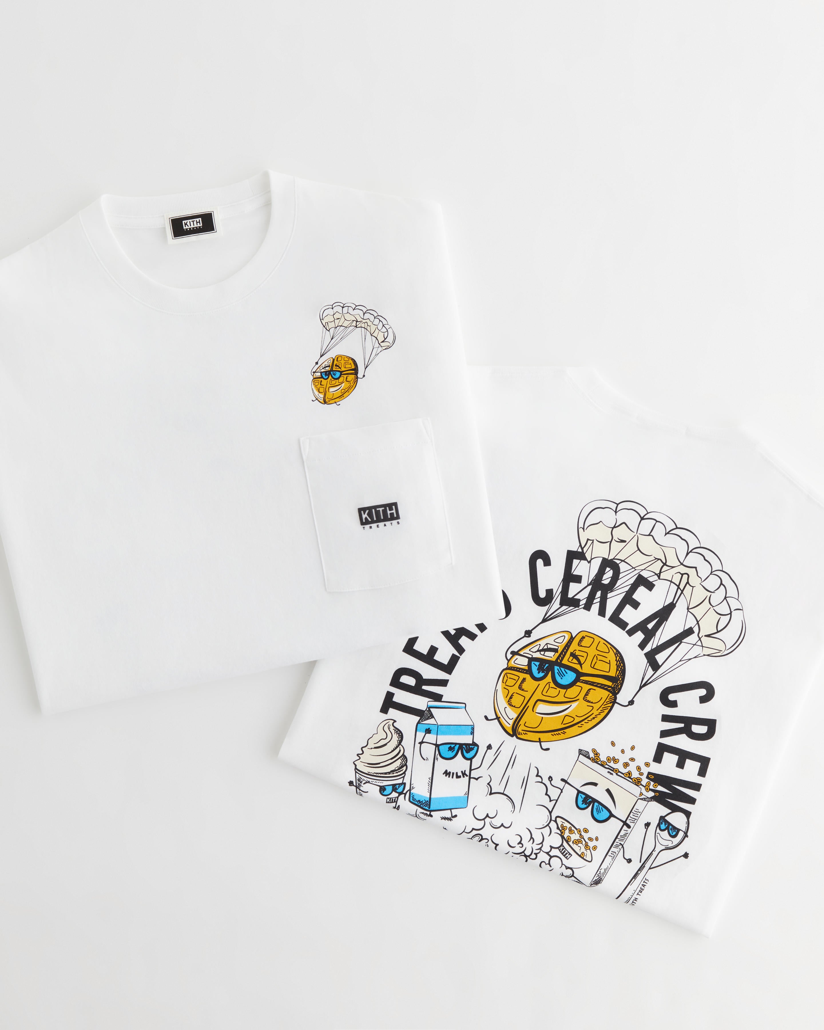 Kith Treats continues its celebration of National Cereal Day with their second installment of Treats Parade. The five-piece collection showcases Treats’ illustrative band of culinary characters, The Cereal Crew, and the introduction of their newest member, The Waffle; seen making a grand entrance via parachute. Each separate comes packaged in Kith Treats’ parade-themed cereal boxes that feature an original game on the back.