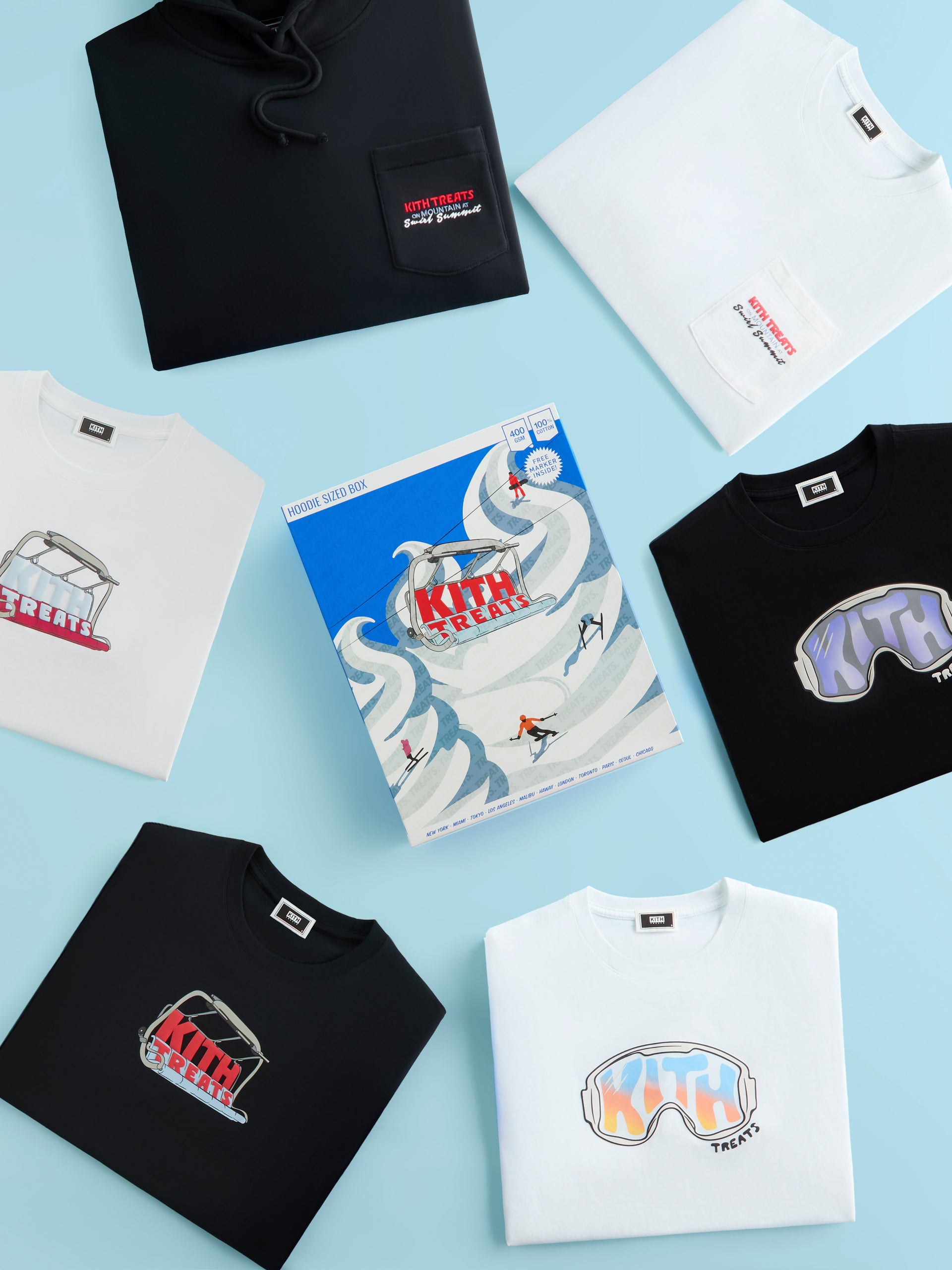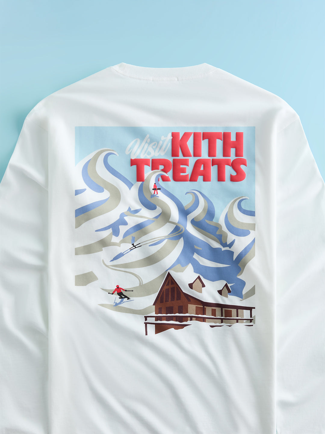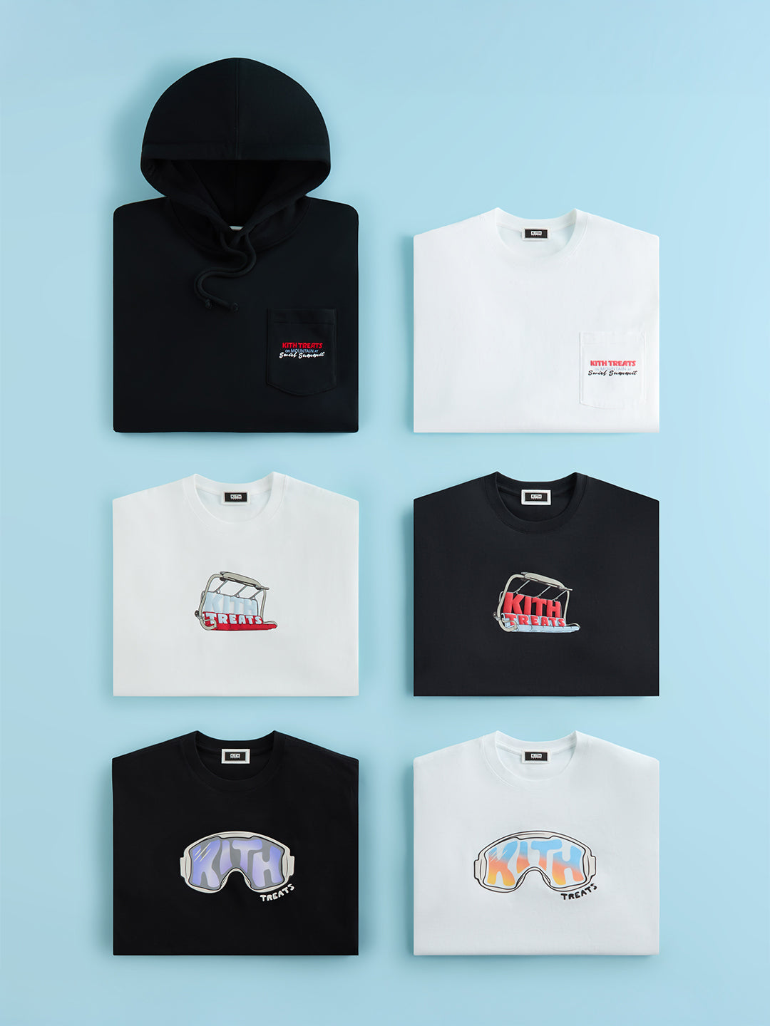Coming SoonKith Treats presents Treats Swirl Summit—a collection of seasonal graphics that celebrate the spirit of the slopes. This six-piece capsule evokes winter getaways and alpine adventures across a range of Kith’s signature tees & heavyweights adorned with retro, après-ski-inspired artwork.