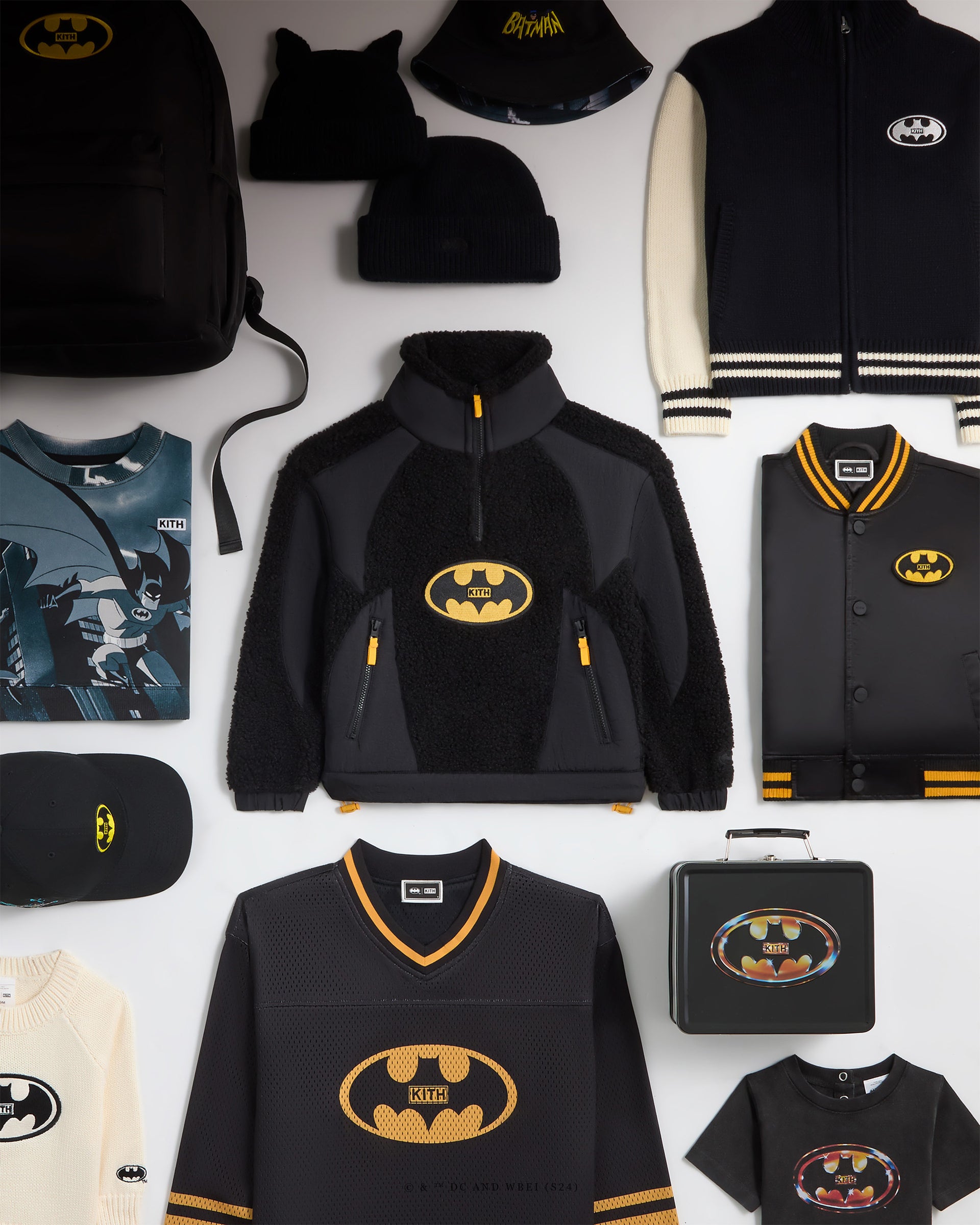 In celebration of 85 years of Batman, explore a special collaboration of apparel, accessories, headwear designed with New Era, and commemorative collectibles. Shop Kith staples like the Wyona Full Zip and the Coaches Jacket, alongside lifestyle items like Skate Decks, all-over printed chairs designed with Modernica, and a fully custom Batpod replica in collaboration with Noble Collection. With a special focus on the 1989 Batman motif, each piece highlights iconic films like The Dark Knight Rises and Batman Forever.