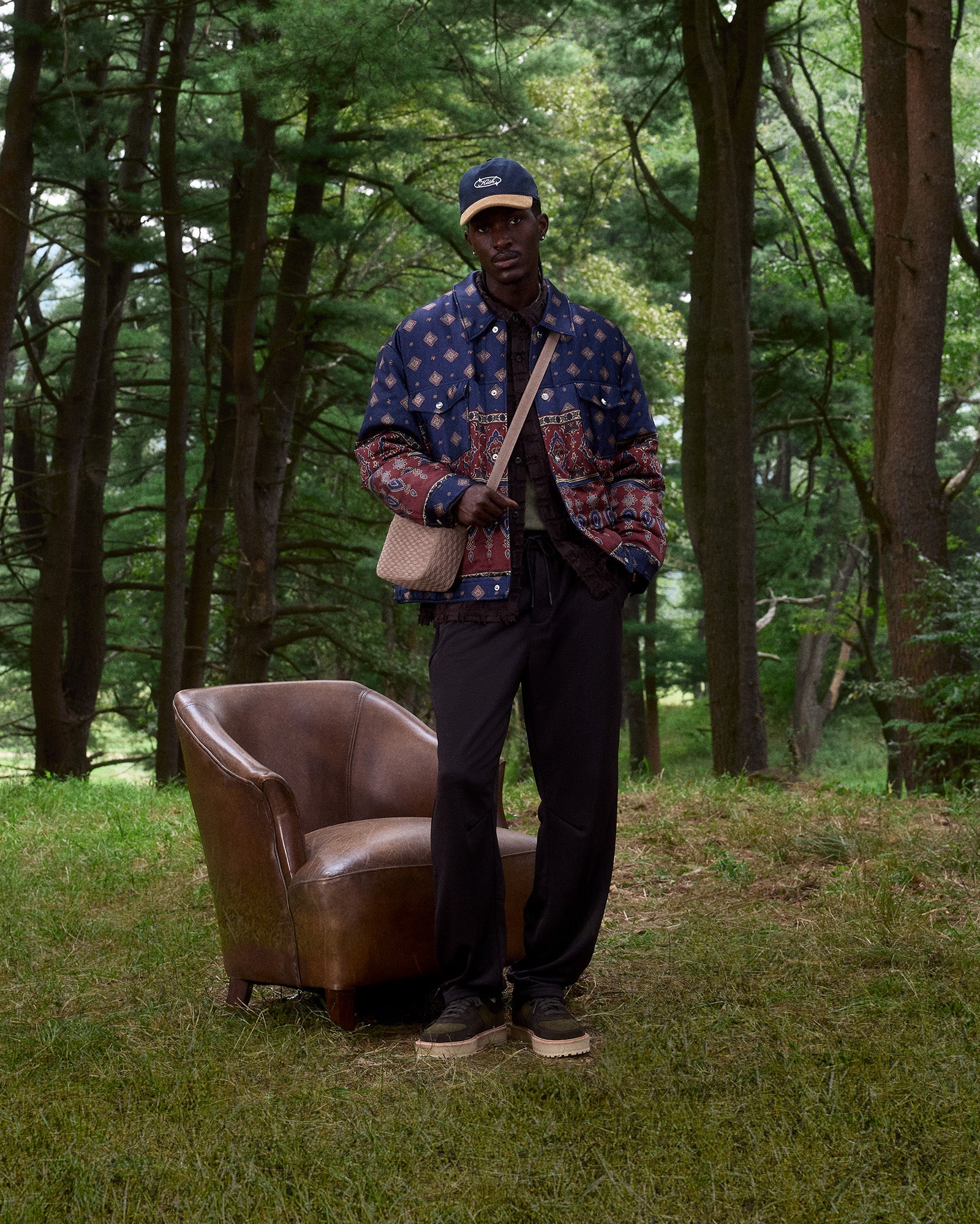 Explore the accessory assortment from Kith Fall 2024, including premium leather goods like the Monogram Suede Camera Crossbody the Round Buckle Belt, durable carryalls like the Flocked Nylon Tote, seasonal scarves and socks, and headwear designed in partnership with ‘47.