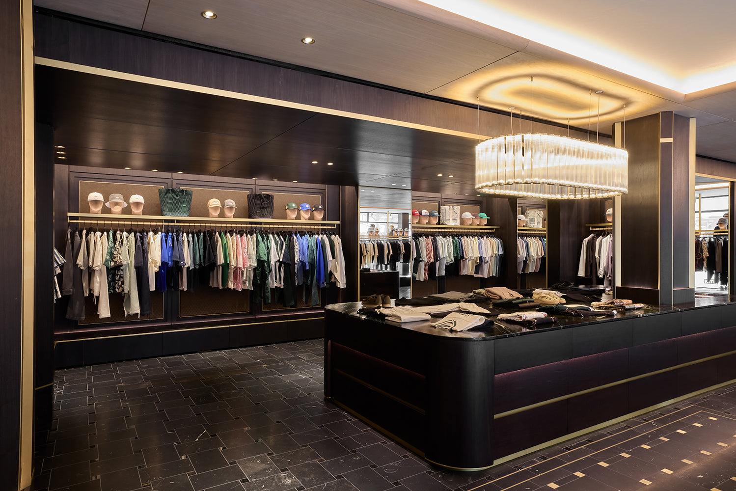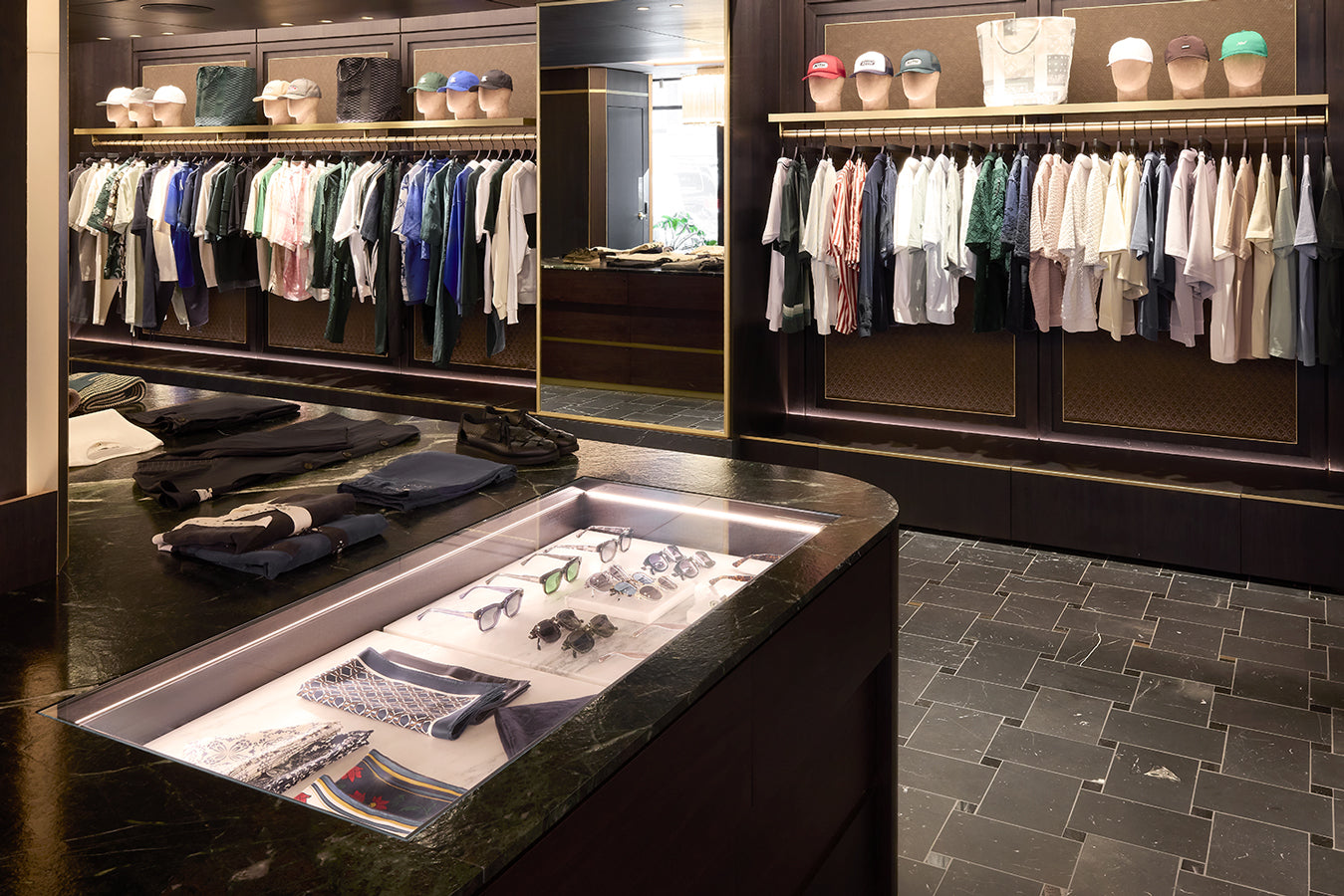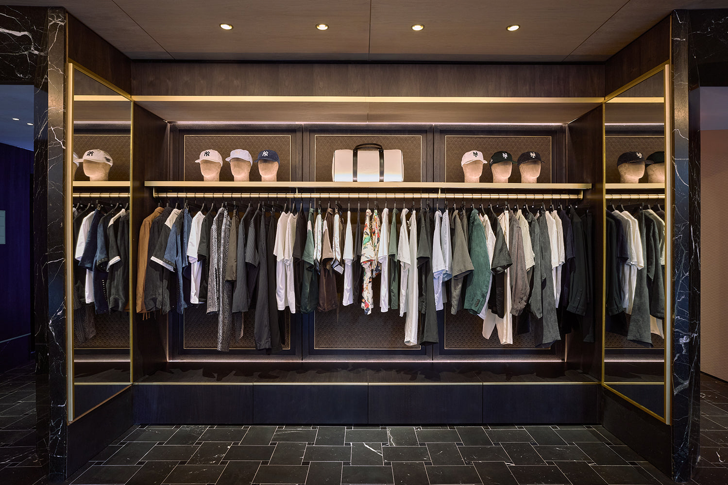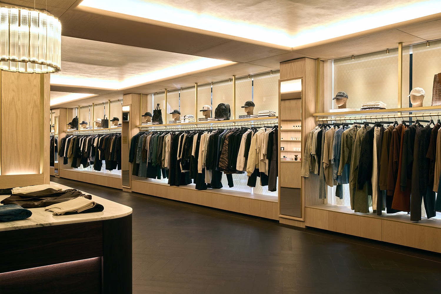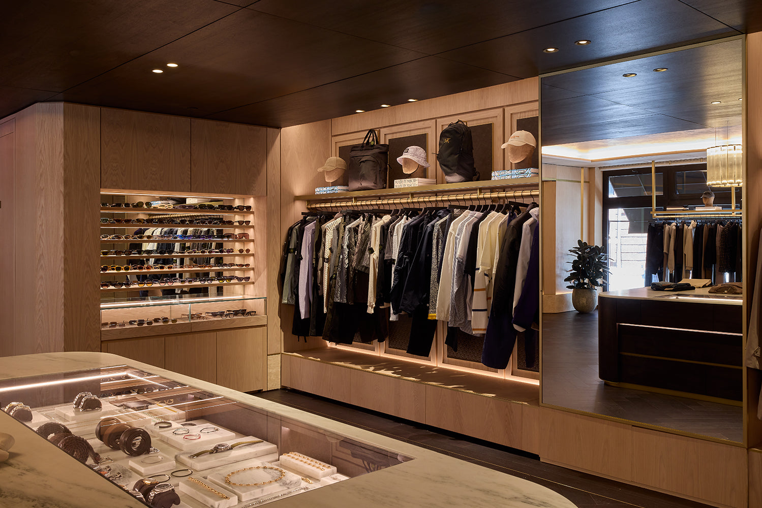 Located at 337 Lafayette Street in the heart of Manhattan, the Kith Manhattan flagship store first opened its doors in 2017. After nearly a decade, the three-story building, originally constructed in 1922, was renovated to reflect the current ethos of Kith, highlighted by the men’s line, vast assortment of additional designer apparel, accessories, and footwear, and a Kith Treats Window. The space utilizes a blend of dark walnut, white ash wood, luxurious marble, and herringbone wood floors.